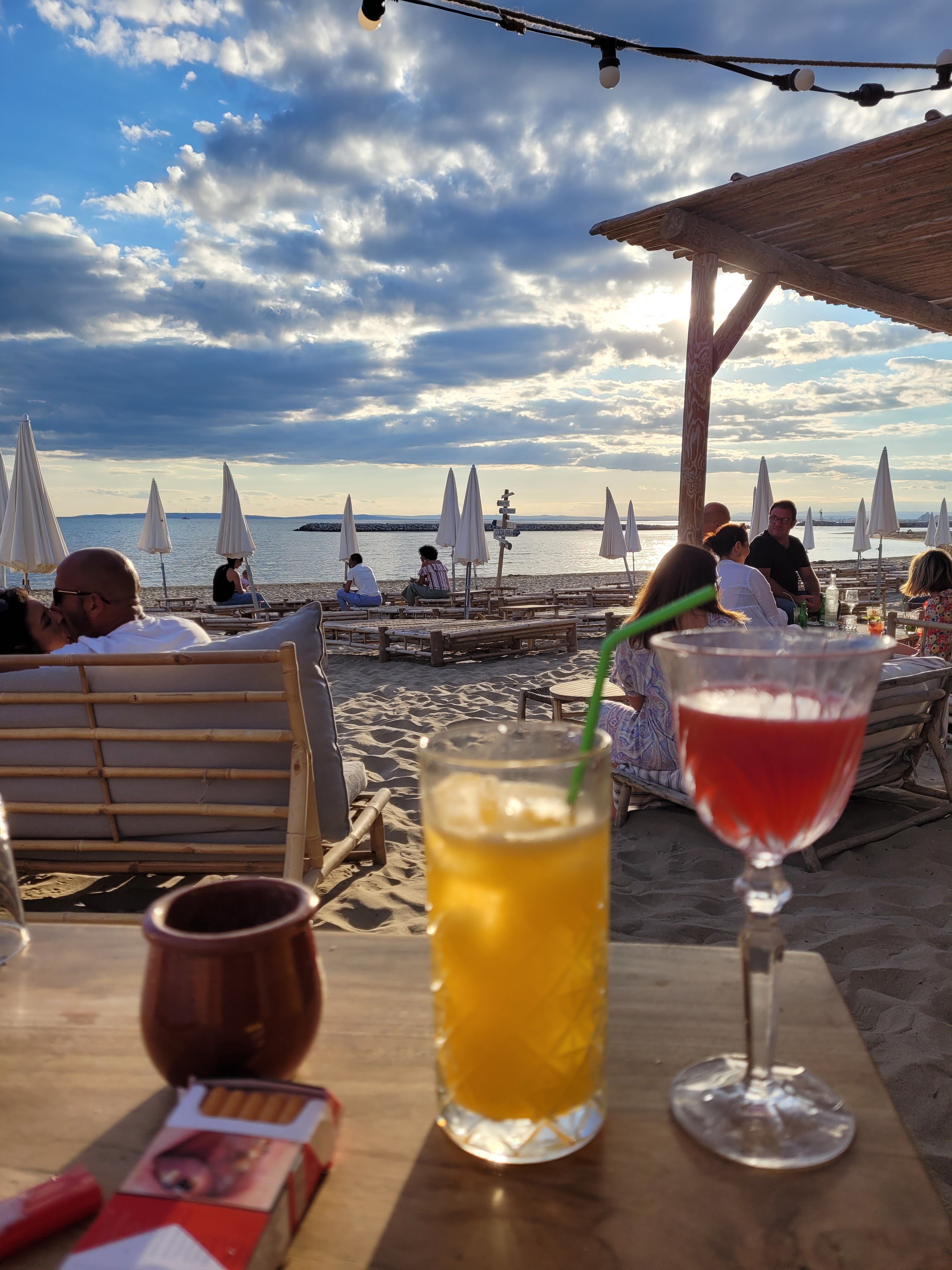 Cadre magnifique et ambiance lounge au rendez-vous pour prendre un verre, manger un bout et même farnienter sur les transats. Merci aux plagistes César et Noé pour leur accueil et service. Je reviendrais avec plaisir.