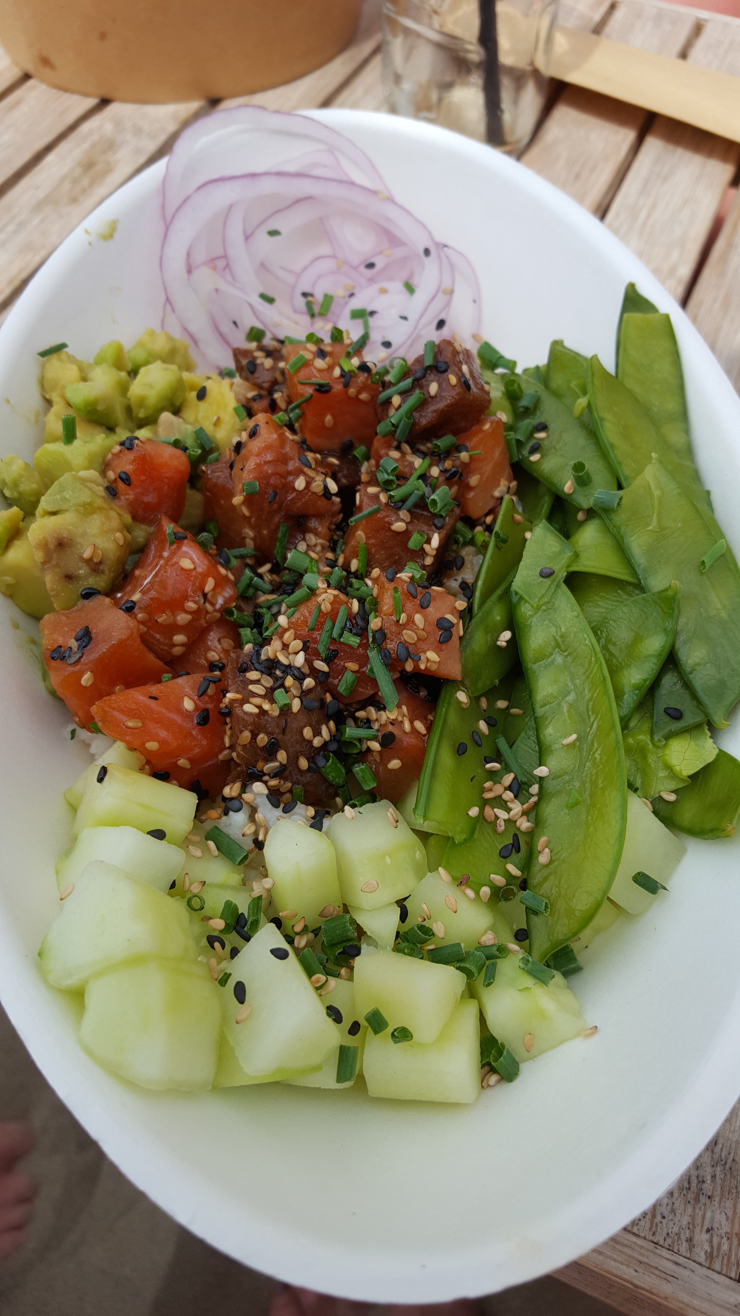 Ambiance chaleureuse, nous avons manger d’excellentes salades « poke bowl » Vue exceptionnelle !