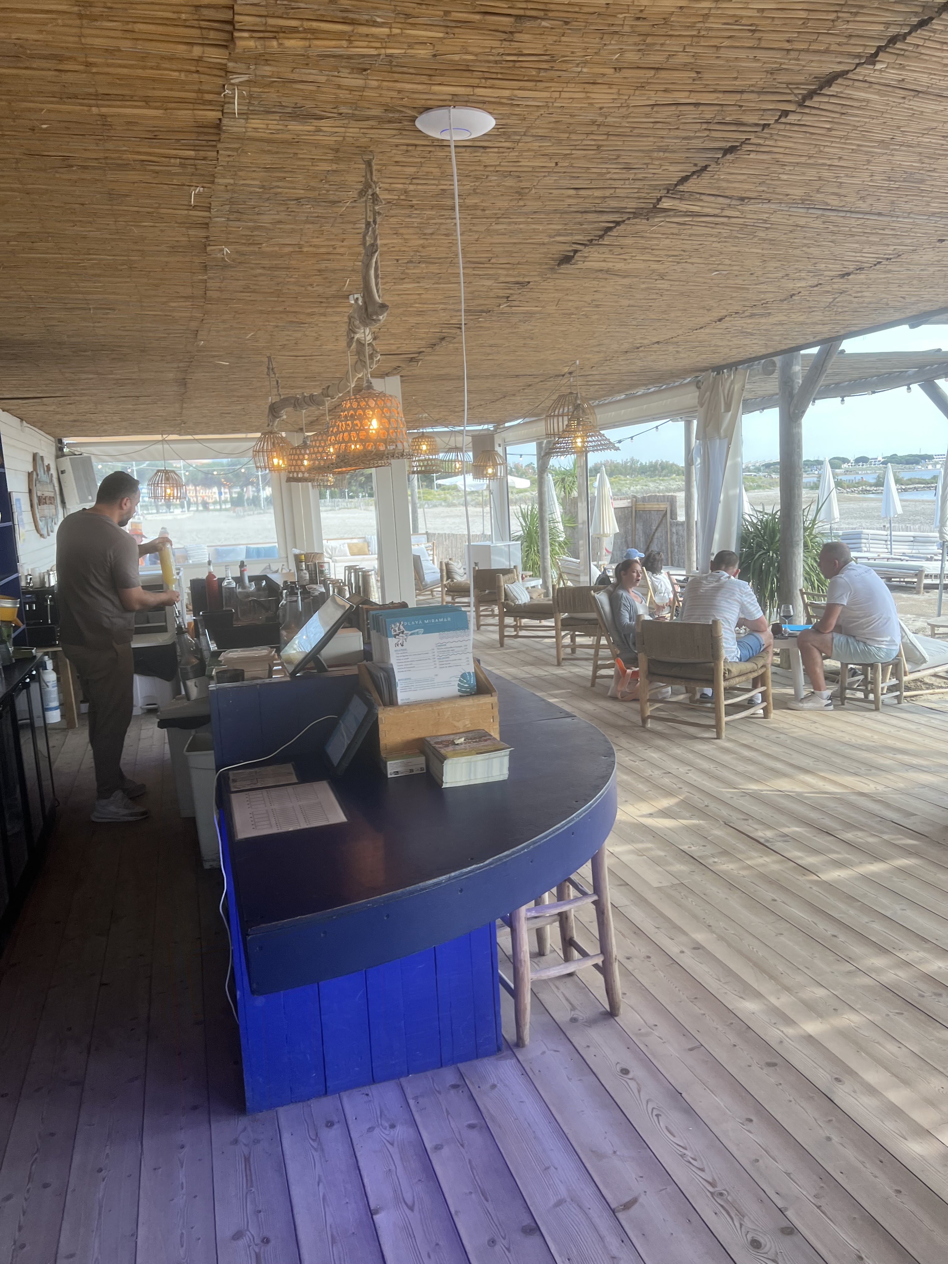 Personnel souriant et aux petits soins. Une ambiance cosy et décontractée. La plage n'est pas la plus jolie du Grau du Roi mais la qualité de l'accueil et du service font oublier ce détails. Je recommande les bowls proposés sur la carte.