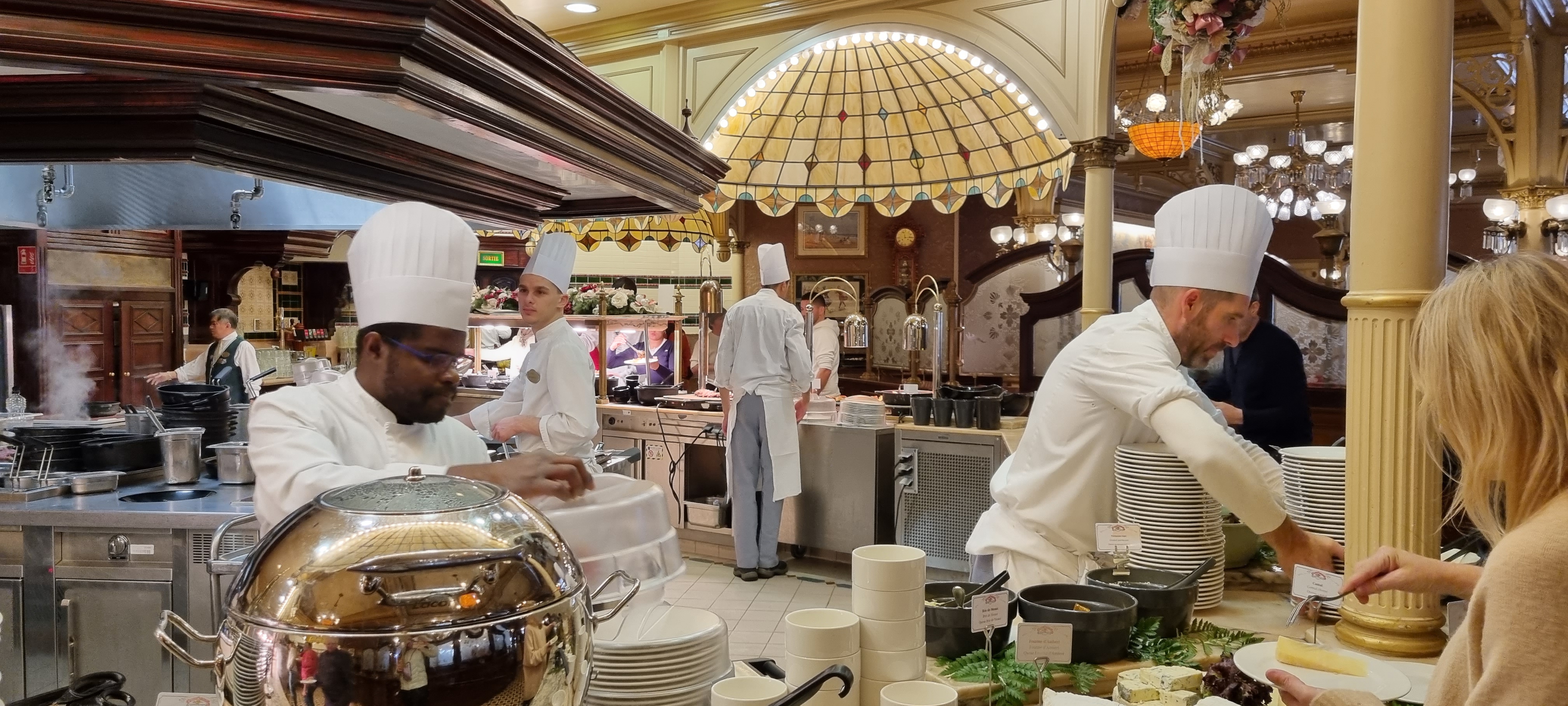 Ce lieu est incontournable au pays de Mickey, cet établissement est une usine à sortir des plats en abondances pour des visiteurs affamés et qui veulent passer un moment de partage autour d’un Buffet Les plats sont dans l’ensemble corrects et faits maison! Vous aurez un large choix de variétés d’entrées et de plats chauds Petit bémol sur les desserts…trop de pâtisserie, il manque un peu plus de fraîcheur Le service est comme dans les grandes brasseries, c’est du speed Faut penser à réserver avant et surtout venir avec le ventre vide car le café à 3.50€ je vous laisse découvrir le prix pour le reste Paroles d’un Chef