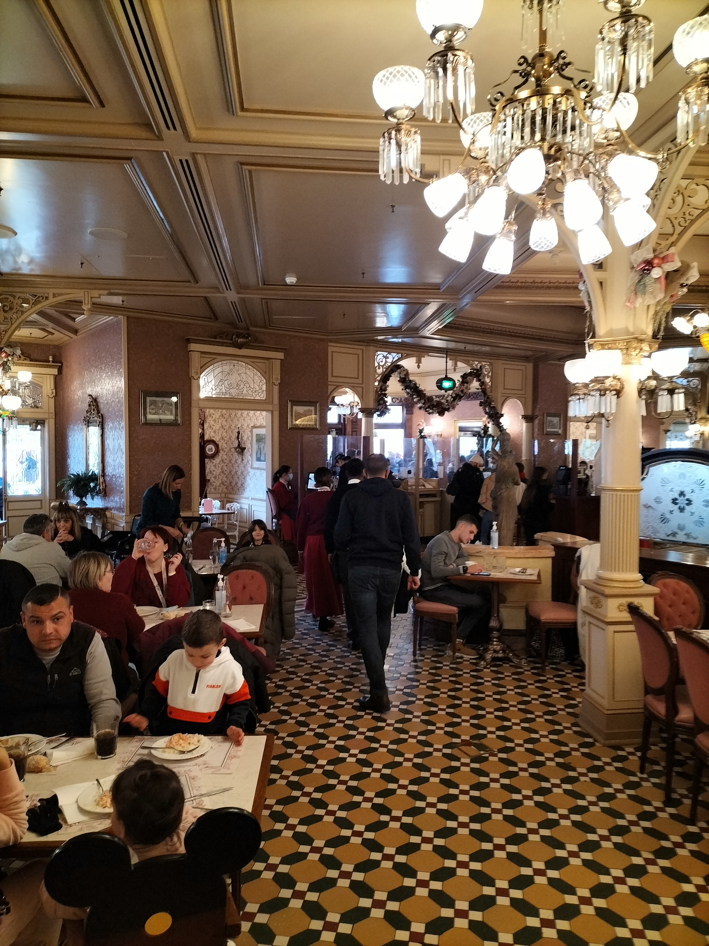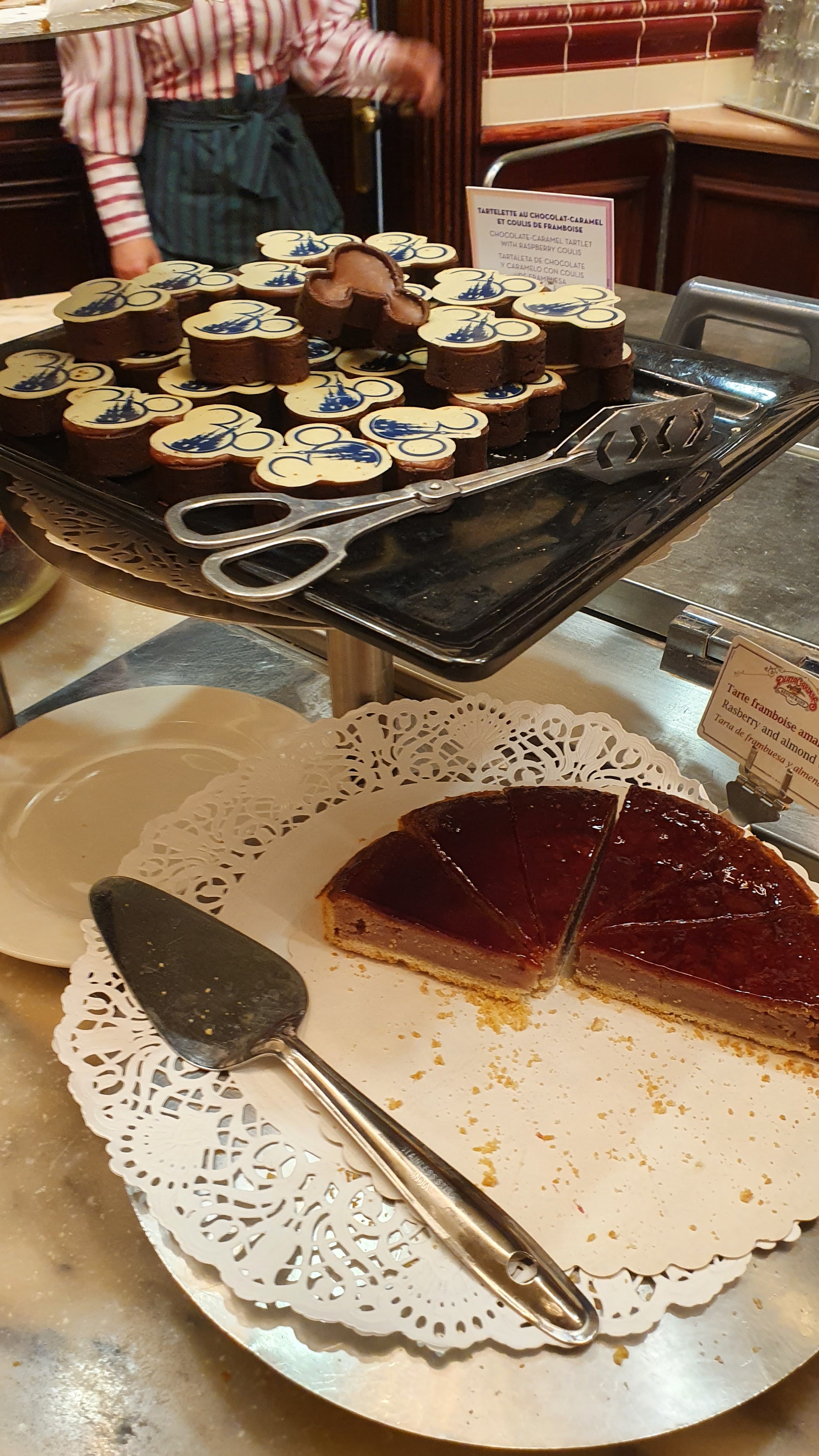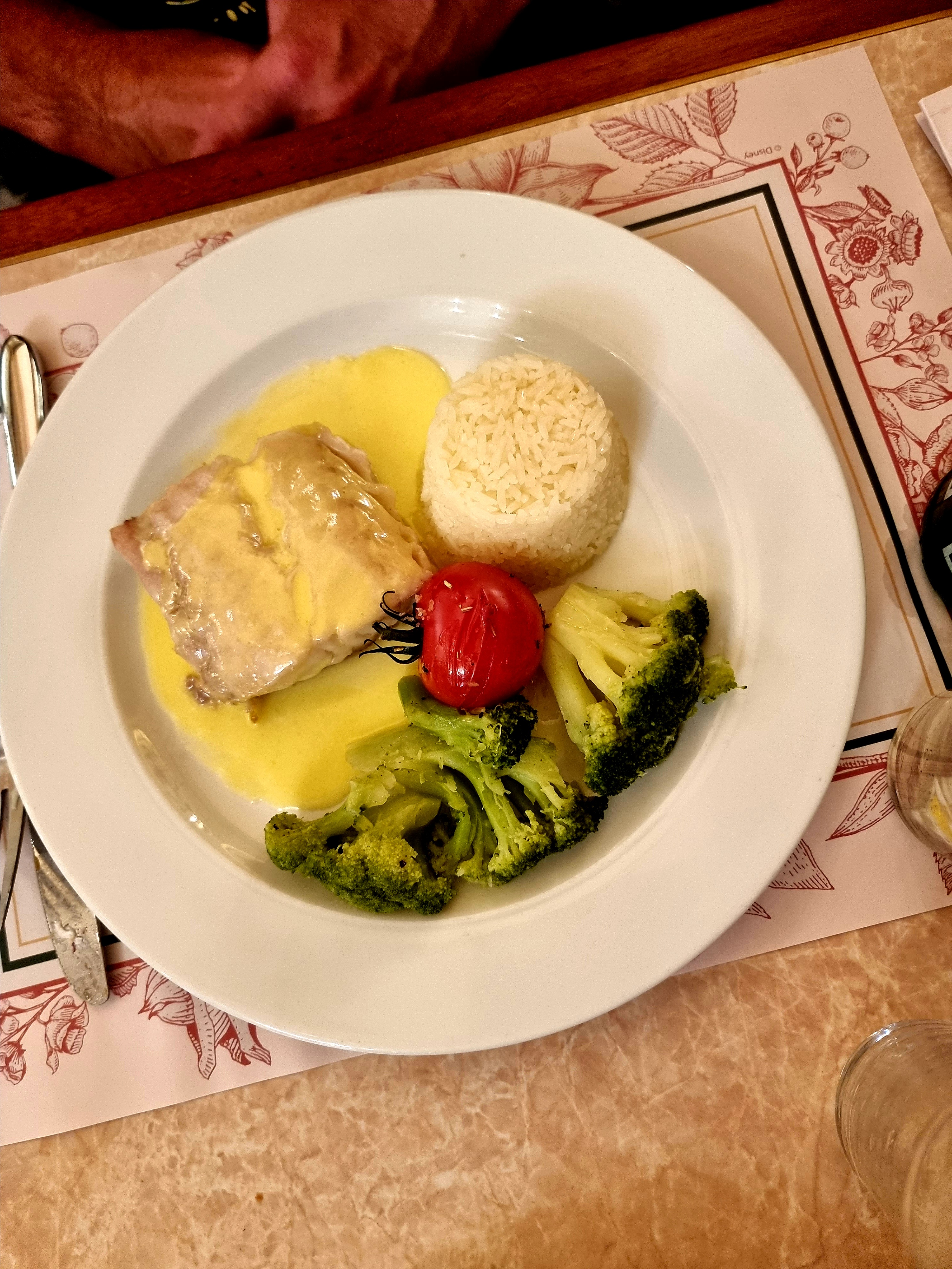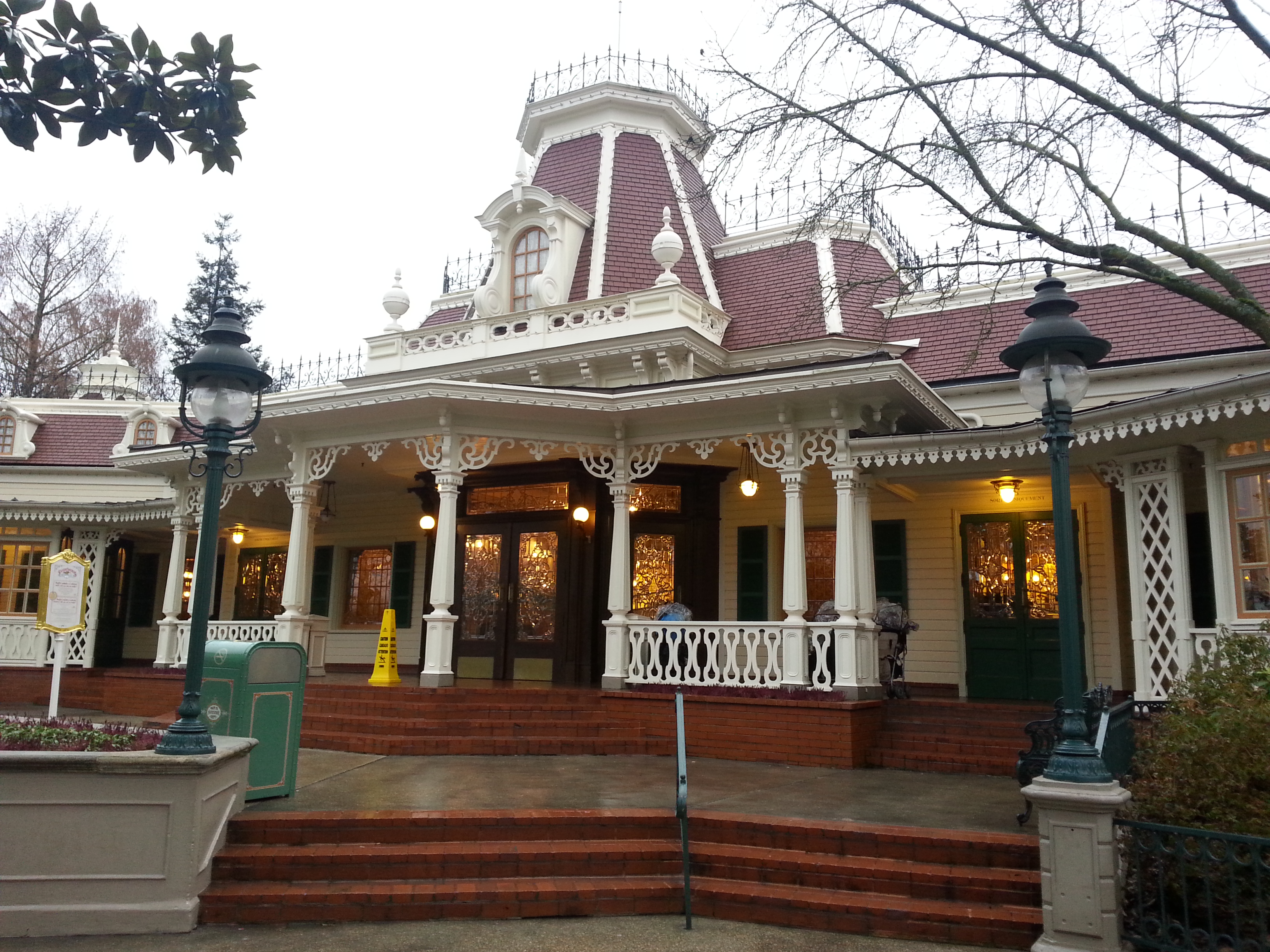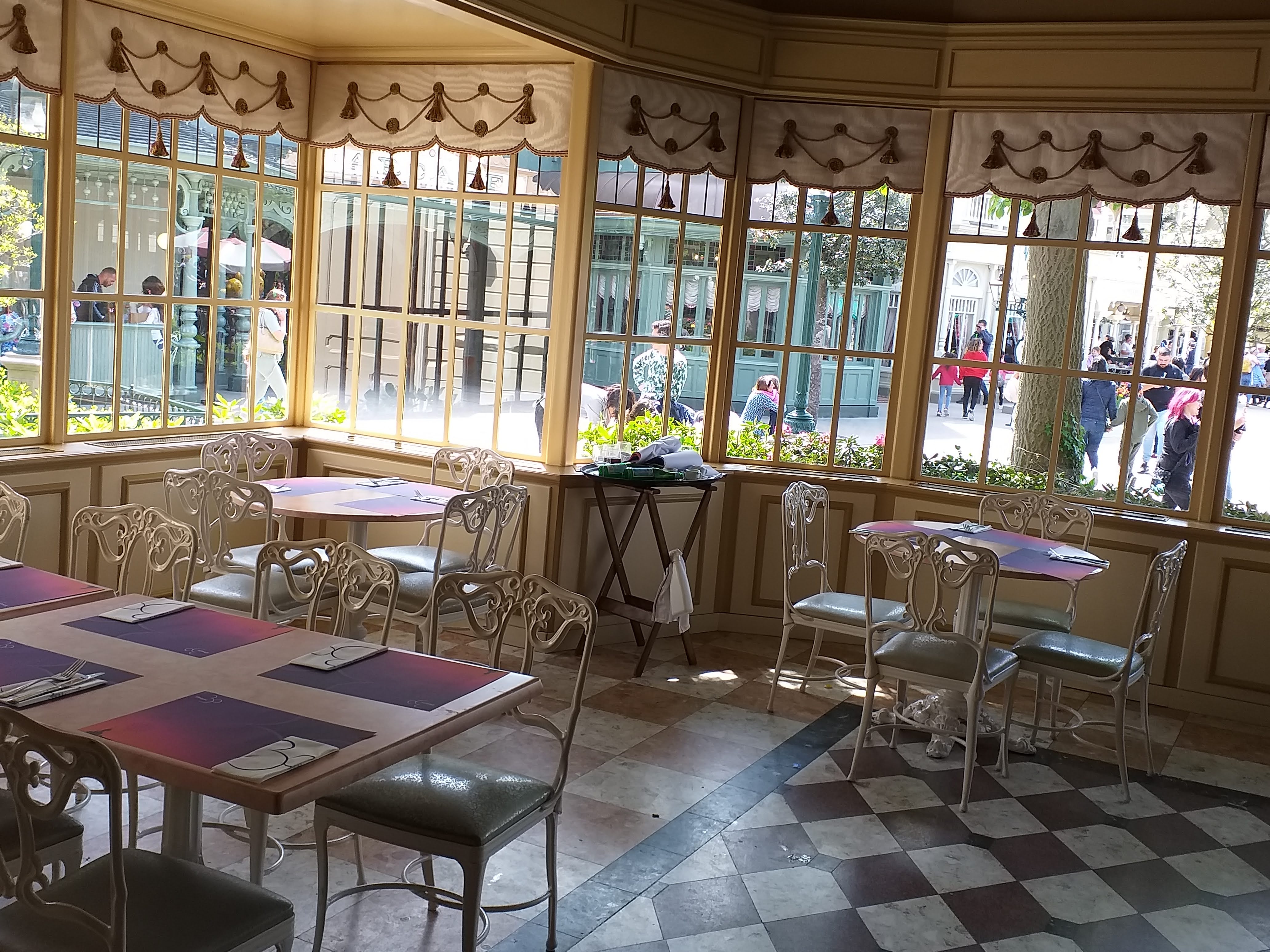 Buffet à volonté de plats français (entrées, plats principaux, desserts) dans un cadre magnifique, où l'on est accueilli et servi par un personnel multilingue en uniforme Le restaurant est situé à l'extrémité de Main Street USA, sur la place qui fait face au château de la Belle au Bois Dormant, et il y a souvent de la queue pour y déjeuner ou dîner (lors de certains jours spéciaux). Penser donc à réserver sa place en ligne, même si le paiement se fait sur place : 44 € / personne, en décembre 2021 😮 Le restaurant étant un peu surélevé, il faut gravir quelques marches pour y accéder. Penser donc à laisser sa poussette à l'entrée, et accompagner les personnes en fauteuil roulant 🤔