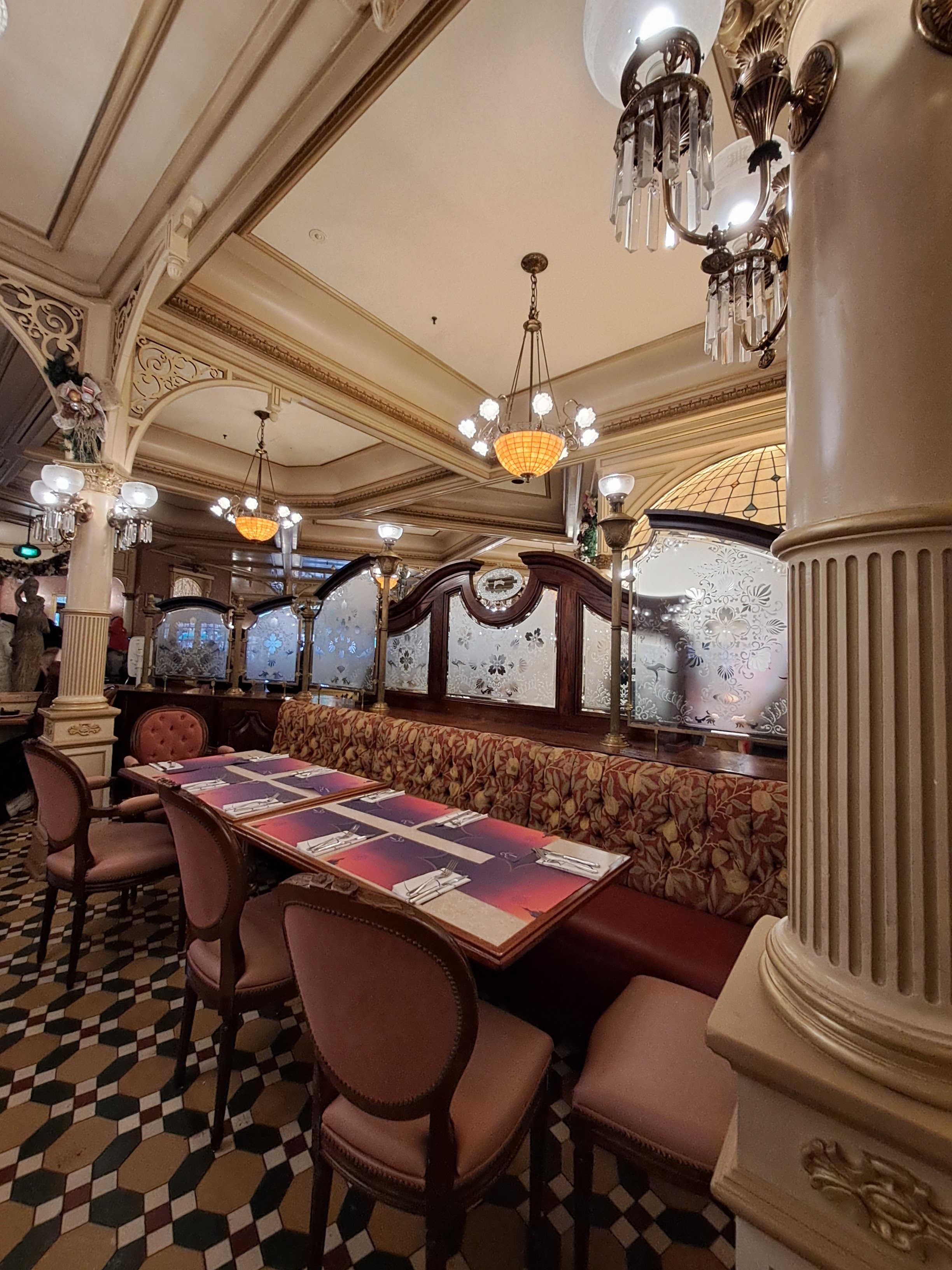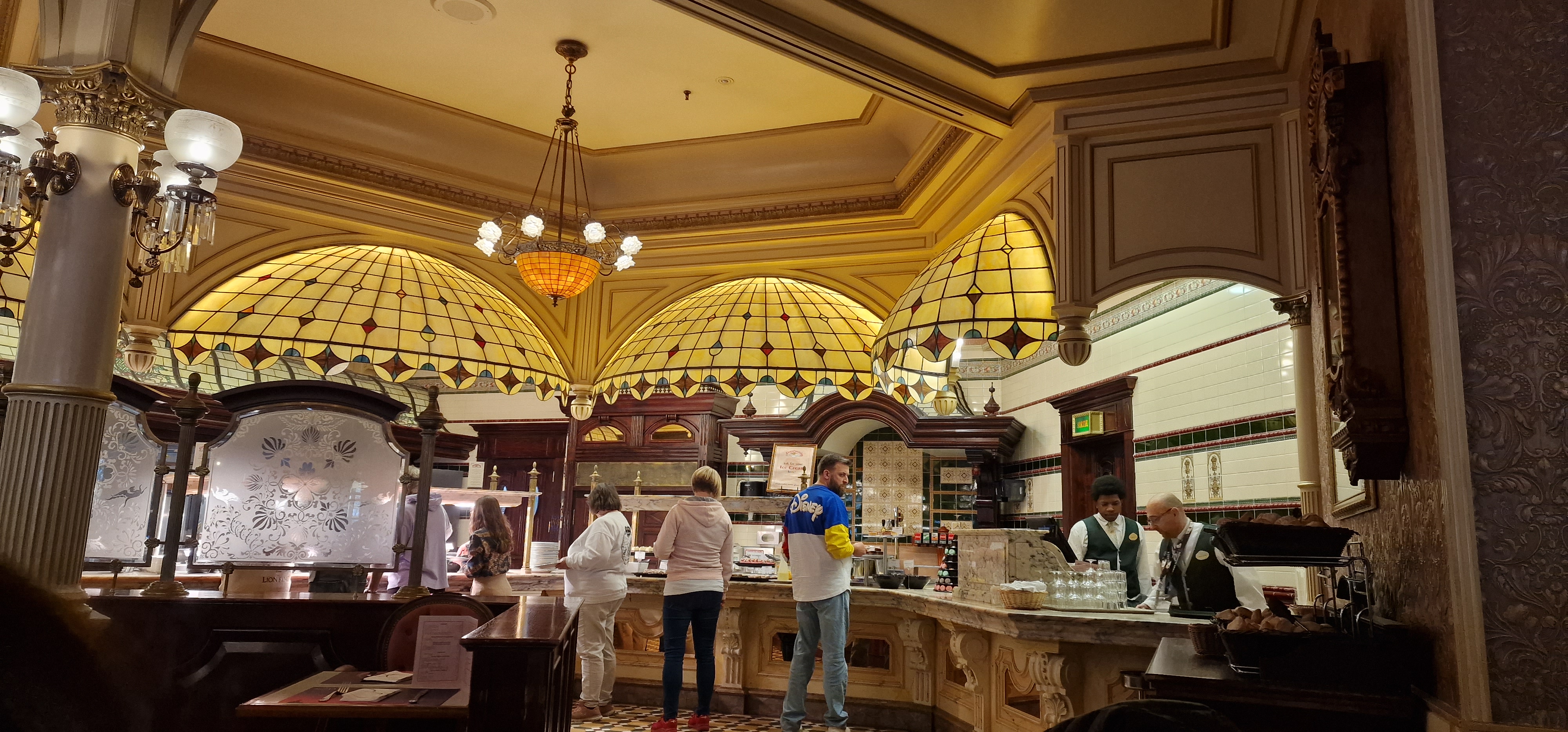 Joli décor, une belle thématisation immersive, inspiré début 19ème, le tout bien intégré dans main street. Buffet à volonté de qualité correcte mais attention il peut y avoir de l'attente pour y accéder surtout lors des jours de forte affluence. Visites régulières depuis l'ouverture en 1992 (pass annuel) donc je mets une note sur la globalité des expériences, en toute objectivité car il y a parfois des imprévus, de fortes affluences et des déceptions mais de manière générale il faut reconnaitre que le service est toujours assuré et qu'ils savent faire face à tellement de circonstances avec professionnalisme.