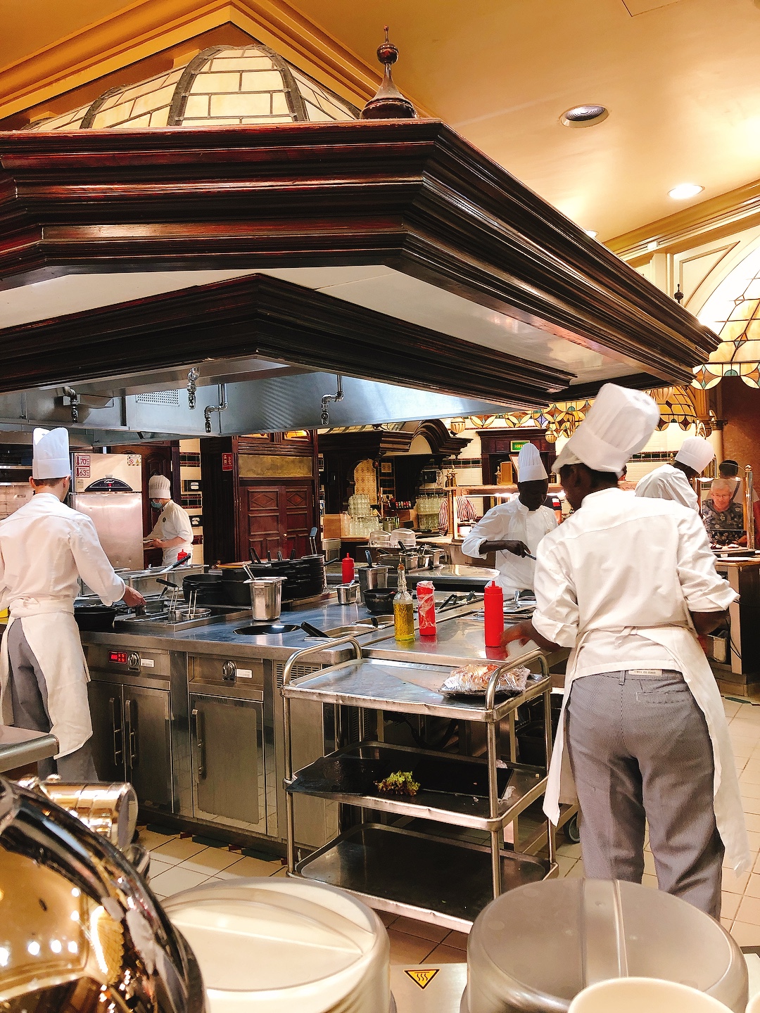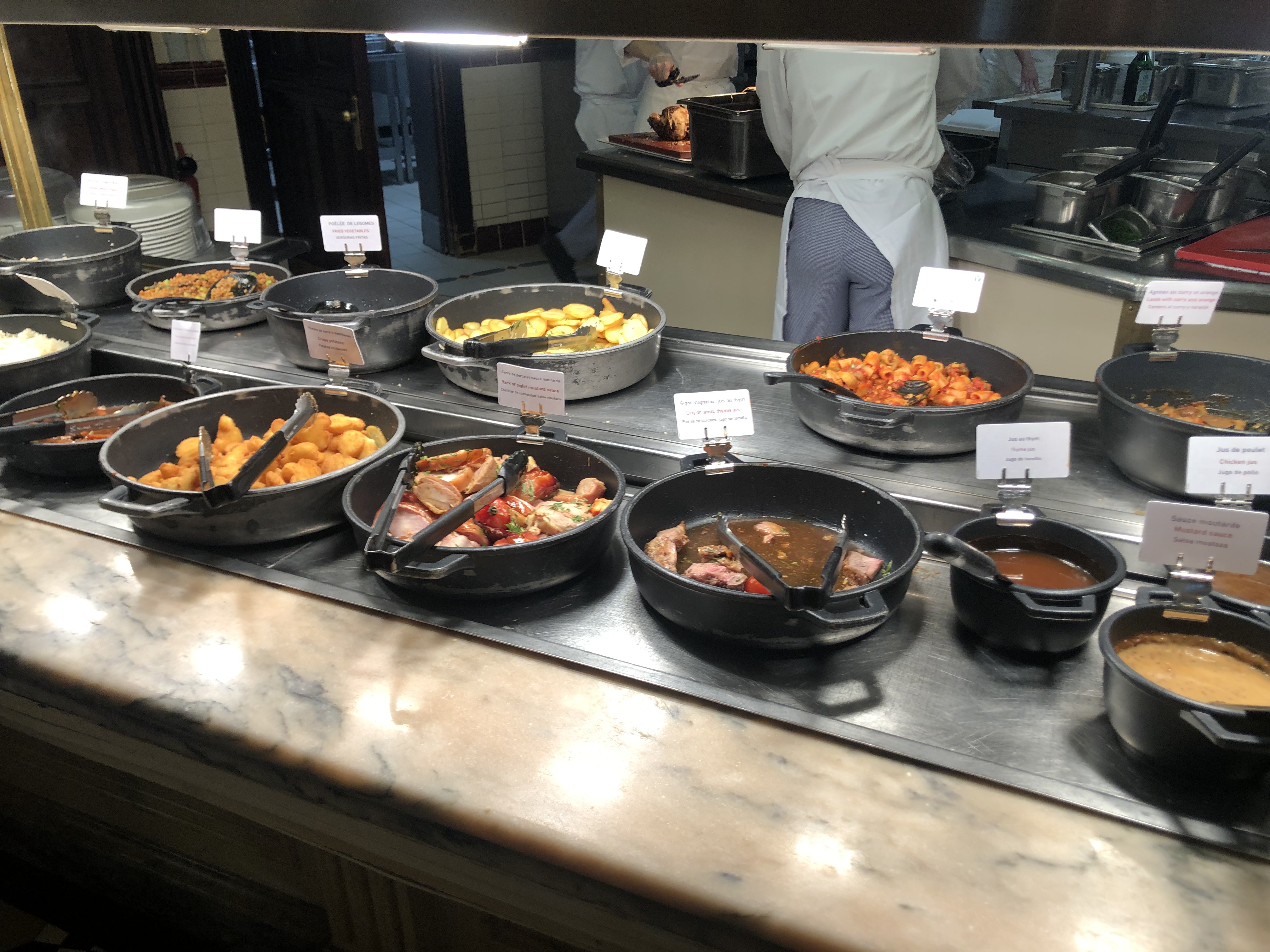 Restaurant de style victorienne. Le personnel est à l'écoute, j'y ai fêté mon anniversaire, on a eu droit à une chanson de la part de l'équipe. Niveau nourriture, bonne qualité. Nombreux choix d'entrée notamment plusieurs fromages (Fin du gouda, dommage), oeufs, tomates, rillettes de saumon...(modification du 09/13/2017 : plus de rillettes de saumon qui étaient à mon sens la meilleure entrée. Actuellement, c'est énormément de charcuterie, il faut aimer ça! ), salade césar. En plat principal, il y avait du boeuf, du sauté de veau, du saumon, des cuisses et ailes de poulet, du porc, des moules, des pennes, pommes de terre, riz, poêlé de légumes. En revanche, malgré un grand nombre de choix, les desserts n'étaient pas terribles, trop industriels. Il y a des mini éclairs au chocolat ou café, des verrines, des petits gâteaux aux chocolat, des bonbons... Le buffet est à volonté avec boissons rafraîchissantes illimitées comprises dans le prix.