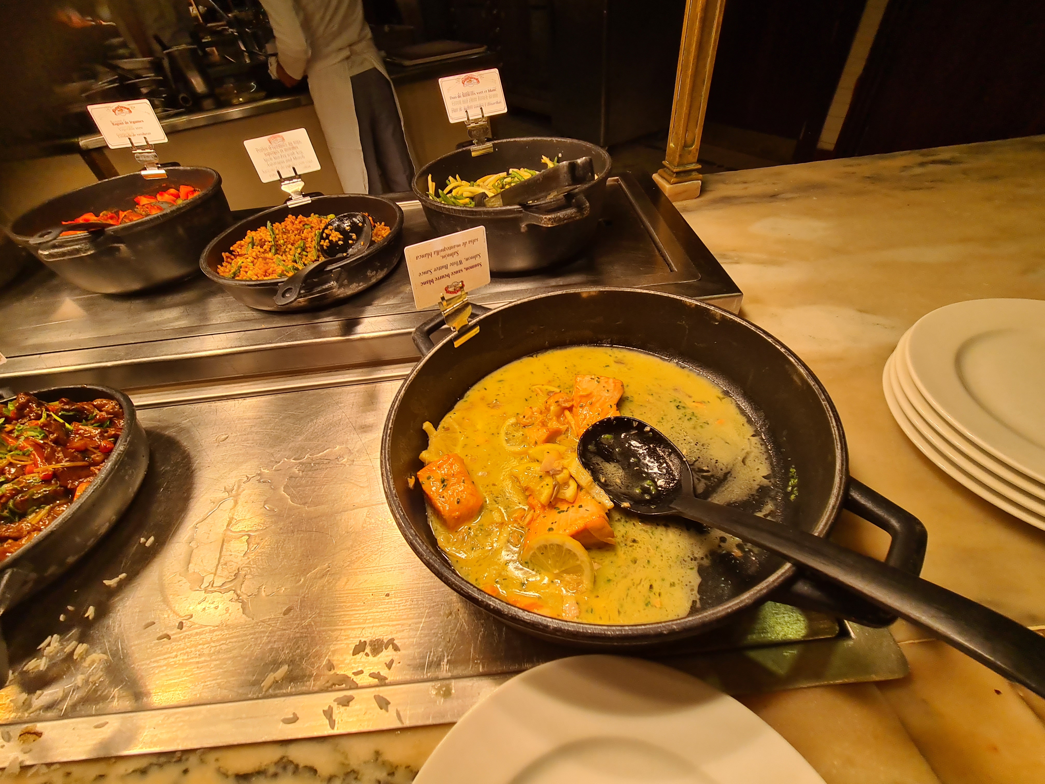 Du fait du covid pas de buffet mais des pkabche d entree et de dessert hyper bien servie et délicieuse.