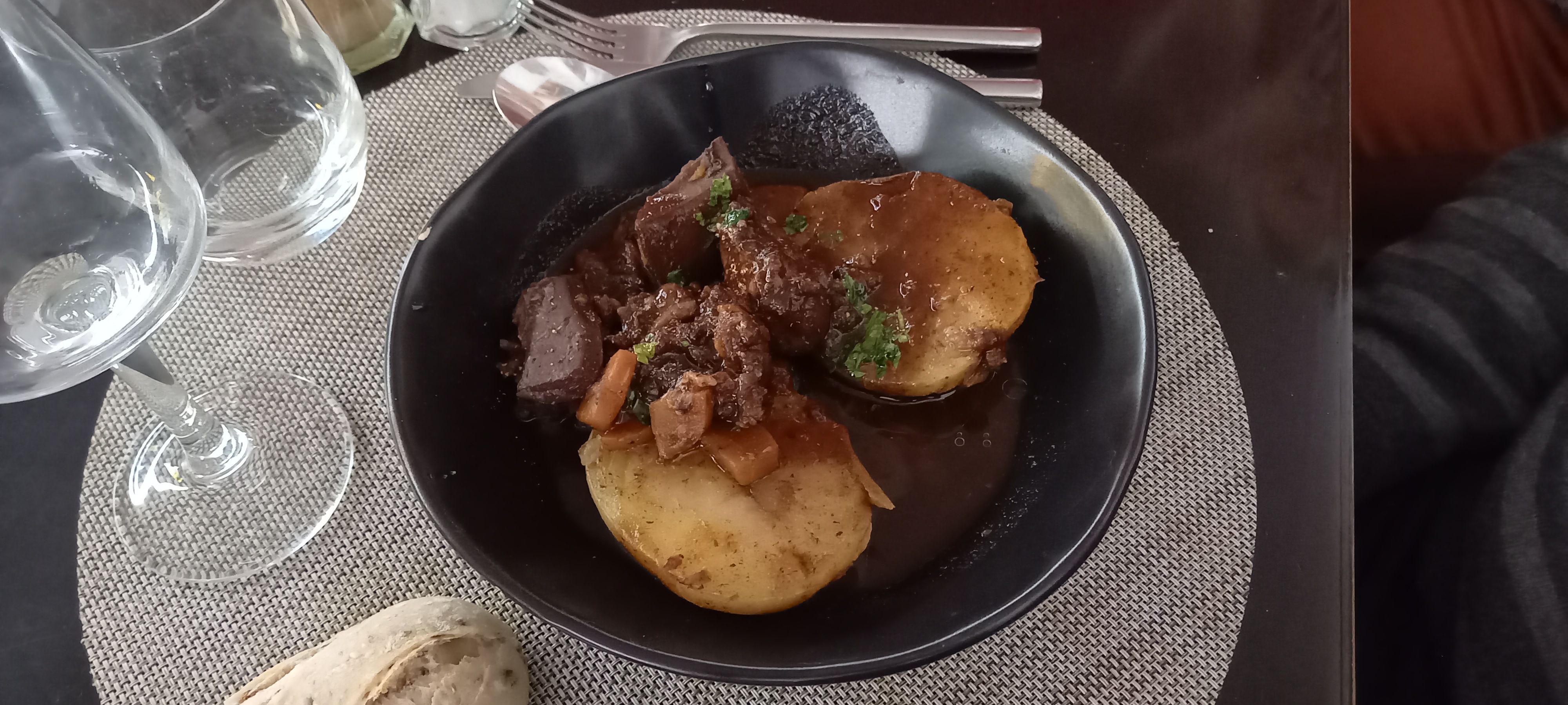 Bon accueil. Pour se garer il y a la petite zone commercial en face. bonne cuisine et très bon vin. Peu de choix de bière😕, la viande serait plus tendre elle serait meilleur. Escargot en entrée léger. Personnel agréable. On vous propose plus la carte que le menu, alors que le menu plein sud est sympathique. Tarif très correct pour la saison.