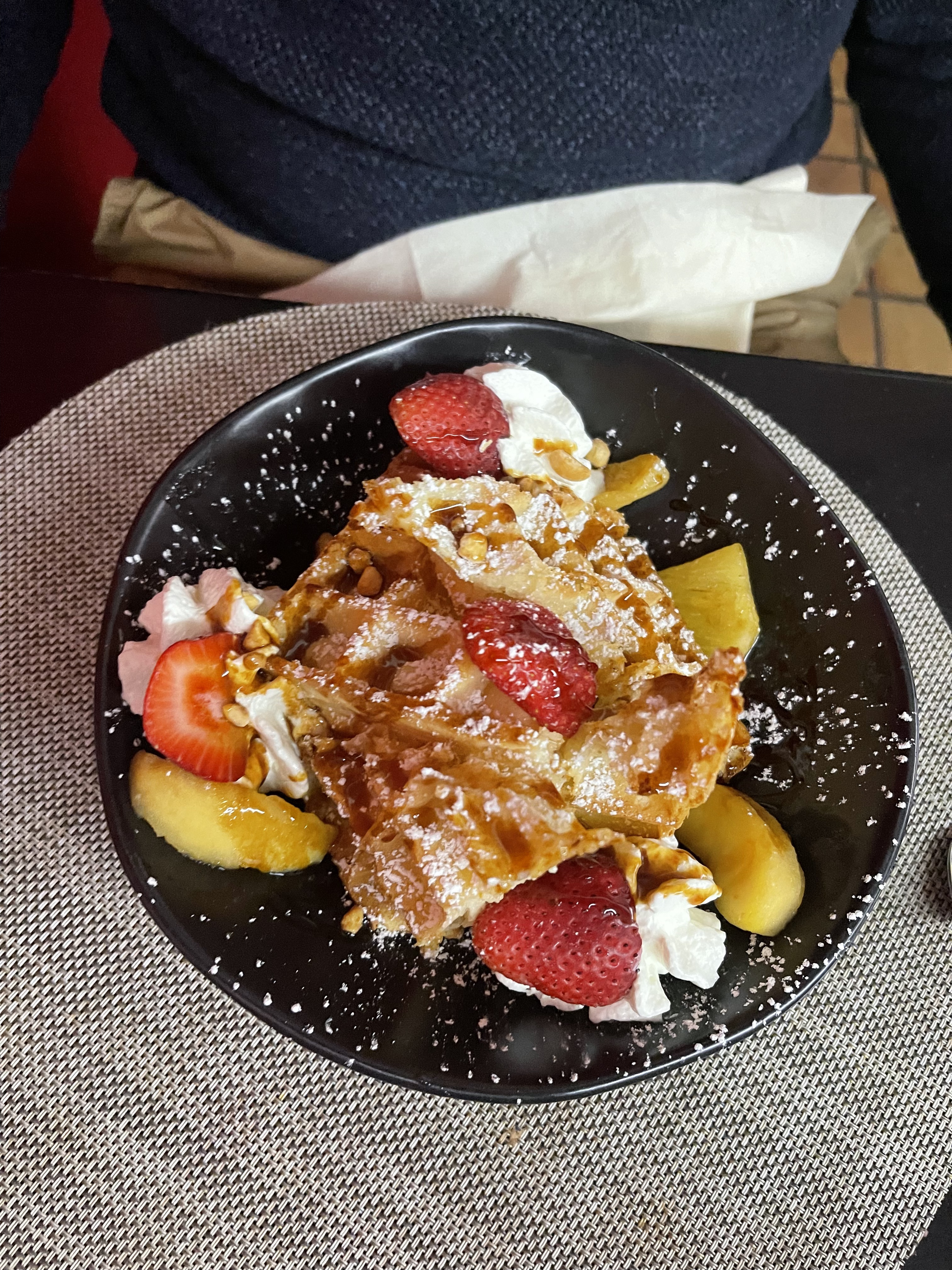 La serveuse était exceptionnelle au top souriante et le plat et dessert un délice je reviendrais avec plaisir