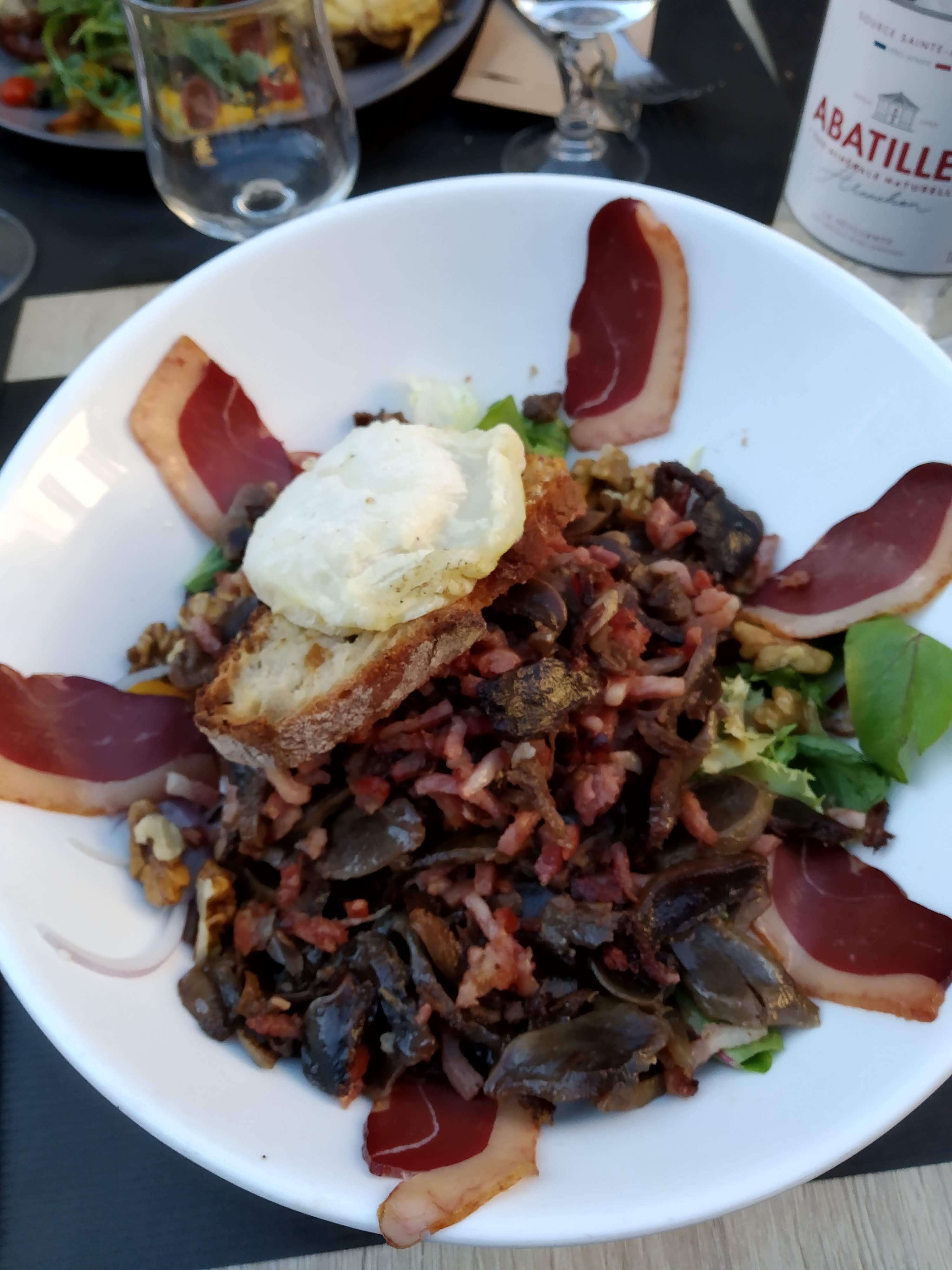 Bon produits locaux pour la plupart. Belle présentation et un peu d’originalité. Service un peu long mais souriant et sympathique. Terrasse ombragée. Je recommande !