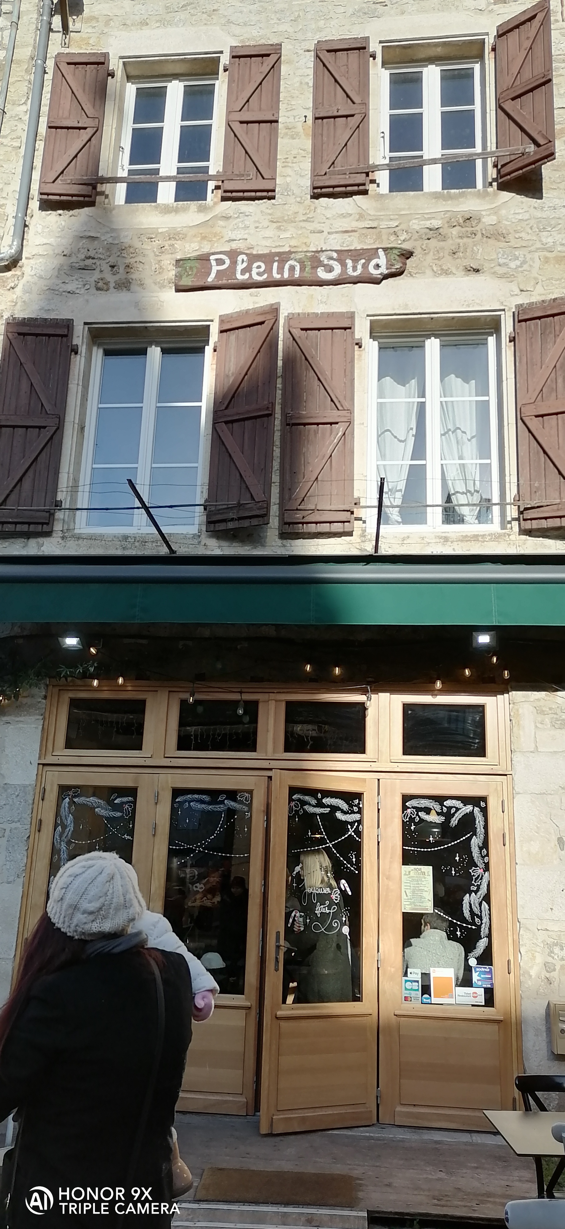 C’est en couple accompagnés de notre chienne Tokyo que nous avons pu tester par 2 fois dans la même journée le restaurant Plein Sud. Au café le matin ou pour déjeuner, nous avons été bien reçus et la nourriture était bonne. Les quantités sont très généreuses et les prix corrects. Le lieu est très beau, la terrasse donnant sur les halles du village.