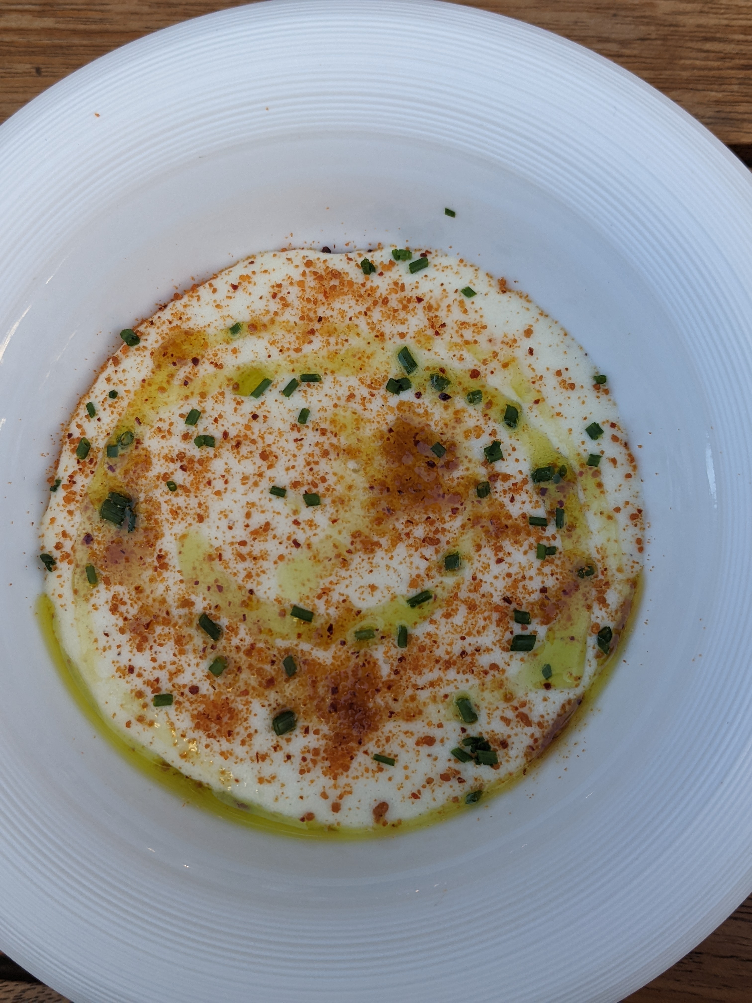 Quelle agréable surprise! Venant de dîner au Ramsey 1 étoile à Versailles deux jours plus tôt, nous essayions de voir comment cela pourrait se comparer. C'était l'anniversaire de ma femme et nous avions réservé un menu fixe via The Fork. Du début à la fin, le service était incroyable, la nourriture était fraîche et chaque plat me surprenait de plus en plus. J'ai vraiment adoré et bien que peut-être pas aussi technique que notre expérience à Ramsey, le repas a définitivement été livré au goût. Les assiettes avaient l'air fraîches, les combinaisons étaient incroyables et j'ai adoré que le chef utilise un œuf vert dans la cuisine. Il m'a invité au barbecue. Je recommande absolument d'aller ici. Jimmy le chef est très talentueux. J'espère revenir.