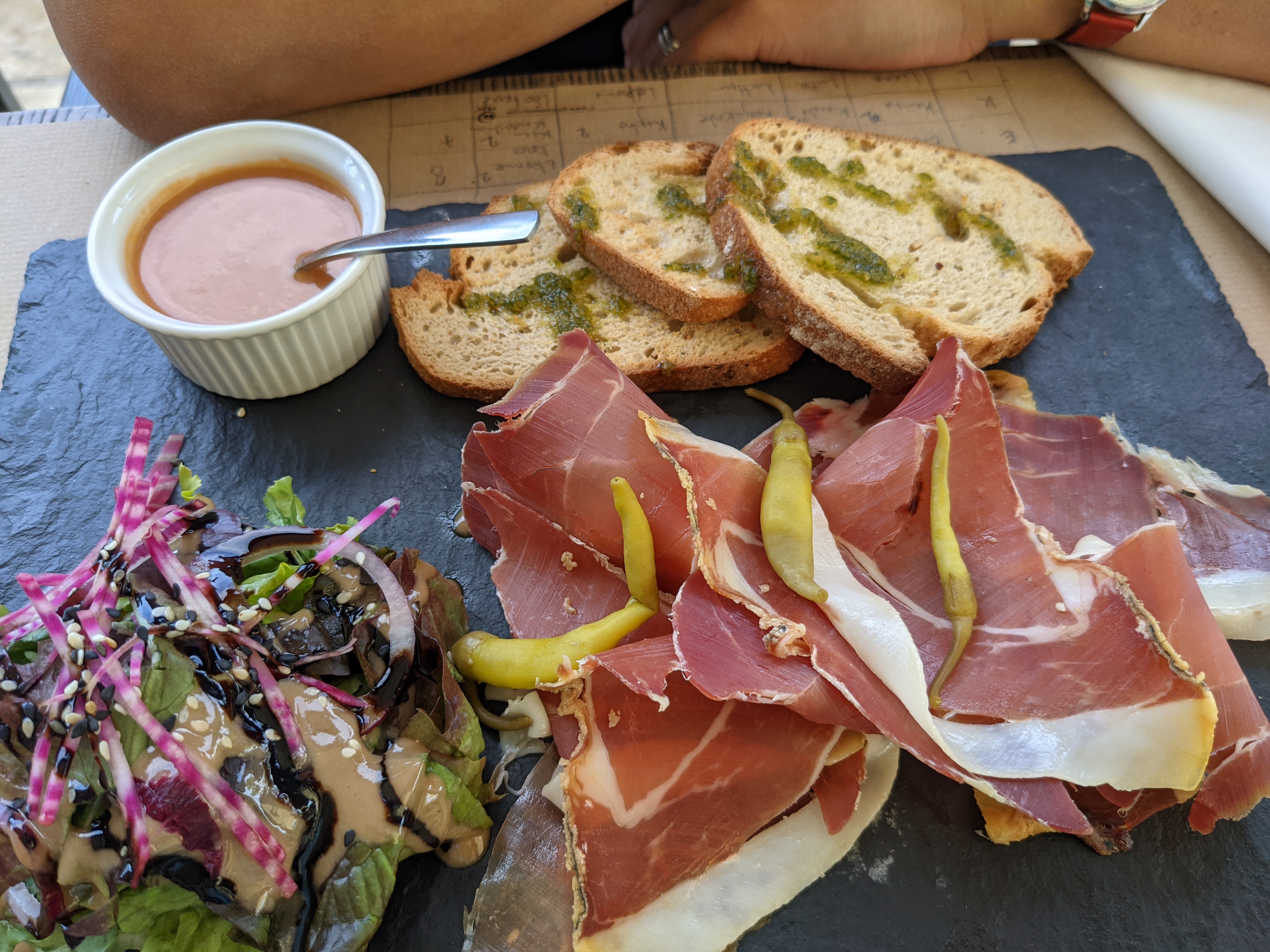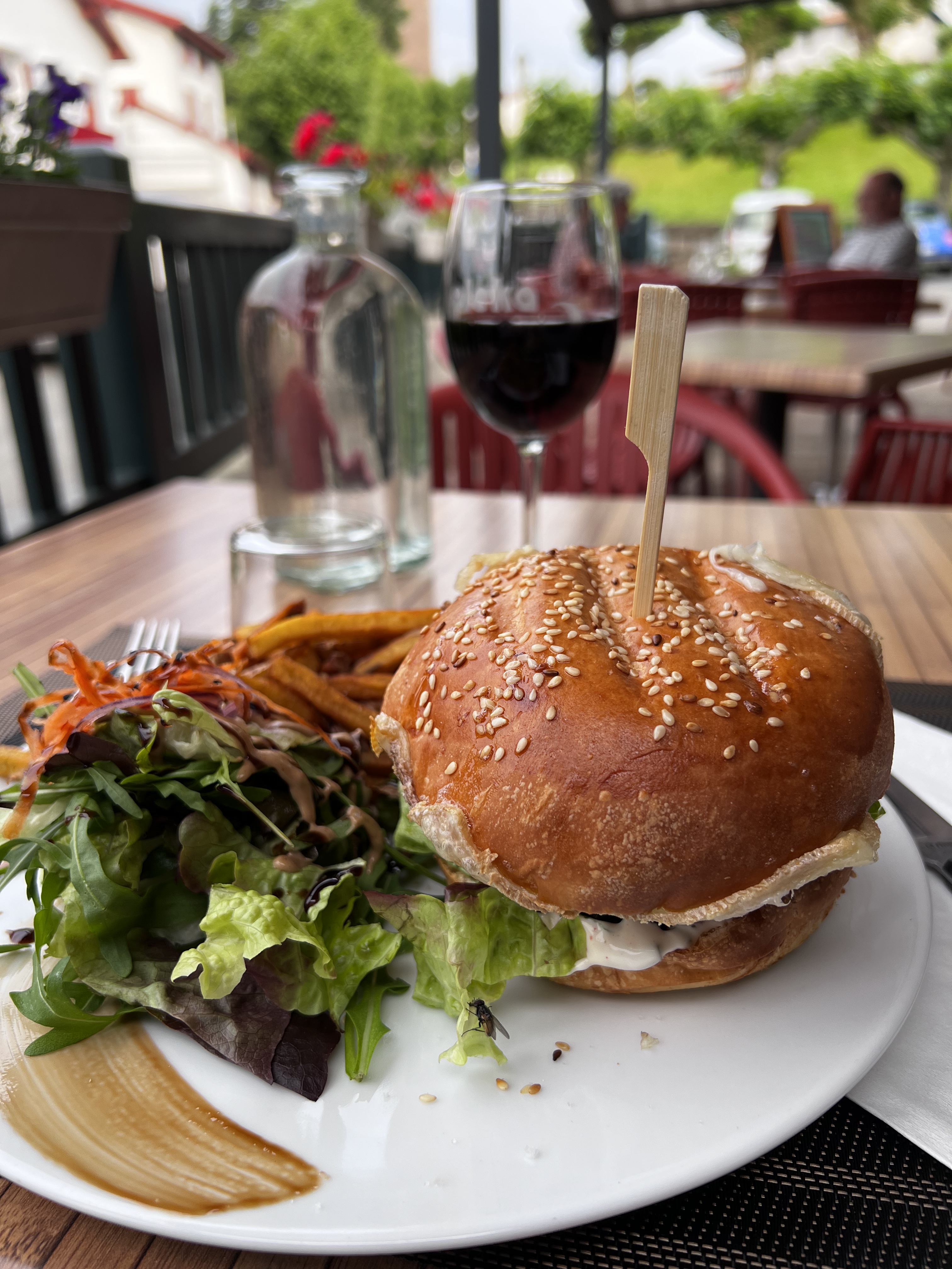 Après avoir visité la Rhune, petite balade au village de Sare où nous avons mangé au Pleka. Serveurs agréables, belle carte avec des choix difficiles ! On a envie de tout goûter, c’était très bon !