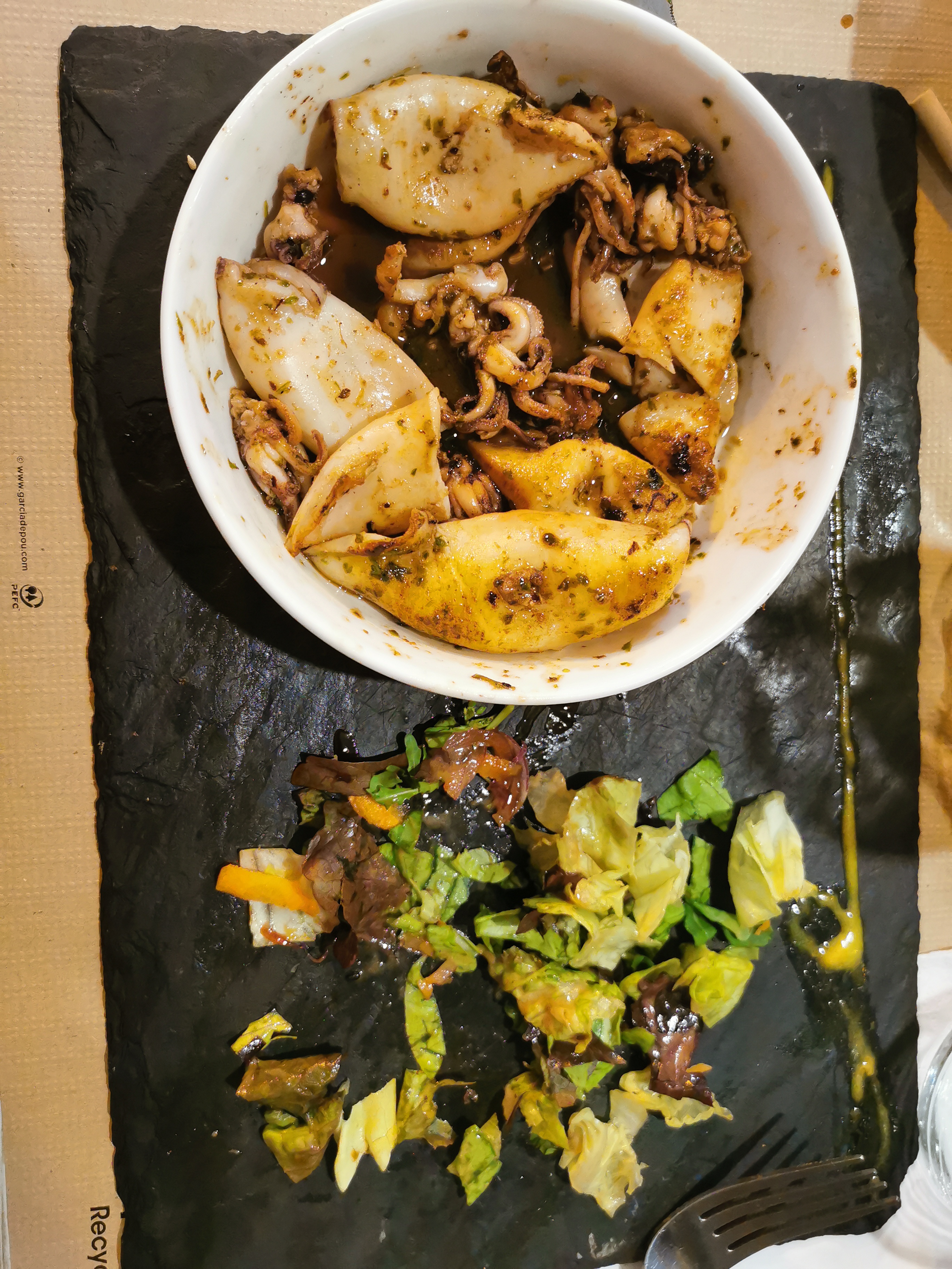 Mais quel régal ! Une matinée pluvieuse et maussade compensée par un accueil chaleureux à 12h30. Un menu du jour pour 15€ fort sympathique, mais la suggestion du jour à la carte emporte ma décision : une fort belle assiette de chipirons à l'encre servie avec un riz safrané agrémenté, forcément, de quelques lamelles de piquillos. Bref une bien belle assiette, généreuse en quantité, tout en contraste dans les couleurs et un régal pour les papilles. La cuisson des chipirons est nickel et la sauce à l'encre relevée juste ce qu'il faut. Pour les autres, ce fut une belle pièce de boeuf de Galice avec frites maisons , selon leur dire, top qualité également. Bref un très bon moment. Je conseille.