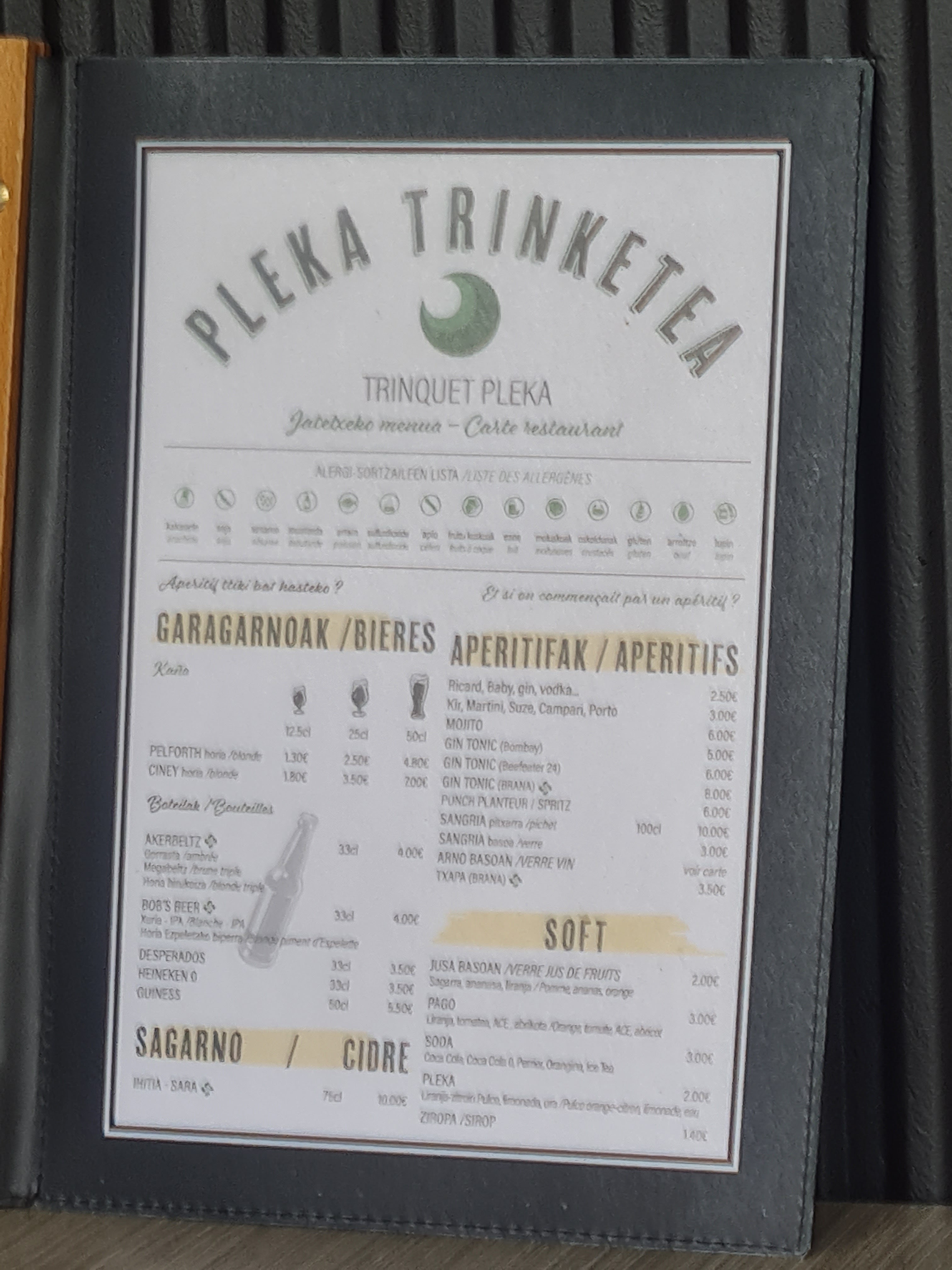 Excellente découverte. Très bon accueil, bon service, carte très variée, un délice de l'entrée au dessert... Je recommande vivement. Pour vivre pleinement, je suggère le combo petit train de la Rhune vers 9h30, retour vers 12h et 12h30 au restaurant Pleka... Petite surprise au bout de la salle : un trinquet!