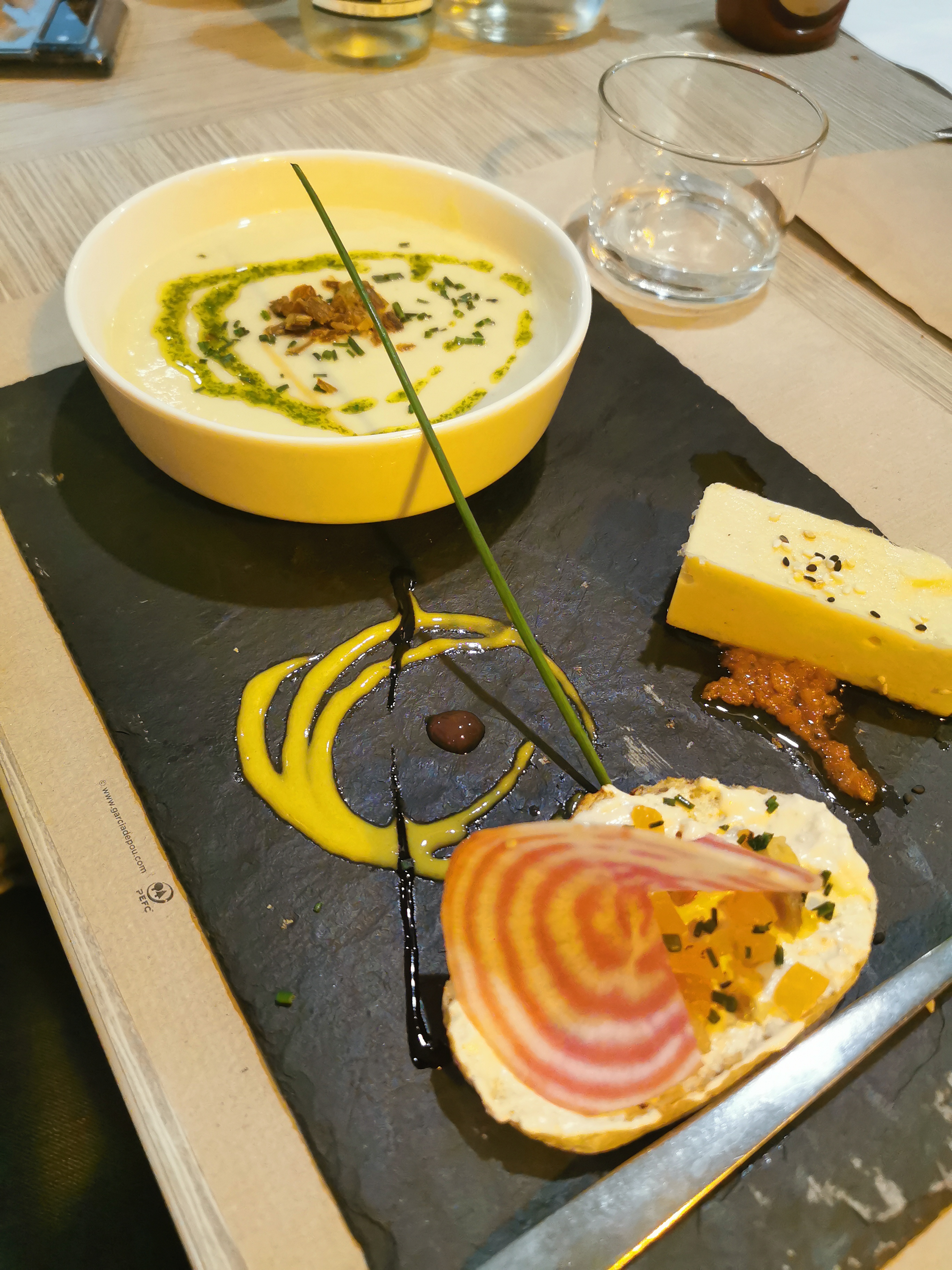 Accueil vraiment agréable ! Reste que la cuisine ne suit pas le rythme au niveau qualité. Chipirons presque imangeable tant ils étaient salés. Thon vraiment sec et peu savoureux. Même garniture aux entrées qu'au plat. Et des spaghettis pour accompagner le thon (aussi bien salé) au lieu des pommes au four annoncées. Riz à l'encre bon mais pas au dessus du lot malgré une émulsion de basilic originale. Dessert de meilleure facture. Au final en écoutant les descriptifs du patron et en lisant les commentaires on s'attend à un vrai bon repas. Mais on manne plus qu'on ne déguste. Une réelle déception. Certainement une adresse pour les non gastronomes.