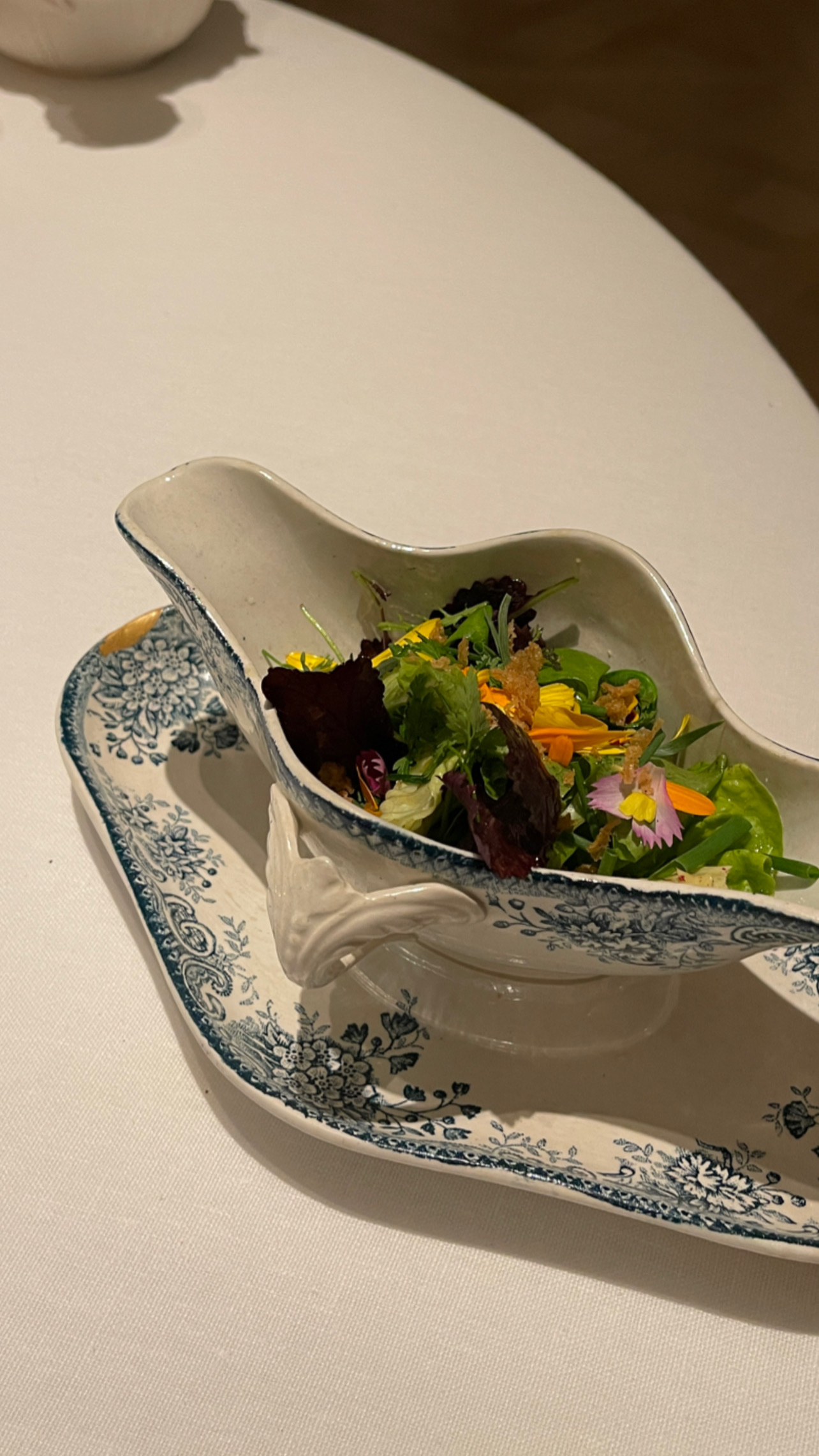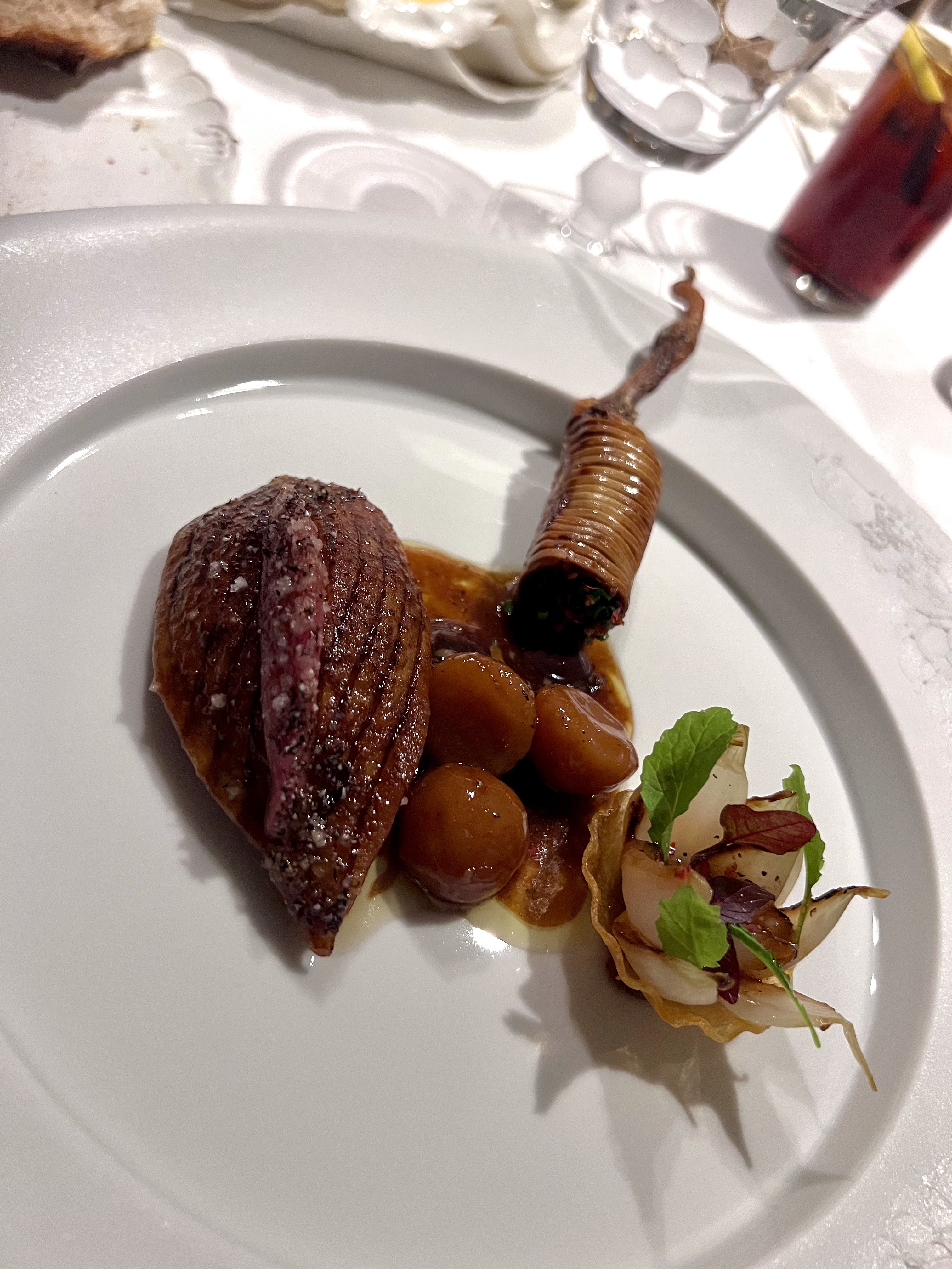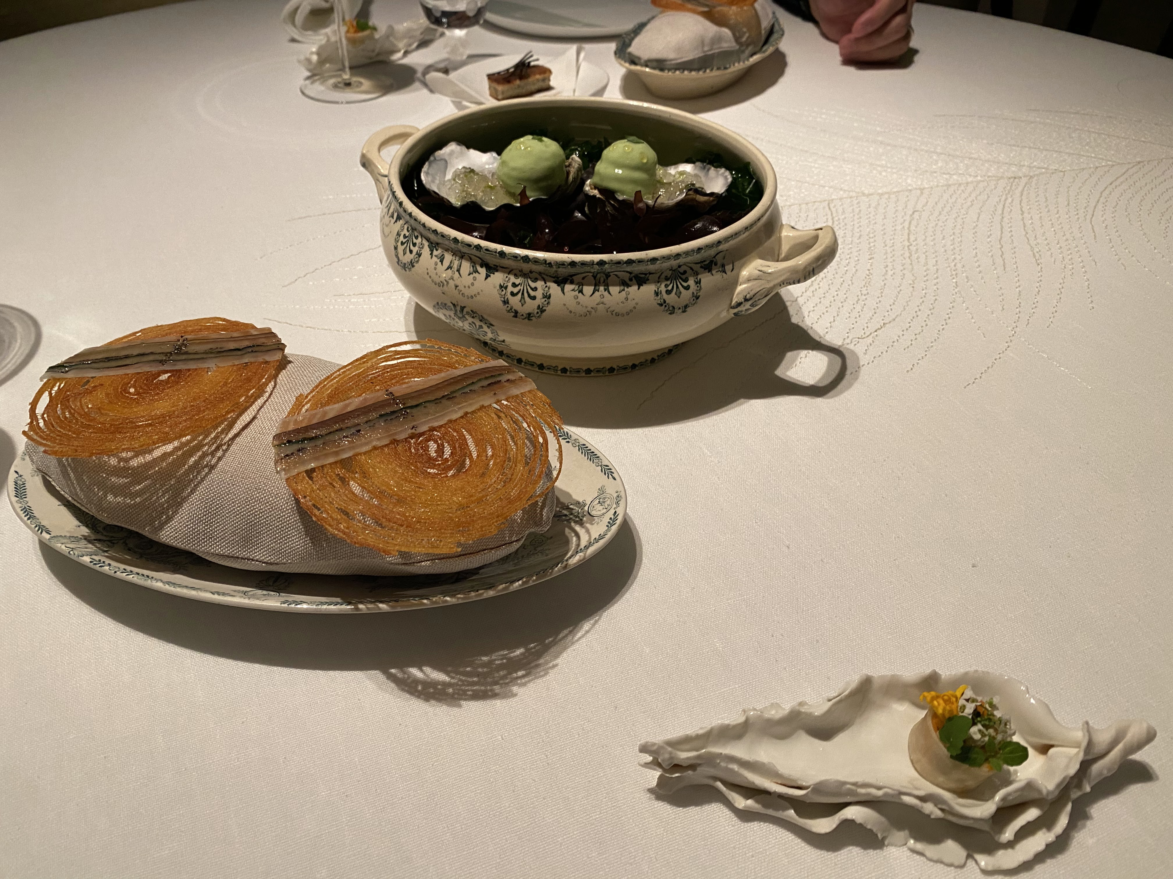 Un rare moment de gastronomie J ai été très impressionné par notre diner : la précision des cuissons du turbot et du pigeon , la finesse de la vaisselle et les œuvres d art partout , les sauces ( juste exceptionnelles ) c est d ailleurs la première fois dans un trois étoiles qu on nous demande de commencer le repas par déguster la sauce avant le plat Les desserts : poésie , dentelle ,fraîcheur, Le service est parfait tout le monde est au petit soin Une mention particulière pour Alexandre , très prévenant , drôle et smart Nous avons dîné dans le petit salon du fond et c était magique Bravo chef et bravo toute l équipe pour ce voyage sensoriel
