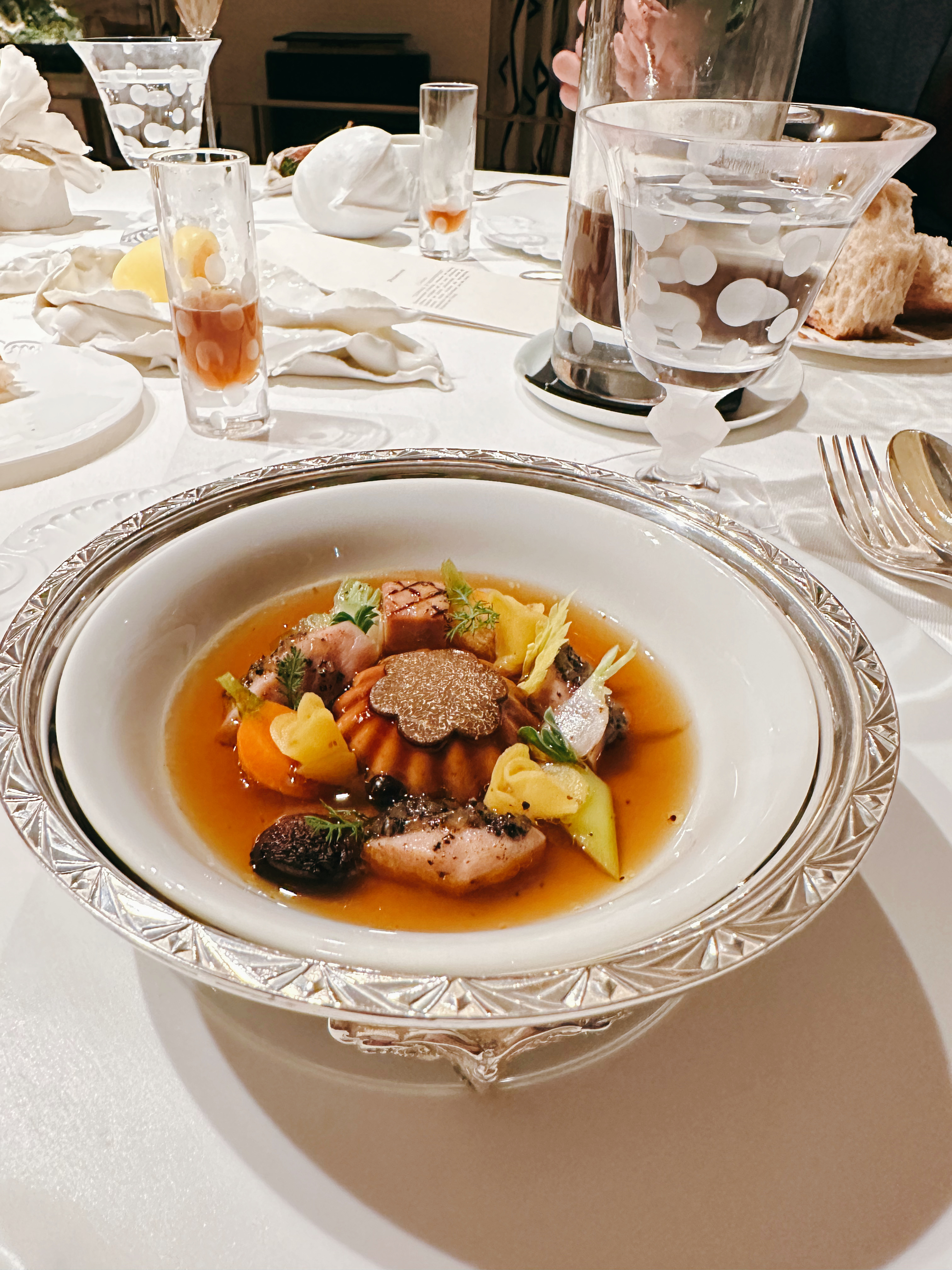 Première expérience trois étoiles, c'était époustouflant. L'expérience culinaire avec plénitude est sublime, elle vous rappelle l'élégance à la française dans chaque aspect de ce dîner !