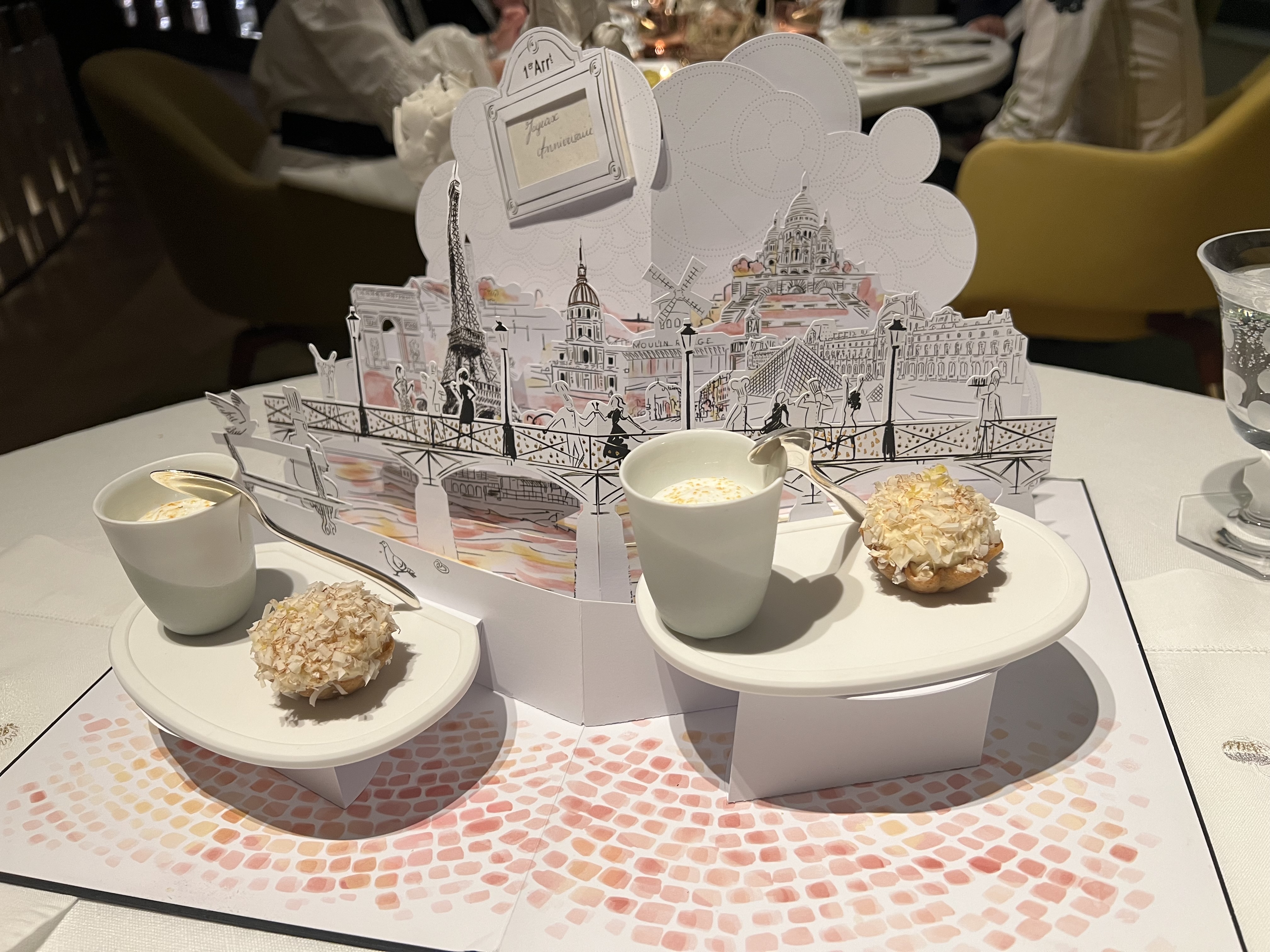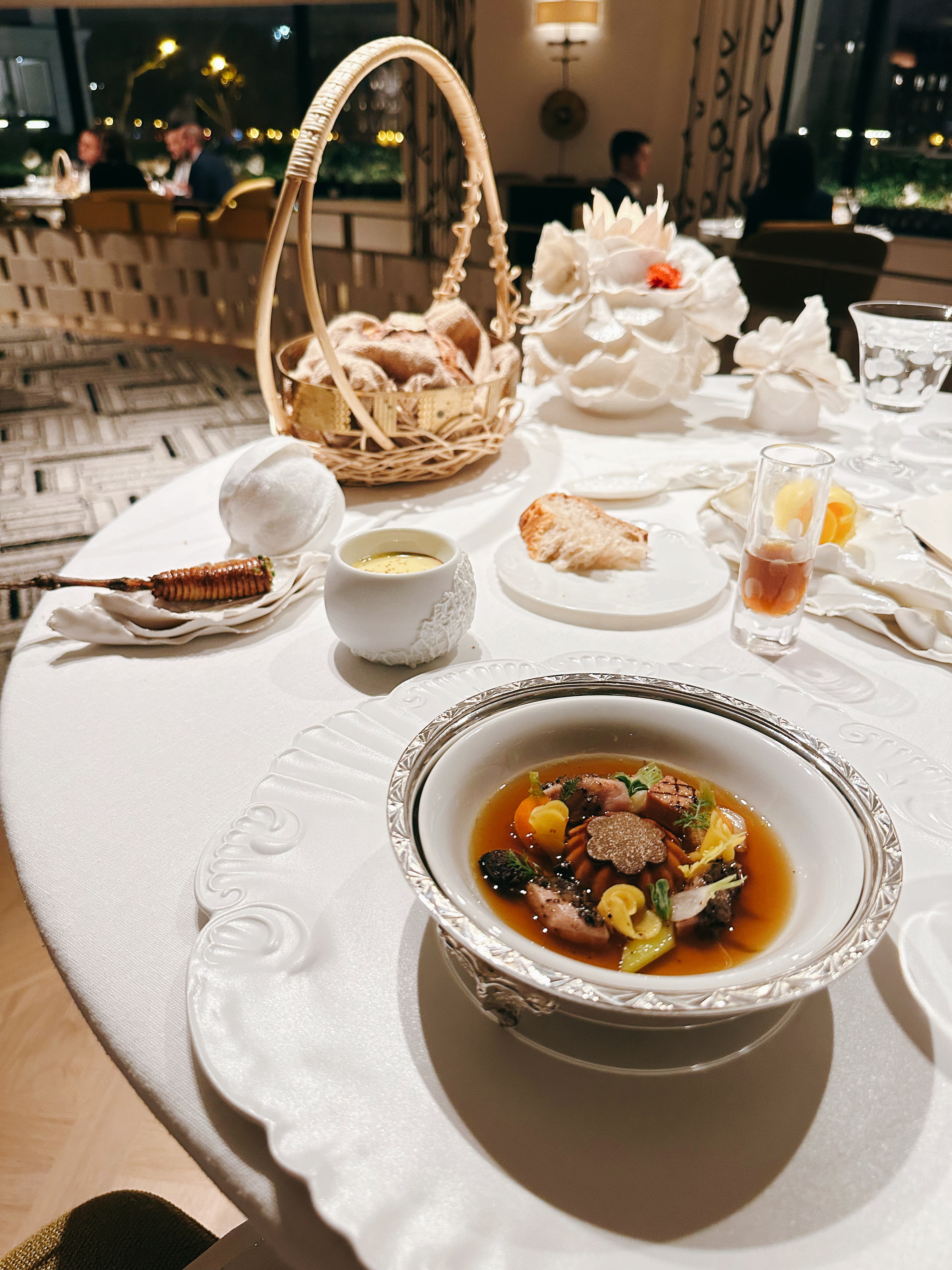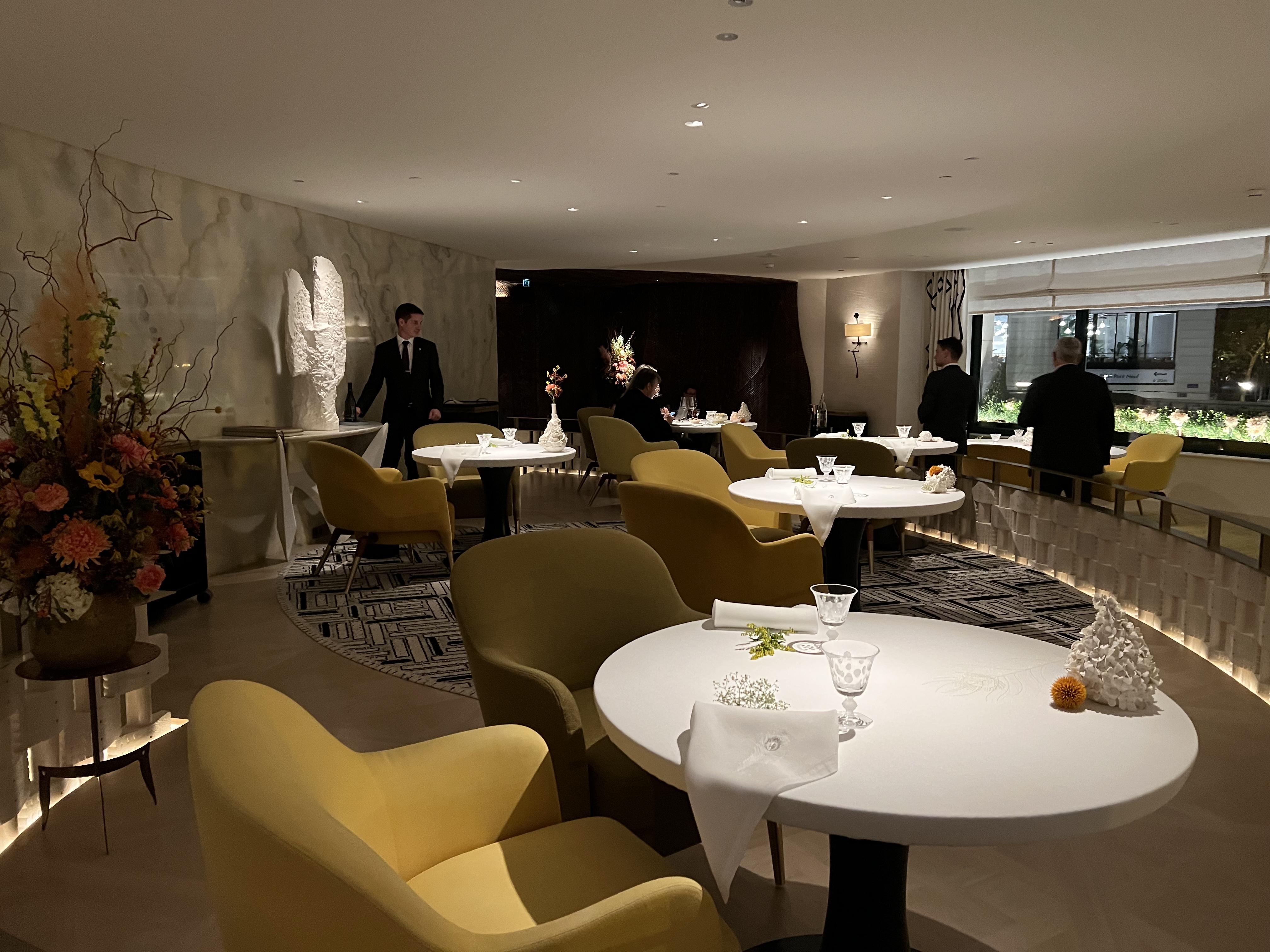 Le restaurant le plus branché de Paris en 2023. Apparemment, il est si difficile de réserver que les réservations sont complètes jusqu'en janvier 2024. La première chose que je dirais : le service est superbe. De belles serveuses qui se comportent comme des vendeuses dans les magasins LV. Le cours de vins premium est également très bien organisé. Les plats de restauration sont à juste titre trois étoiles, mais ne me semblent pas particulièrement inspirants. Très français et entièrement à base de crème. De nombreux restaurants trois étoiles ont abandonné la crème pour se tourner vers l'umami. Dans l'ensemble, je trouve que le restaurant est un peu hype car c'est le meilleur restaurant du dernier hôtel LVMH à Paris. Plus il est difficile de réserver, plus les gens veulent réserver