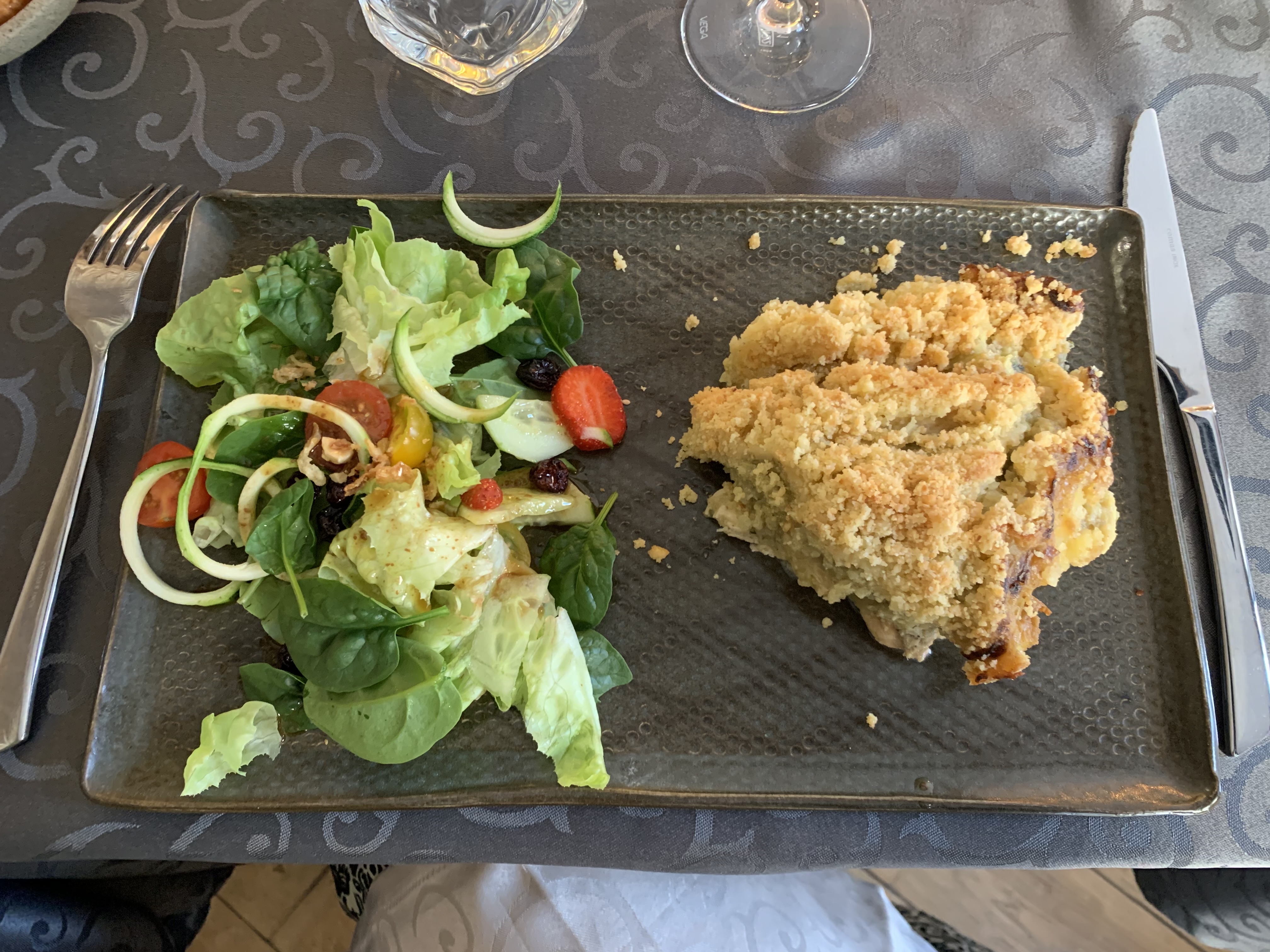 Nous étions 2 et nous avons déjeuner vendredi dans ce restaurant et nous avons passé un très agréable moment. En centre ville mais dans un endroit tranquille nous sommes passés devant un peu au hasard et le menu nous a attiré ( la mention « tout fait maison » n’y est pas pour rien) nous avons déjeuner en terrasse après avoir été accueilli par un grand sourire mettant immédiatement en confiance. Les plats étaient excellent joliment préparé. La salle intérieur est très agréable à l’image de la patronne qui est aussi la cuisinière et la serveuse… bref un bel endroit à Salon de Pce qui en plus d’être un restaurant et également un salon de thé avec de délicieux petits gâteaux et un grand choix de thé