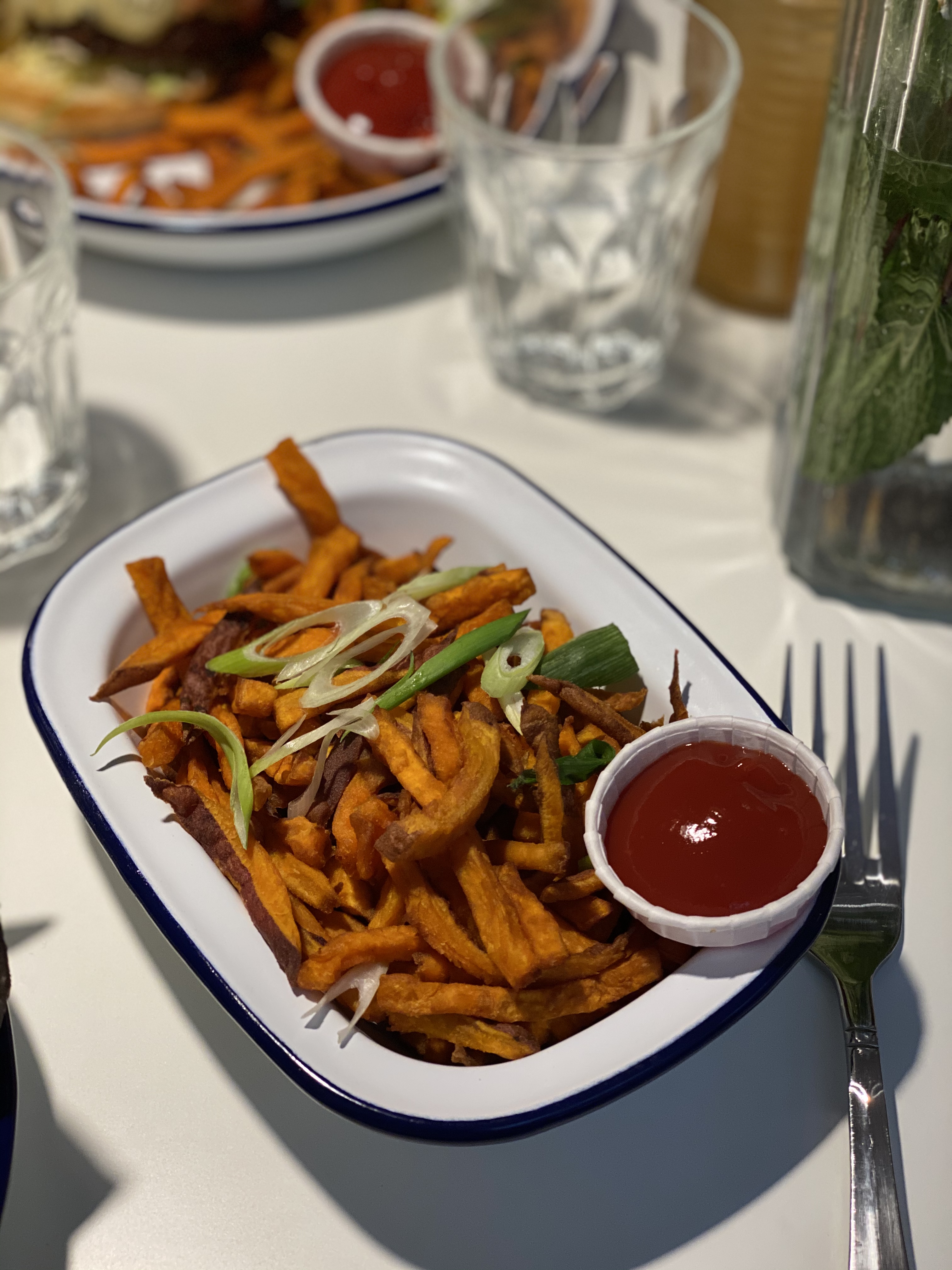 Un burger d'exception ❤️ Des frites excellentes, celles de patates douces sont un peu molles mais restent très bonnes. Tous ça accompagné du sourire et de la bonne humeur des serveurs. Par contre, il y a la queue pour dégoter une table, victime de sont succès