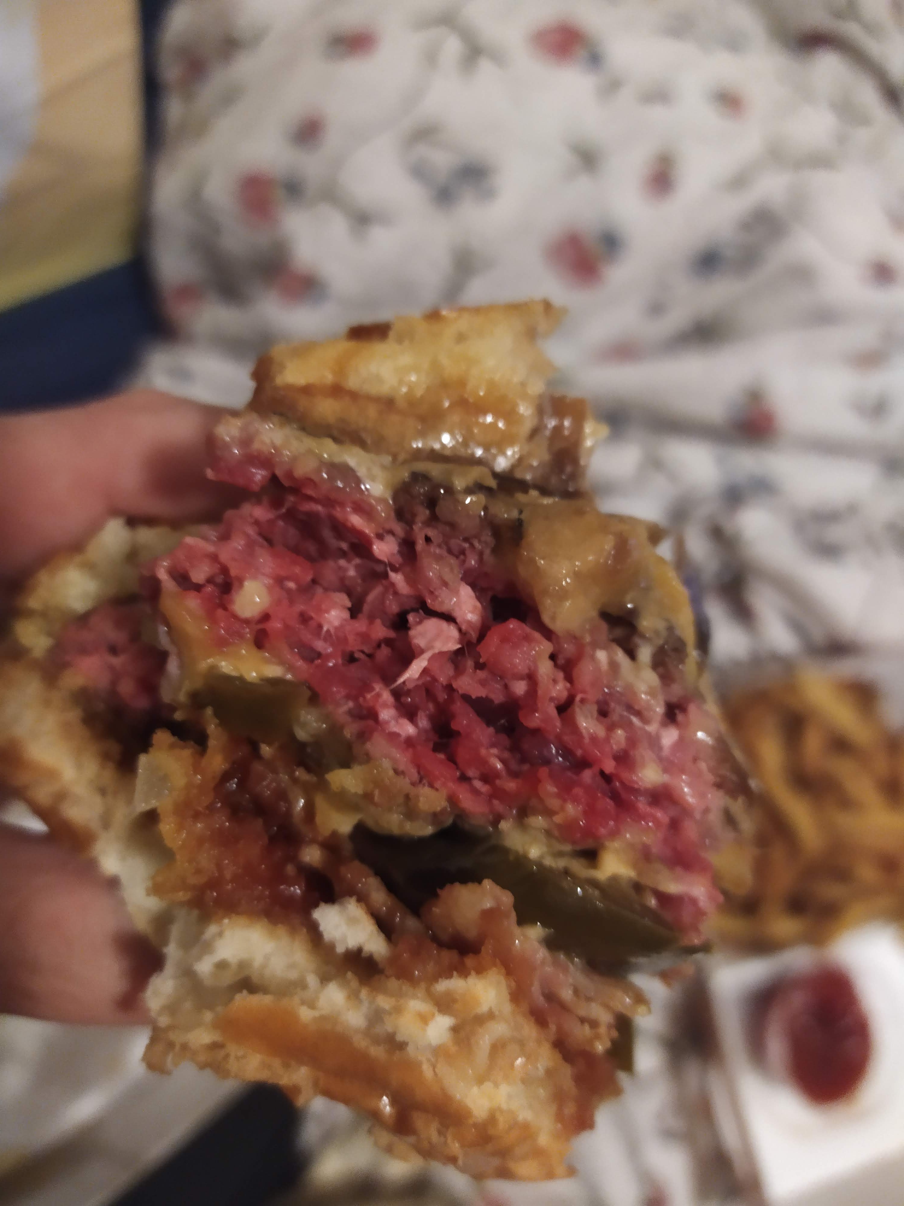 BURGER SENSÉ ÊTRE À POINT VOIR PHOTO !! Spécialiste du burger qui ne sait pas cuire les viandes car je ne semble pas être le seul... Arrivé en livraison froid, du coup frites à 4€ à la poubelle et fromage tout dur. Première et dernière fois.