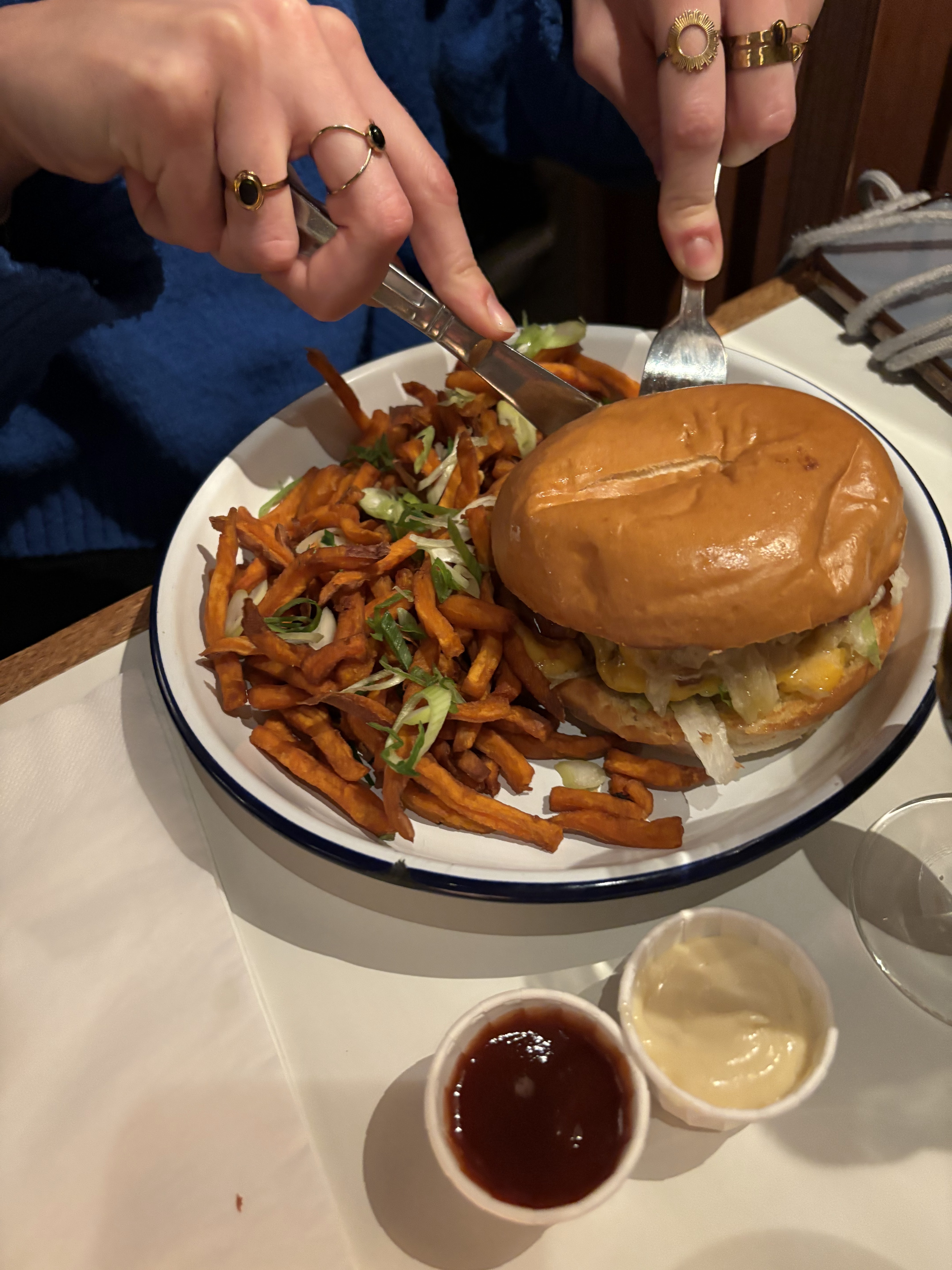 Première expérience au sein de ce cadre cozy et chaleureux (merci à celui qui choisit la musique !). Je n’hésiterais pas à revenir si je suis de passage, les burgers sont excellents, bien garnis (je recommande « l’Aspen ») et briochés, les « Creamy fries » et leur sauce sont délicieuses. Tout est fait maison avec des ingrédients de qualité et cela se ressent, comme les « Onion Rings », qui sont gigantesques et bien croustillants comme on aime. Je n’avais plus la place pour tester leurs desserts malheureusement mais rien qu’en regardant les photos des autres avis, je n’ai aucun doute sur le fait qu’ils soient à la hauteur du reste ! Le service est parfait, mention spéciale à la serveuse qui est adorable et vraiment sympathique, elle aura su nous accompagner parfaitement avec mon ami. Une de mes meilleures expériences culinaires, un très bon moment.