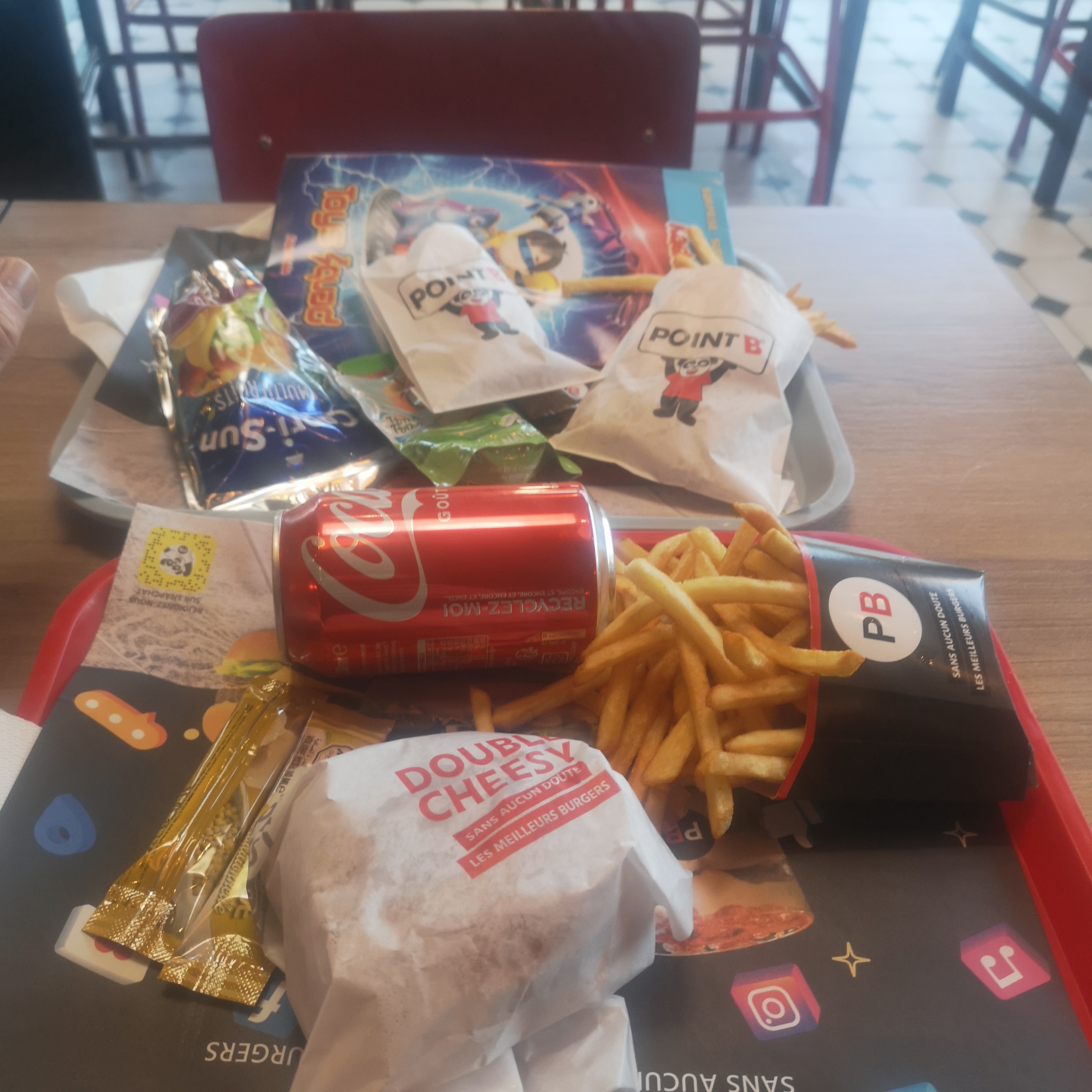 Envie de tester le point B et franchement pas déçue Endroit très propre, personnel très aimable et responsable sympathique Beaucoup de choix et burgers très bons N’ont rien à envier à leur concurrents connus ! J’y reviendrai avec plaisir !