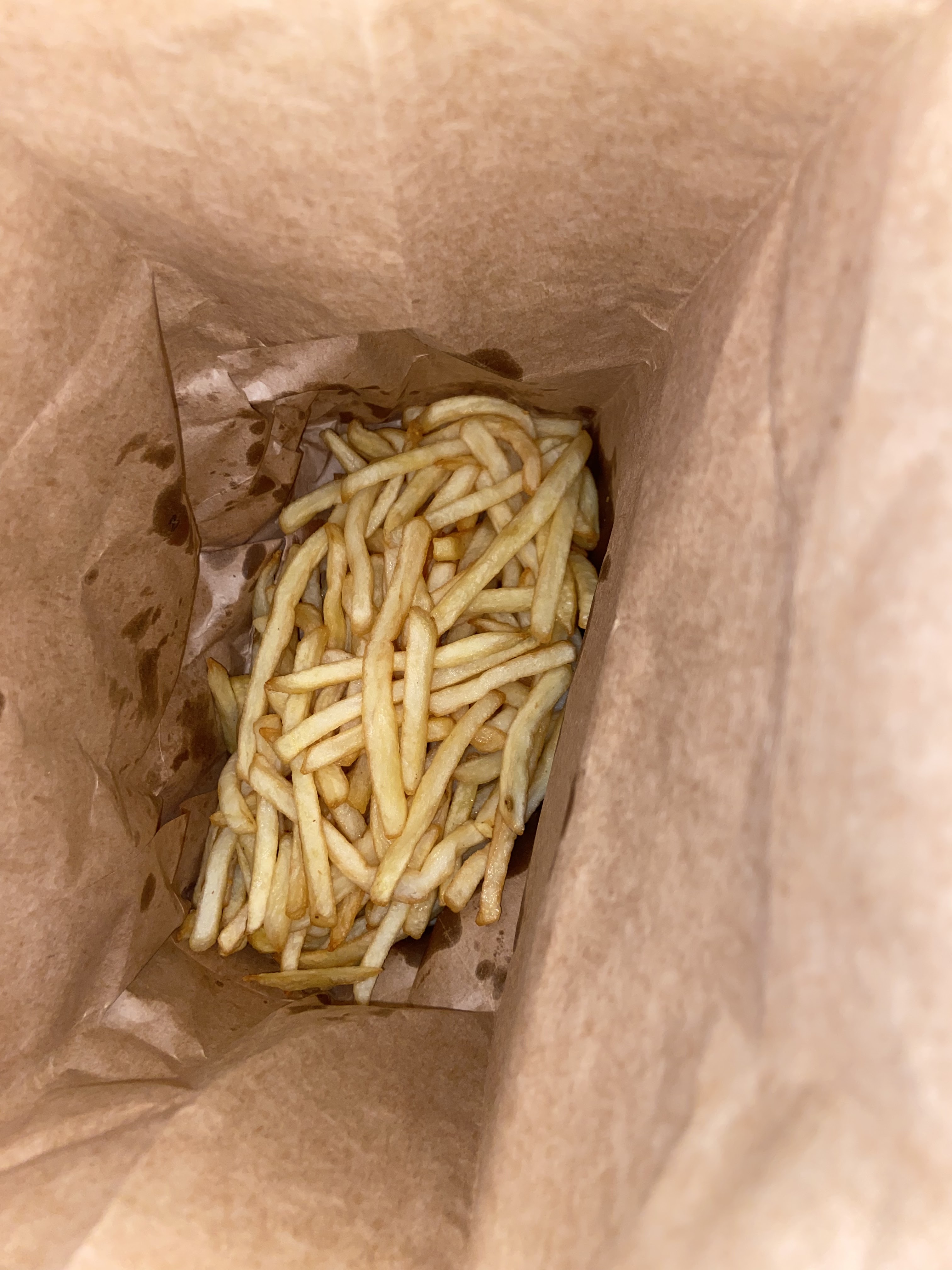 Frites mal cuites + trop salées. Burger avec un goût chelou