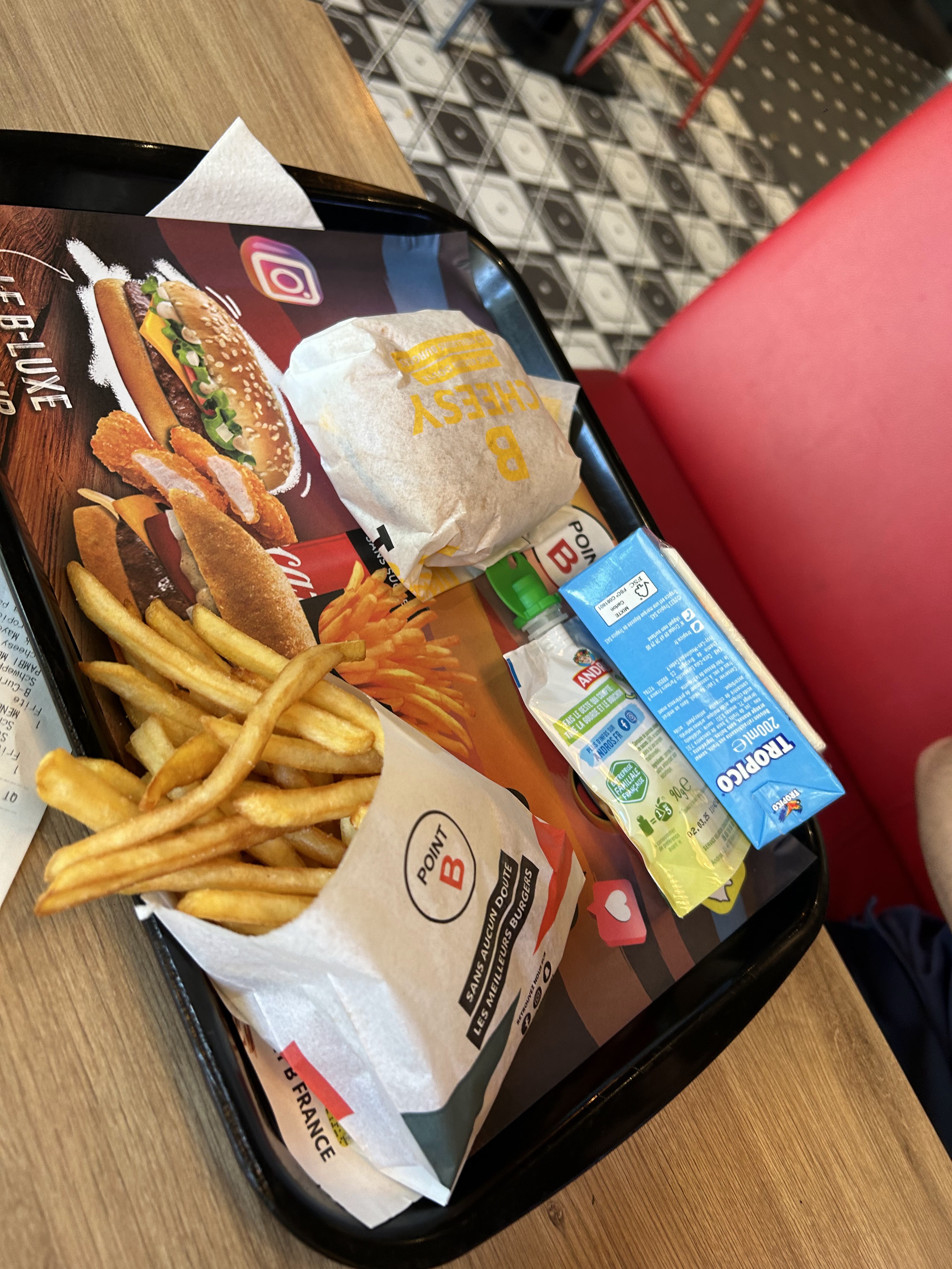 Très bonne expérience, les plats sont bon, généreux et servi assez rapidement. Seule dommage, la qualité des steak haché qui sont fin et assez sec. Sinon les quantités sont bonne et le tout pour un bon rapport qualité prix. Les tenders sont excellent. Je vous le recommande le point B, pourvus qu'il reste aussi bon dans la durée. 👌🏼