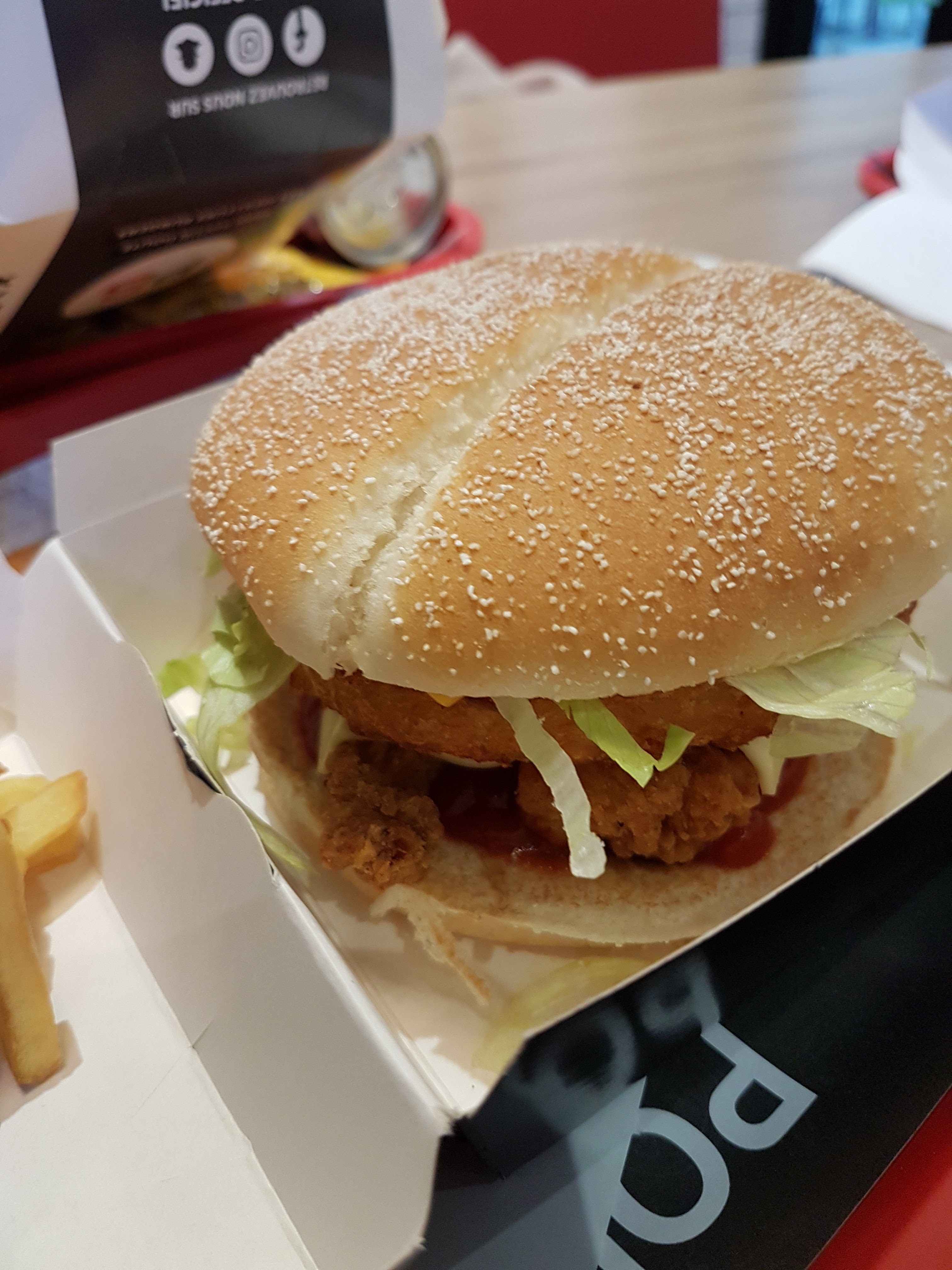 Les frites sont bonnes et les tenders sont pas mal. Parcontre leur burgers et wrap au poulet sont trop simples, pas de sauces spéciales dedans, c'est seulement du ketchup mayo basique, dommage car à 11€ le menu et 7.50€ le burger seul on s'attend à un burger avec une sauce spéciale et travaillée un minimum.