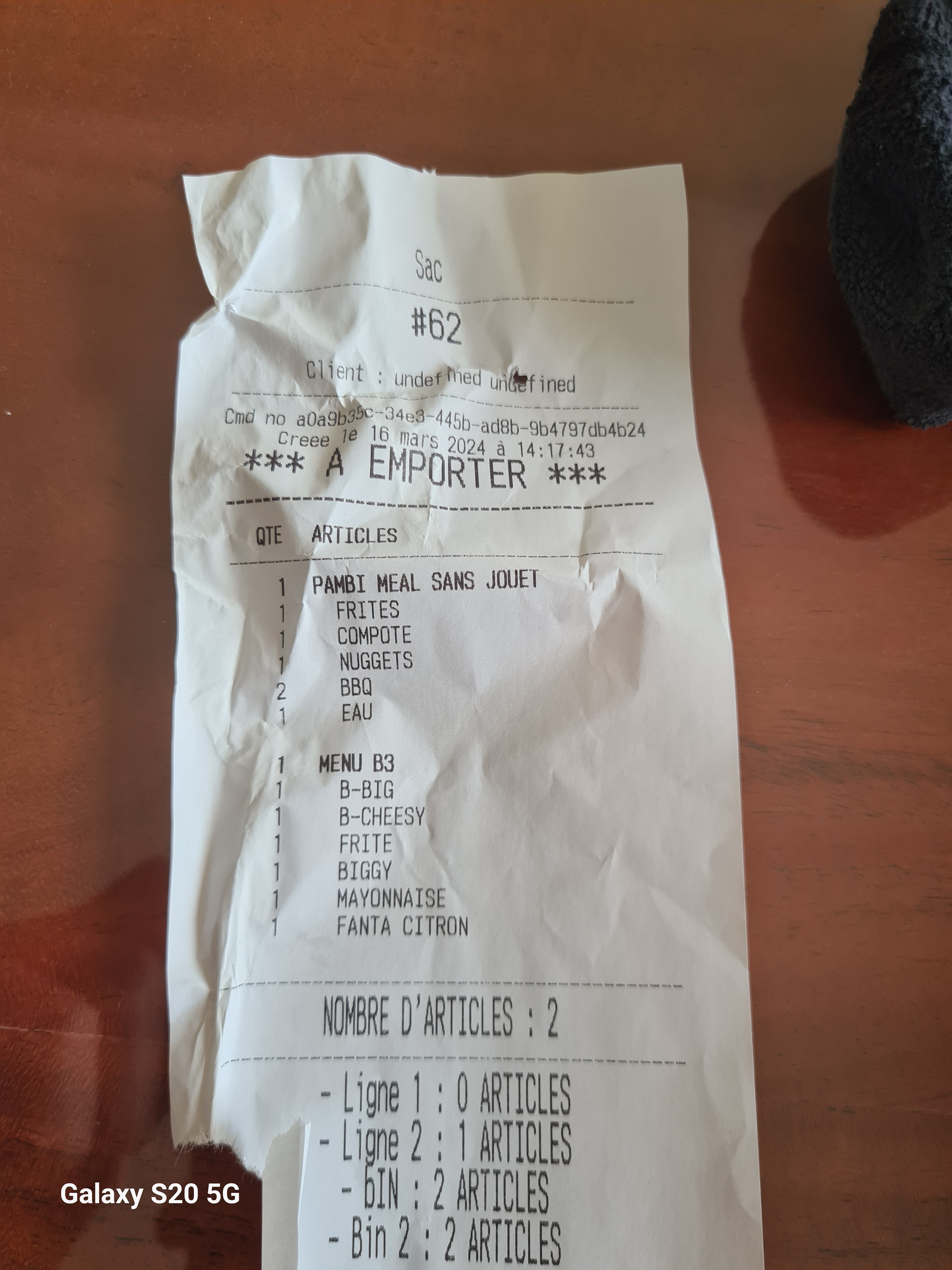 Encore une fois déçue !!! Article manquant dans ma commande , dommage qu’on est obligé de mettre une étoile pour commenter j’en aurai pas mit une seule pour ce fast-food Sur coté ! Burger Froid alors que je suis à 2 minutes en voiture donc bon… et les Frites froide ! Inadmissible