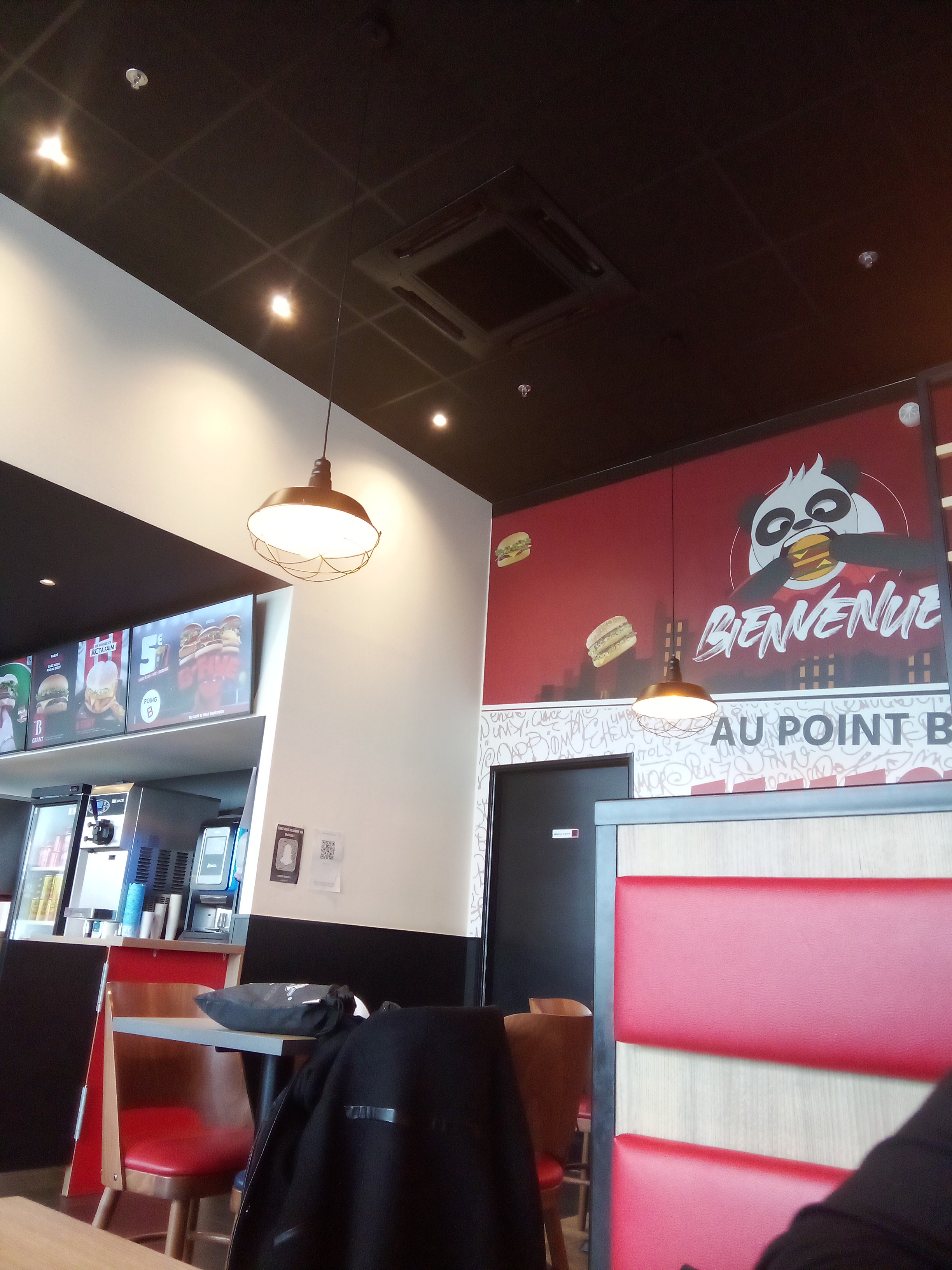 Plutôt agréablement surpris pour une première fois chez Point B, quelques semaines après l’ouverture. Pour comparer avec une chaîne connue qui se trouve à quelques mètres de là : - Beaucoup plus de personnel donc service plus rapide - Menu moins cher pour l’équivalent - Autant de gout (plus ou moins le même d’ailleurs) - Le burger ressemble à ce qui est affiché sur l’écran - Le wrap ressemble par contre d’avantage à un wrap d’un snack kebab que d’une chaîne fast-food - Salle et cuisine d’apparence propre - Personnel sympa J’espère ne pas être déçu lors de mes prochaines visites !