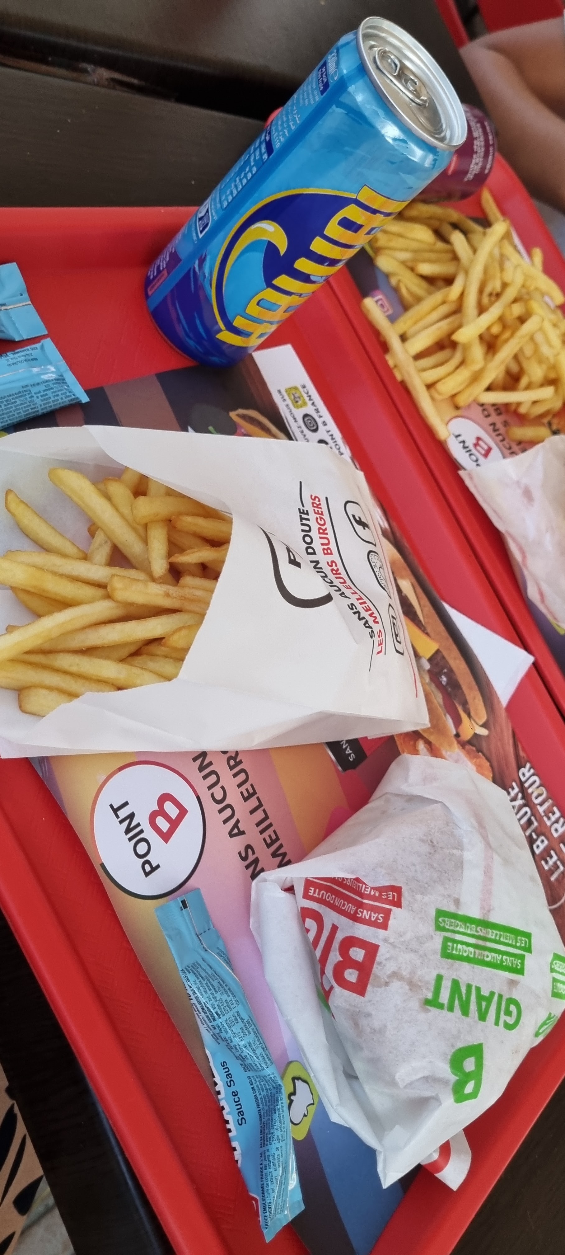 Bonjour, Ayant mangé au Point B ce soir je ne recommande absolument pas cette endroit ni les hamburgers que j’ai mangé ce soir.. J’ai commander un menu B9 ce qui comprend un Giant et un big et mon épouse à commander un menu b 270. Nous avons été déçu de la qualité de produits proposés et de la lenteur dans lequel nous avons été servi, nous avons eu des frites froides est à peine cuite ( immangeable) sans parler de la fabrication des hamburgers qui laissait également à désirer les hamburgers que nous avons mangé était extrêmement sec et nous sentions à peine la sauce et les steaks était ultra sec. Sans parler du personnel pas souriant et désagréable envers mon épouse qui leur a demandé des sauces, surtout ce qui est le plus étonnant c’est qu’on avait l’impression de les déranger.. mauvaise expérience dans cette établissement. Propreté laissant à désiré ..