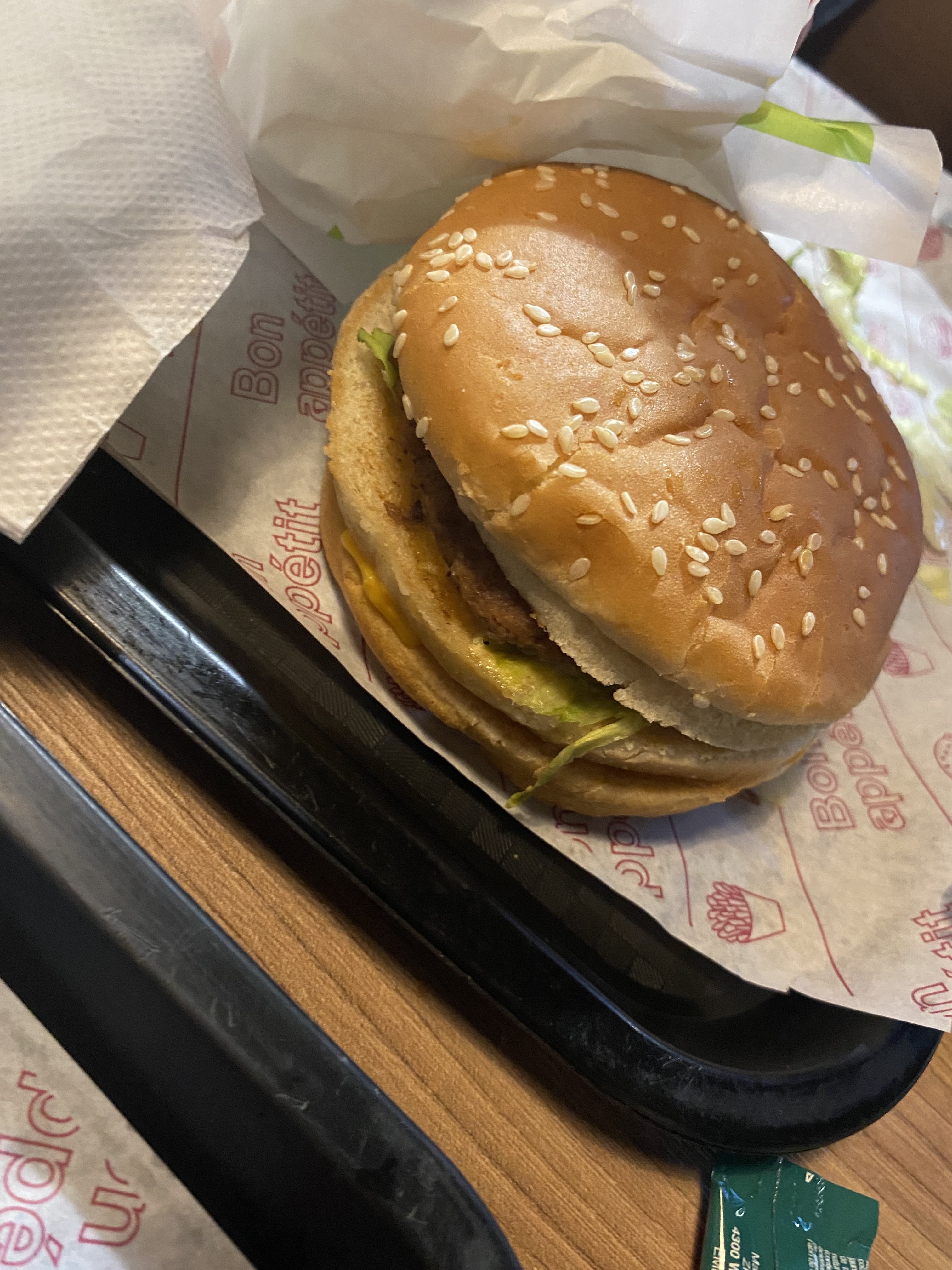 Ne mangez surtout pas de Filet o fish , j ai souffert toute la nuit après en avoir manger un et jusqu'au lendemain je me sentez mal par contre leur burger je n' ai rien a dire. Je pense que le poisson étais soit périmé intérieur du fish étais mouiller je me douter mes j avais faim j ai donc manger