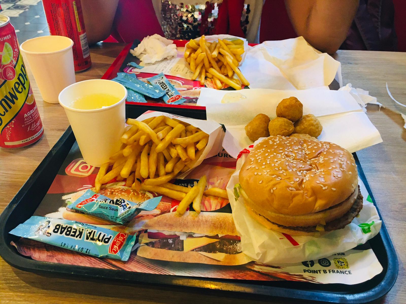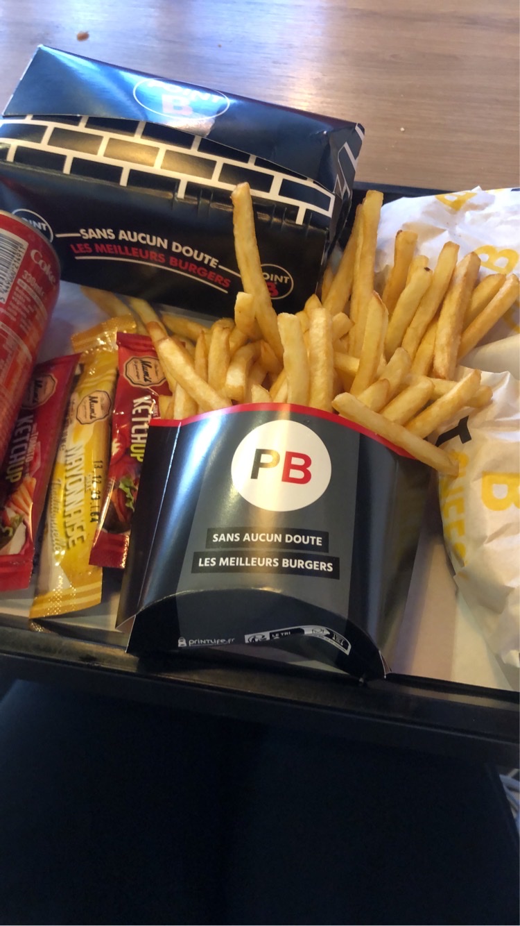Je suis allez au point b en famille, nous avons dû attendre 45min pour 4 menu, servi avec des frittes froide et J'ai demande un 270 sans tomate, ils m'en ont servit avec, par chance je n'ai pas fait de réaction allergique car mon frère l'a vu, mais c'est un manque de professionnalisme sans parler de la qualité ...