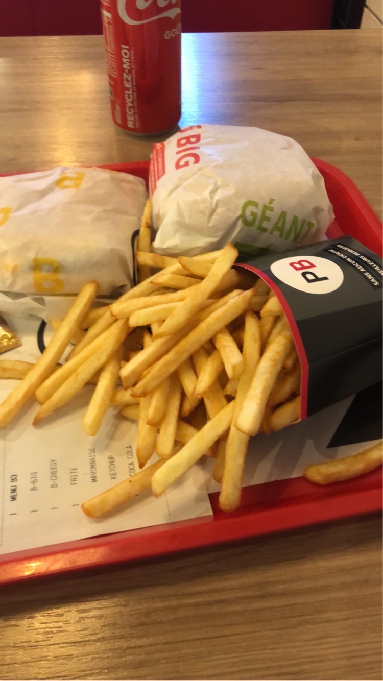 Commande passée sur deliveroo Les hamburgers hypers sec j’ai pris le B9 le bgiant n’avait pas la sauce giant et le b big n’avait meme pas de sauce hyper sec , les frites j’en parle même ps les frite étaient poser comme ca dans le sachet à coté de la canette, point b cest plus comme avant