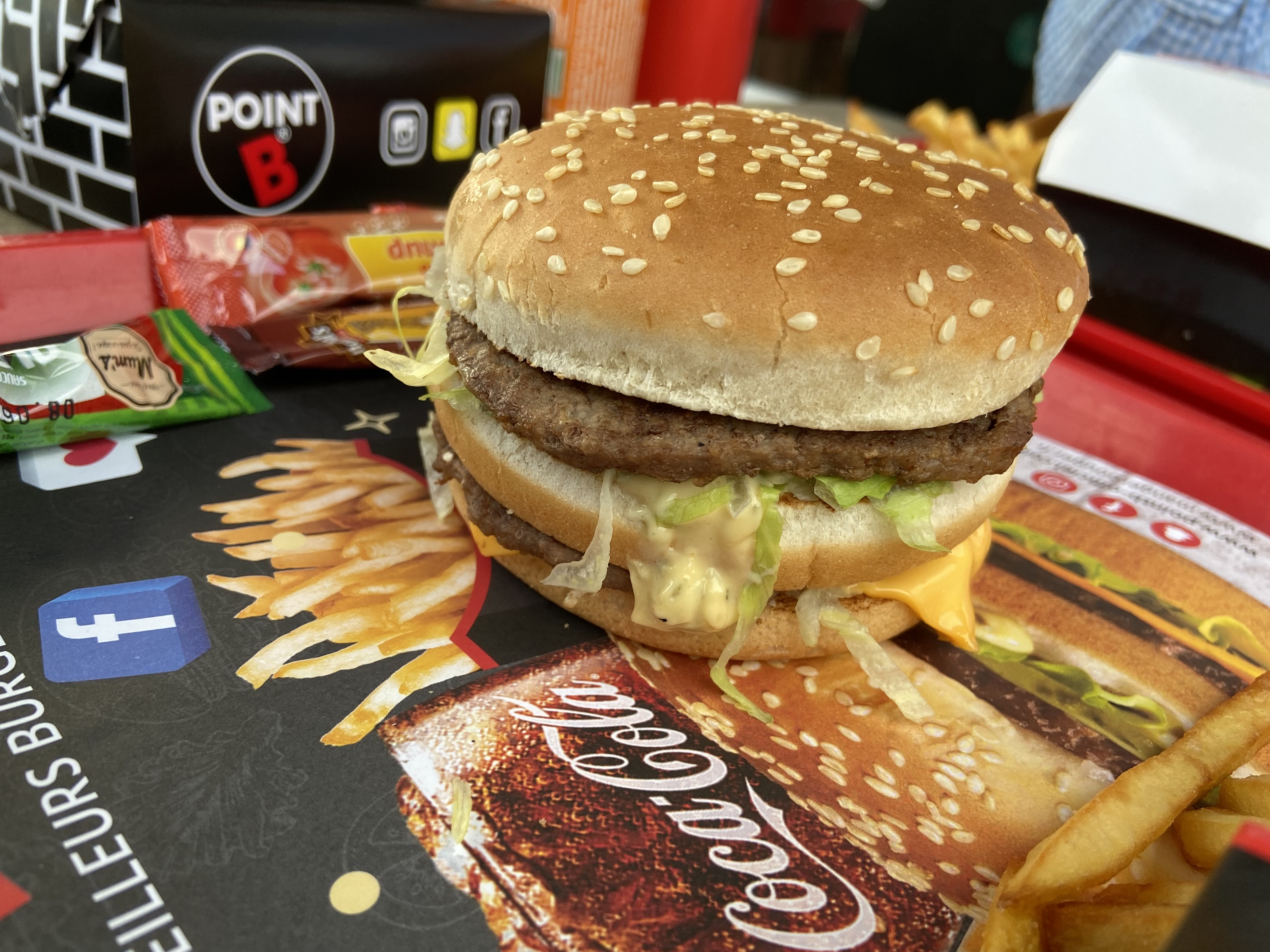 ayant pour habitude de patienter une année complète avant de pouvoir profiter du mc do et de ses burgers mythics, depuis l ouverture du point B sur Toulouse je suis enfin sevré avec ces burgers qui reconnaissons le sont les memes que chez mc do avec un gout identique l acceuil est agreable et le choix et la rapidité du service sont incroyable je conseil fortement en famille en couple ou entres amis avec une super terrasse bien ombragées avec ses fantastique parasol et croyez moi si je vous dis que c est identique c est pas comme a telefoot quand ils disaient que courcuff c etais pareil que zidane la c est vraiment magnifique