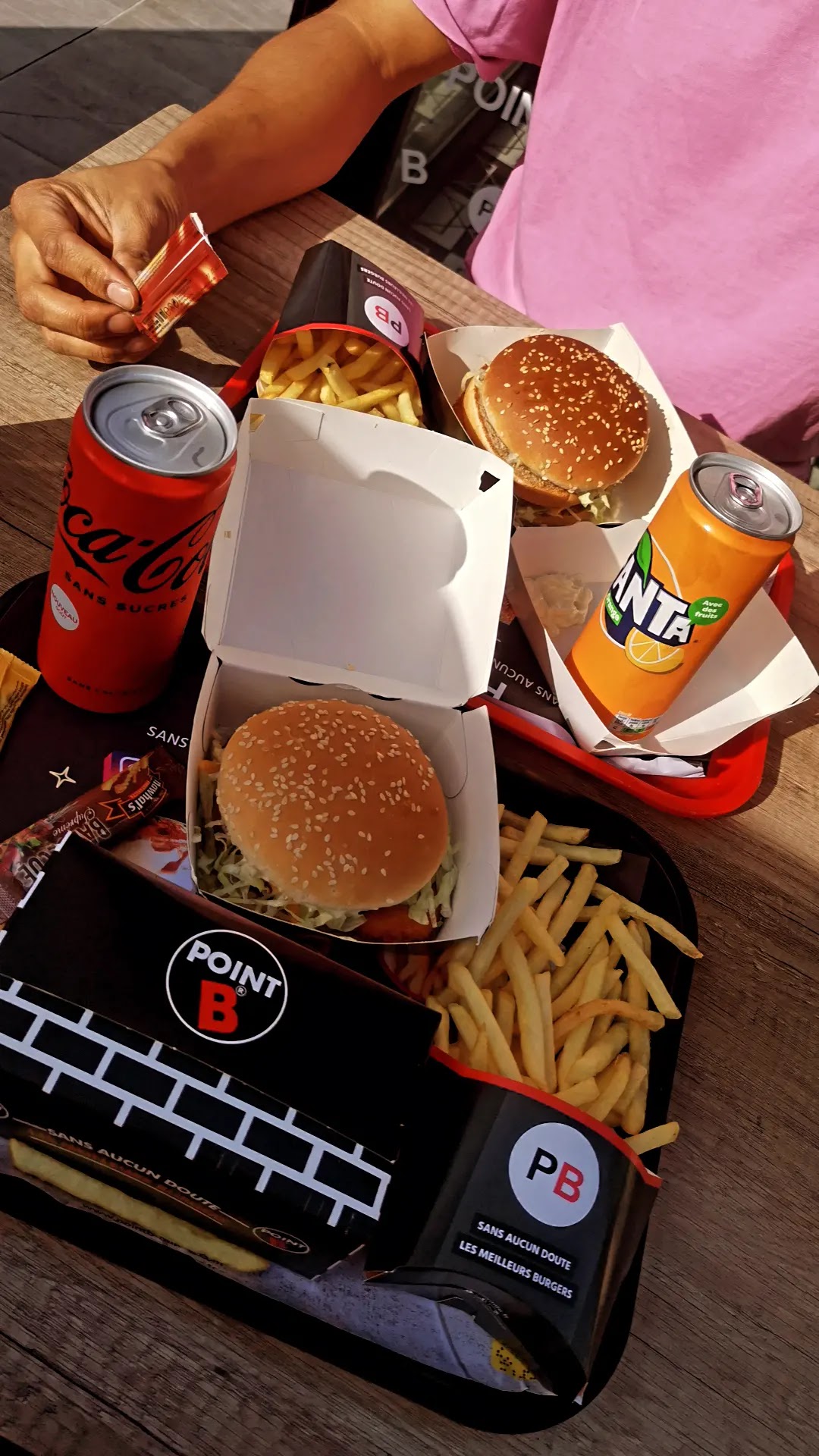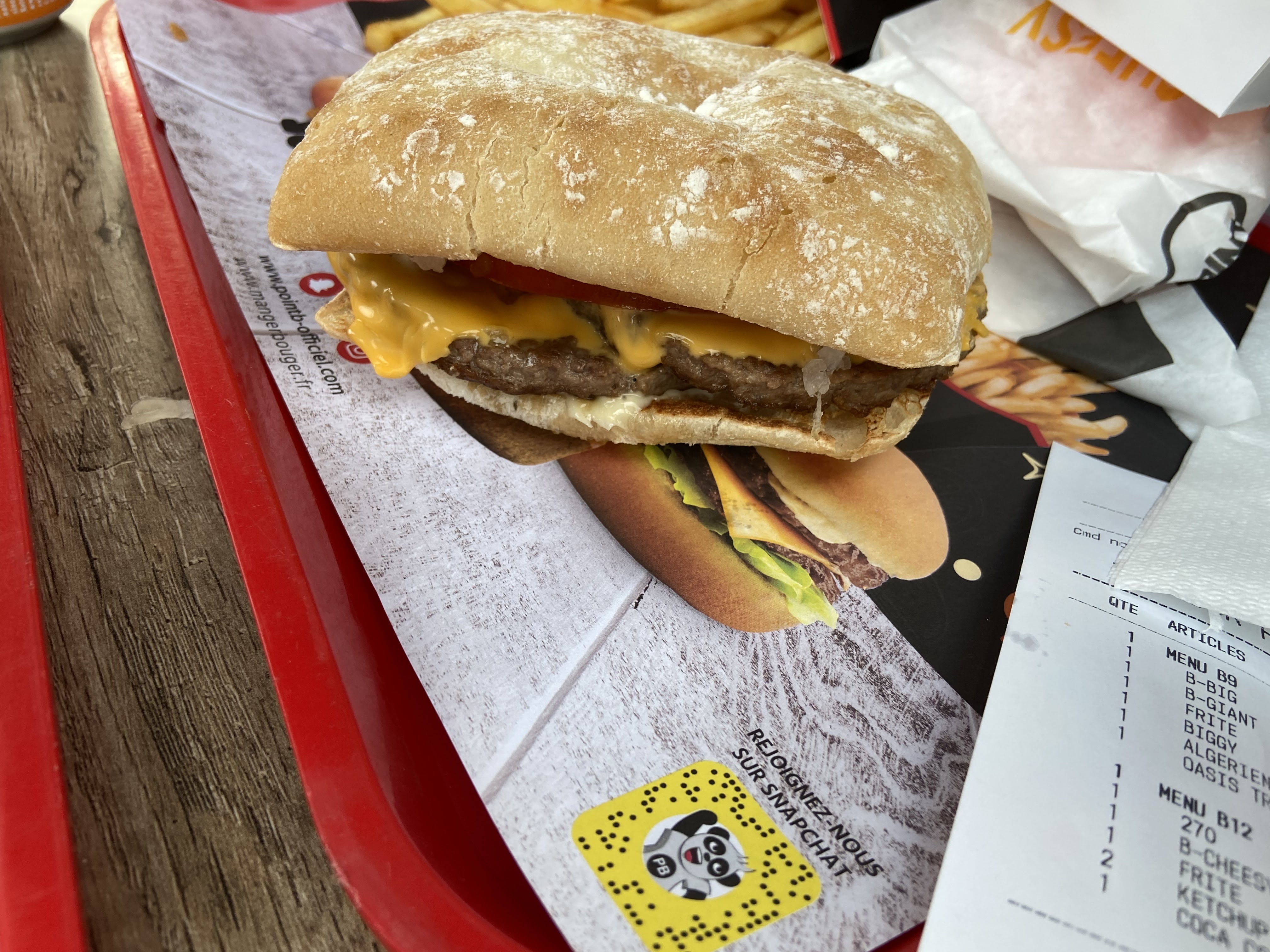 Très bon fast food ! Les hamburgers sont généreux et avec du goût ! Contrairement à des hamburgers du mcdo, ils ne sont pas secs. Le pain du 270 était également très bon, et meilleur que le pain du 280 du mcdo Avantage important : les menus sont composés de 2 Burgers ce qui vous fait le hamburger + la petite faim (petit burger) qu’on prend d’habitude et c’est super bien, c’est quelque chose que les autres restaurants ne proposent pas Plusieurs choix de boissons en canette, il y en a pour tous les goûts Enfin une portion de frites généreuse avec un choix de sauces (algérienne biggy barbecue …) Je recommande fortement cet établissement et y reviendrais avec plaisir Quelques photos du repas pour vous donner une idée de la qualité de ce point B !