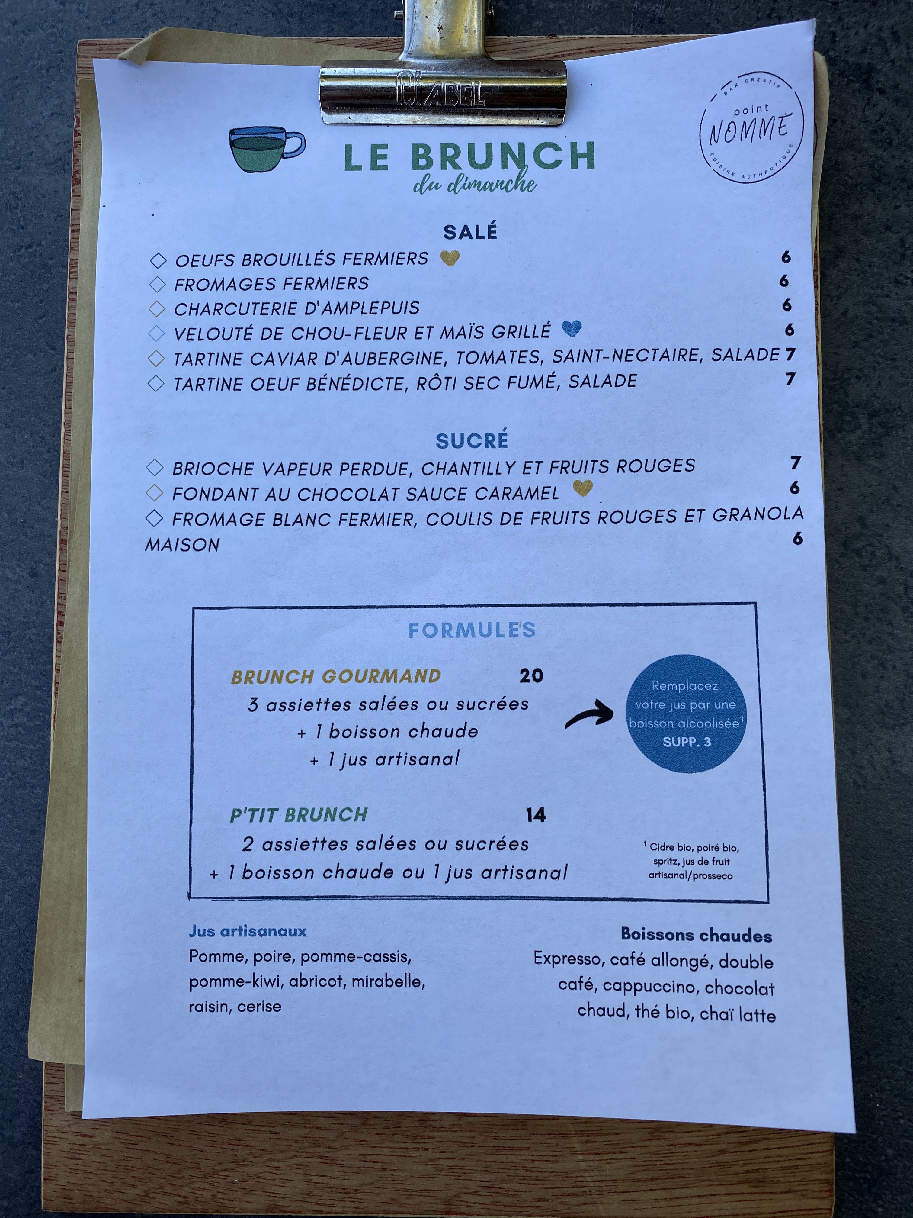 Brunch sain et équilibré. Produits frais, de saison, et de qualité. Portions généreuses. Patron bien sympa.