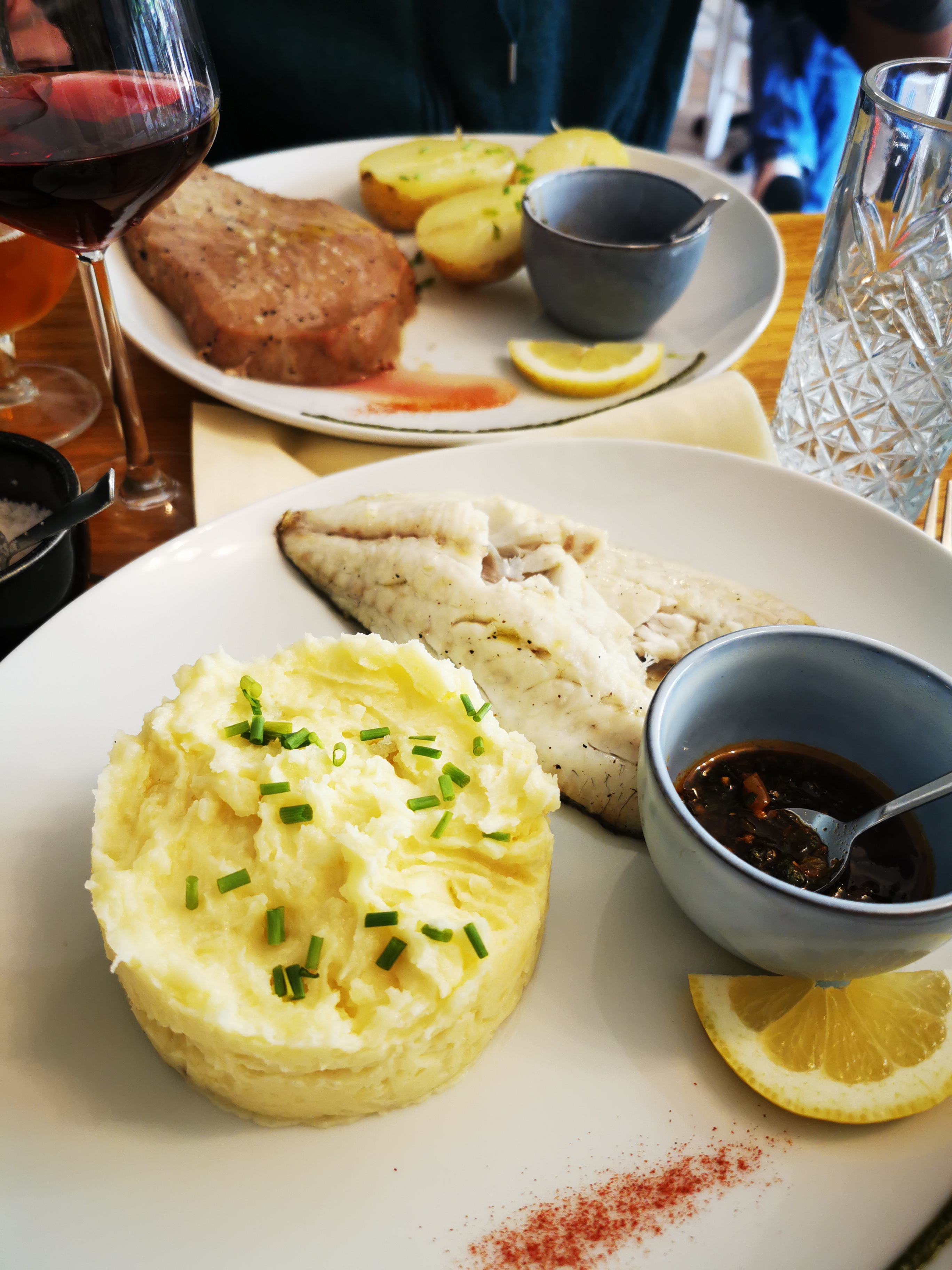 Accueil, décoration du restaurant, explications sur la technique de conservation du poisson que l'on peut choisir avant cuisson, petit vin blanc délicieux, service aux petits soins, jusqu'à la playlist sans aucune fausse note ! Une très chouette découverte ! On reviendra aux beaux jours profiter du petit jardin... Et des produits de la mer !