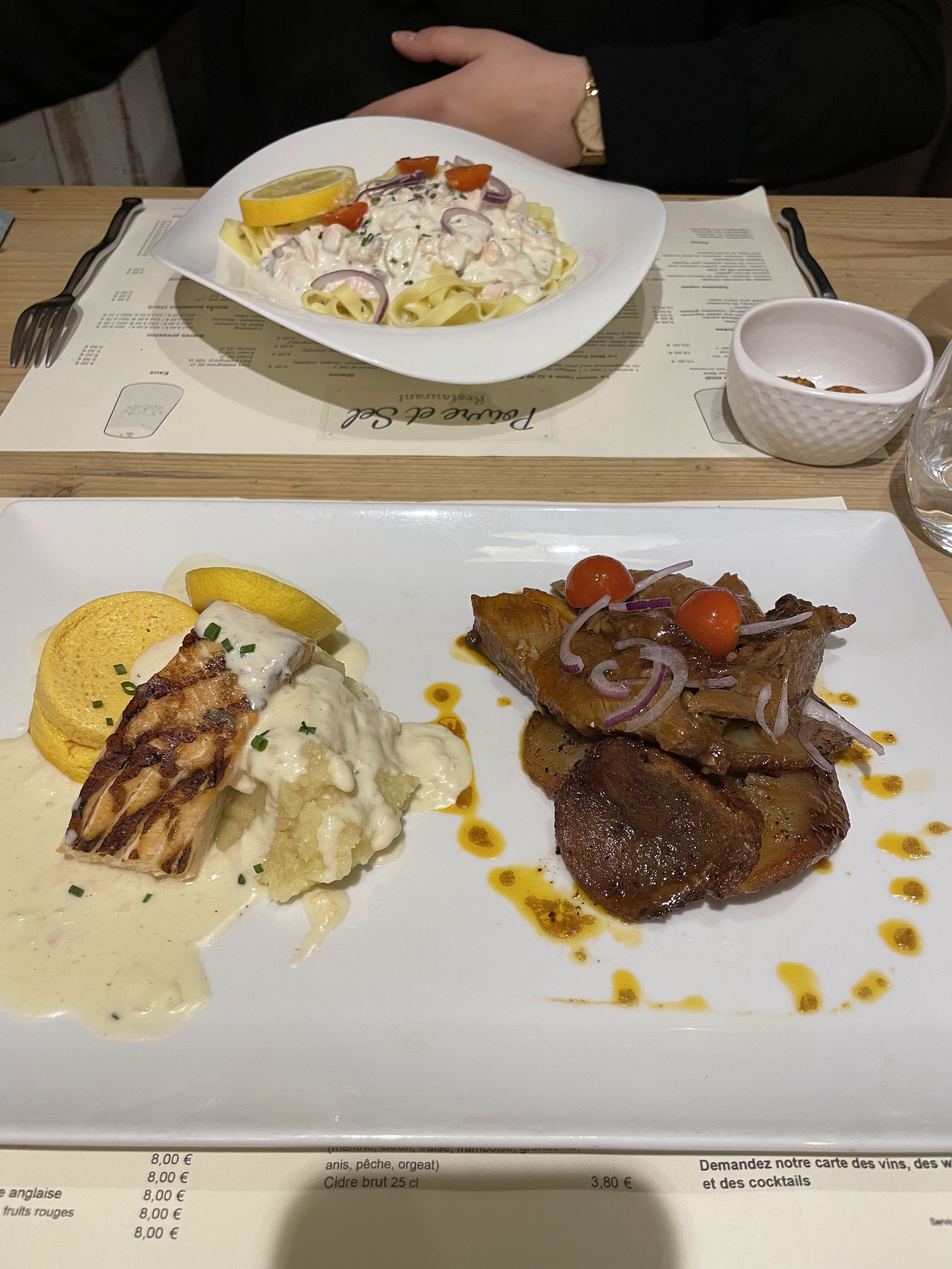 Poivre et sel... que pour le nom ! Les plats ne sont pas salés... les pâtes aux gambas sont servies sans sauce... rien pour relever le goût ! Dommage... les plats sont bien présentés et chauds.