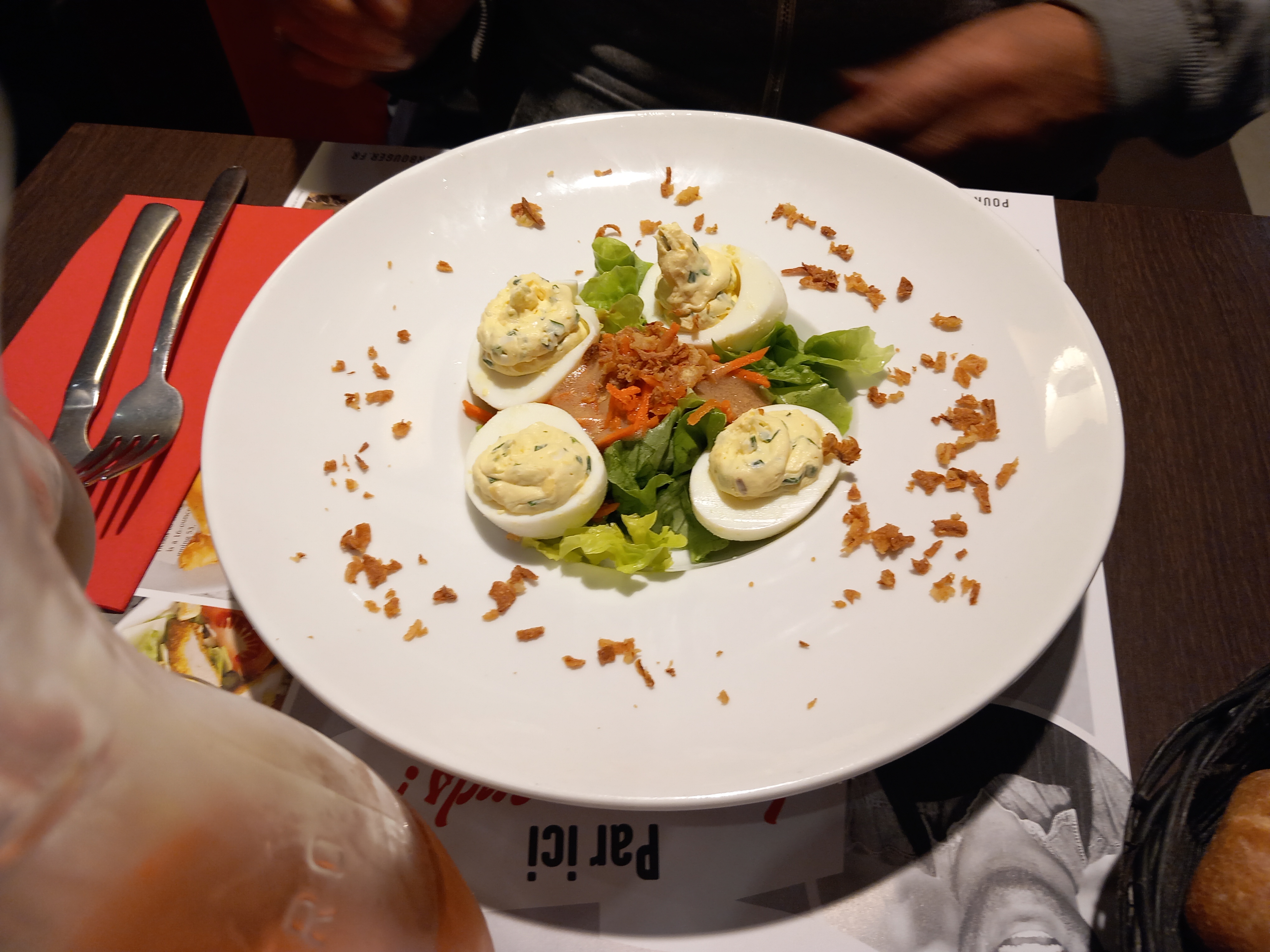 Nous avons été très dessus aussi bien par le service que part la cuisson (plat demandé à être servis en même temps et servis en décalé surtout que le plat chaud a été servi avant le plat froid donc mon plat chaud a refroidi car j'ai attendu pour manger en même temps que m'a compagne et quant à la cuisson de l'œuf mollet,il n'était pas coulant met dur,je l'ai fait constater au serveur qui m'a proposé de refaire l'oeuf mais marre d'attendre car nous avions faim!!! Ceci n'était que pour l'entrée) pour mon plat de résistance,j'ai pris une côte de bœuf avec un supplément a 3 euro pour un camenbert rôti (qui ne l'était pas) et qui m'a été servi 4 minutes plus tard et encore après l'avoir réclamé donc de là,ma viande cuisson bleu était froide et mes frites tiède,de plus nous avons eu un serveur attitré qui a été très bien et nous nous sommes fait servir par 3 serveur différents (où est donc passé la communication ???) notre serveur attitré (Guillaume)nous as donc gentillement offert les cafés,ce que nous avons apprécié par contre,le responsable qui nous a encaissé nous as bien parlé de la cuisson de l'œuf mollet qui était dur mais n'a pas pris le temps d'écouter le reste de notre mécontentement sur le reste du repas, seule comptait m'a carte bleue à ses yeux !!!! Et d'ailleurs quant au payement,il apparaît encaissé en ESPÈCES !?!?!? Donc nous vous faisons bien part de notre mécontentement sur le service désordonné et sur la qualité des plats ( viande de bonne qualité même froide) mais pour 65.90€, c'est dur à digérer.
