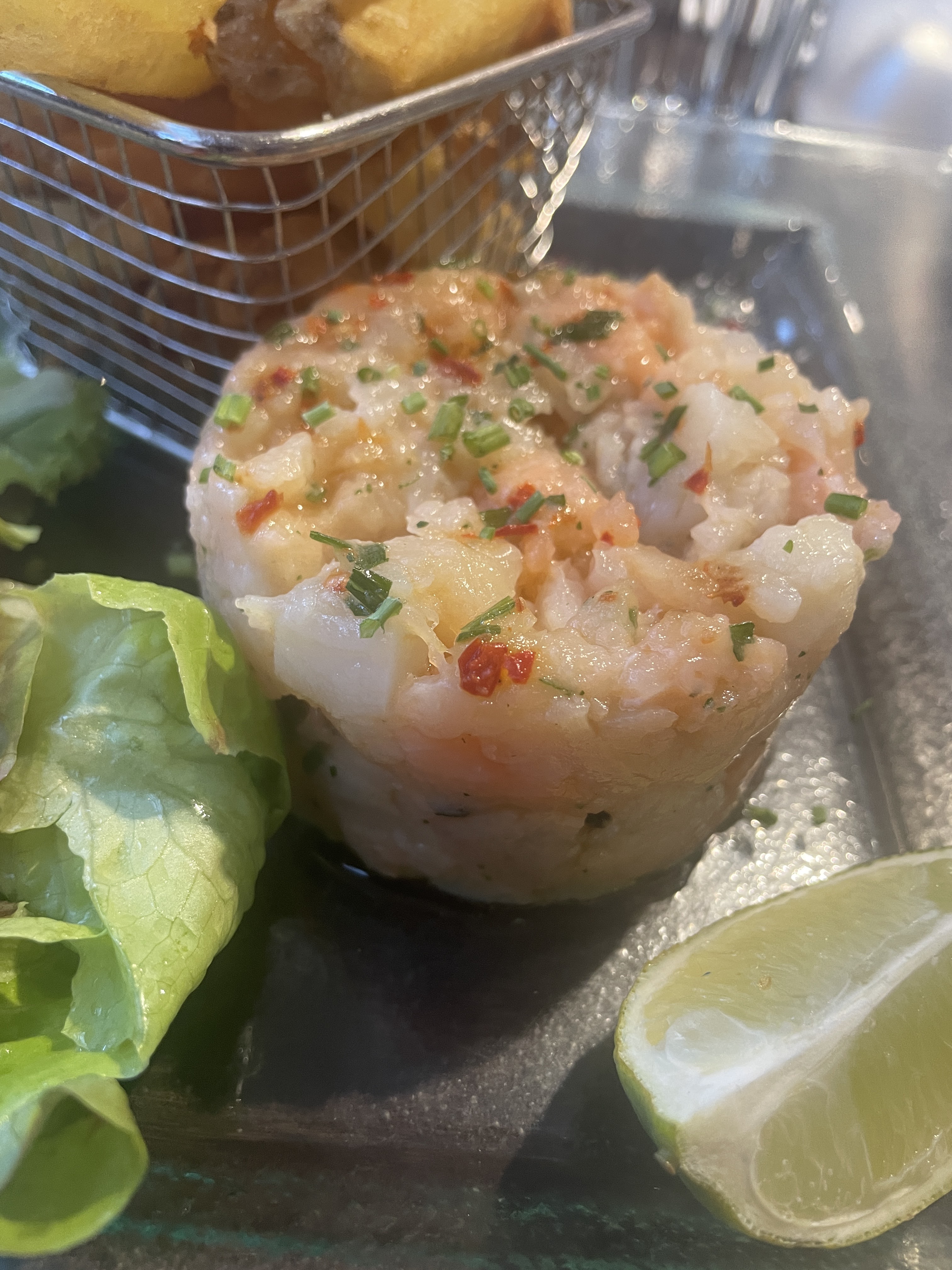 Ma femme est moi arrivions de région parisienne Nous voulions trouver un bon restaurant Une carte qui donne envie de se faire plaisir de l’entrée au dessert Ce qui a été le cas J’ai pris un tartare de poissons qui était bien frais recette bien équilibré excellent Je me suis régaler Ma femme a pris un plat à base de saucisses au couteau sauce tomates et riz elle a adorée L’équipe nous très bien accueilli malgré l’heure tardive très serviable et efficace on voit qu’ils sont là pour faire plaisir et à l’écoute On reviendras car sur la carte nous avons repérer quelques gourmandises que nous voudrions goûter à ce lécher les babines A bientôt Adresse à ne pas manquer