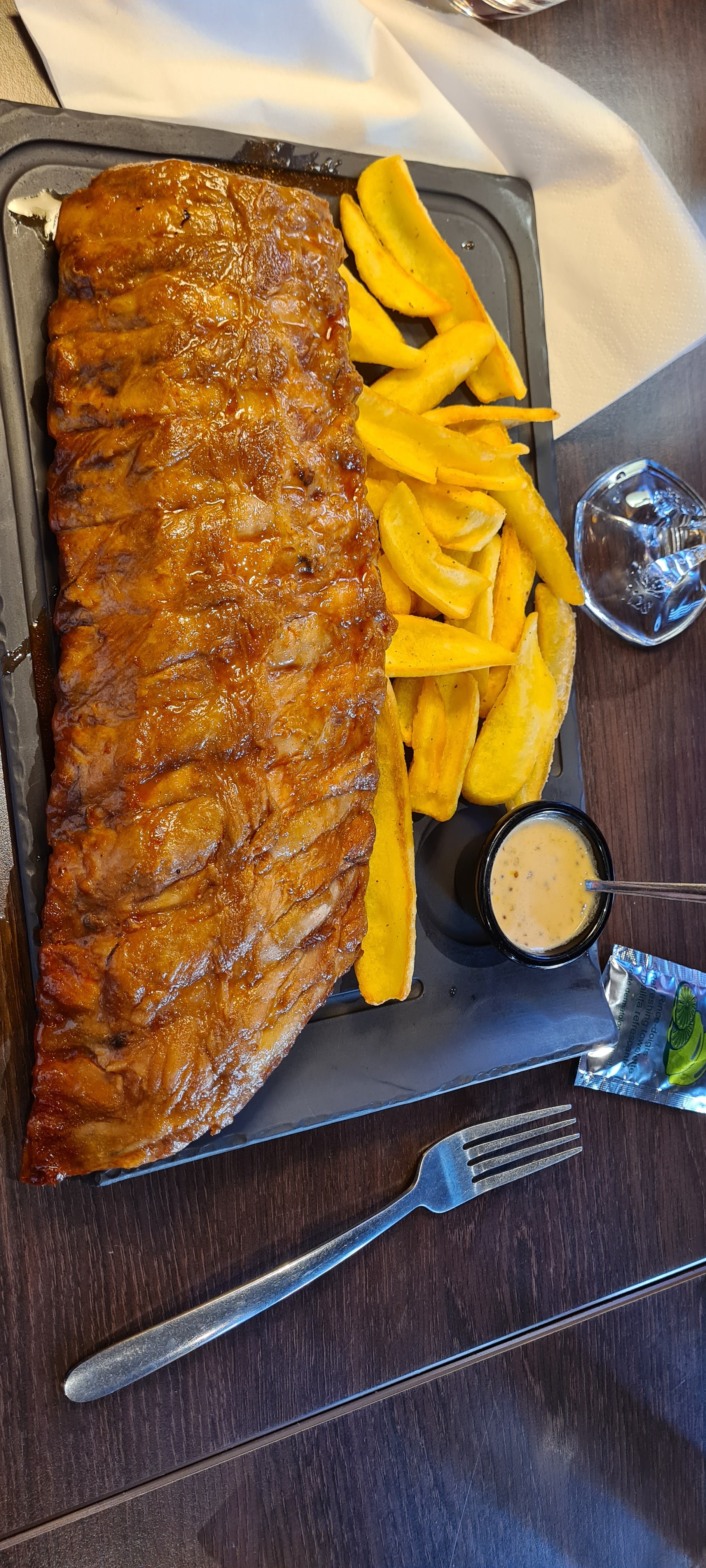Ribs de porc mariné très bon manque par contre quelques frites en plus pour que ce sois parfait les quantités sont à revoir à la hausse et sa sera un très restaurant 😉 une équipe fort sympathique et agréable 😀