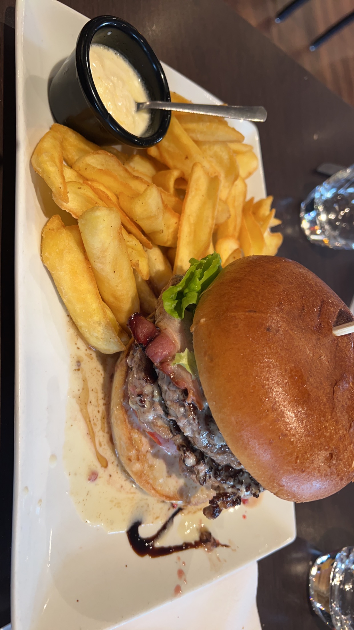 Très bon accueil , et personnel attentif .. Je n'aurais pas du opté pour le burger ,plutôt dessus,léger en frites ..et je ne reconnais pas la sauce au roquefort ,pas terrible .. Pour les desserts, liégeois ,très bon et copieux.