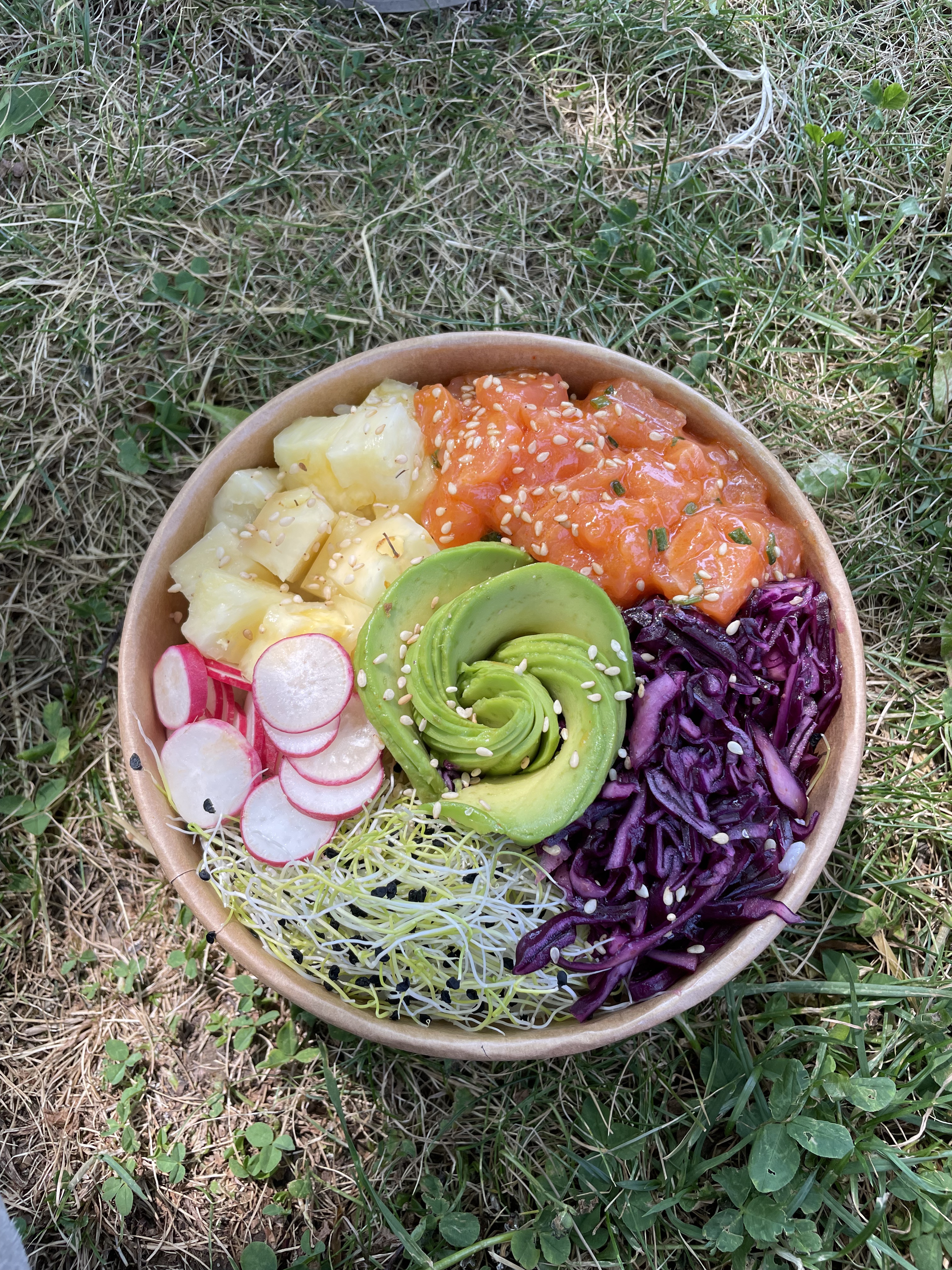 J'ai eu l'occasion de goûter la poke de mon copain. Il avait pris riz, saumon, concombre etc... C'était vraiment super bon, pas du tout lourd. J'ai également eu l'occasion de goûter la boisson à la grenade, elle était incroyable.