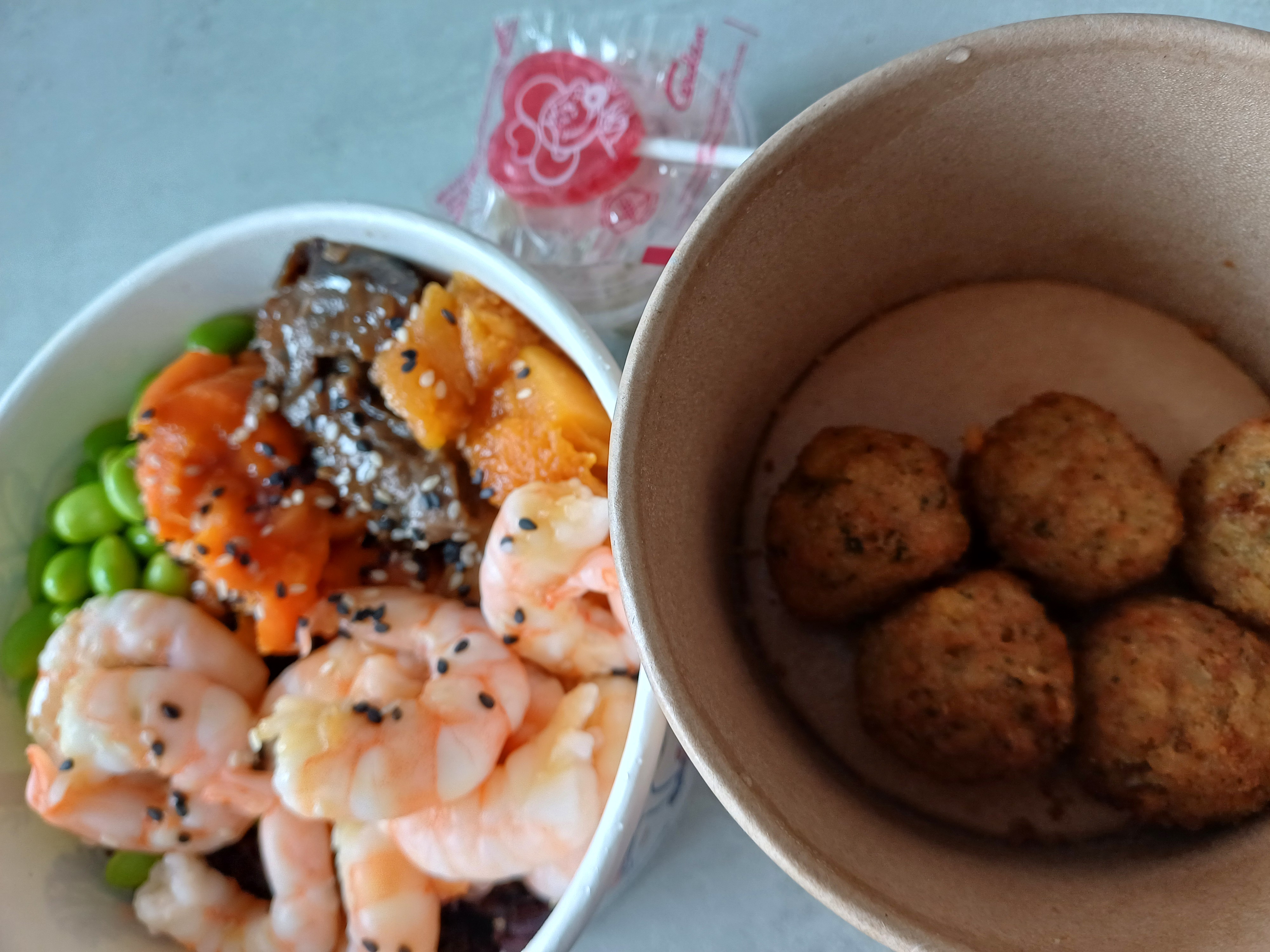 Nous avons commandé deux poké, en passant par Deliveroo, le mien était avec des falafels, et je n’ai pas eu les falafels, rien du tout. Quel dommage car le reste était bon. Heureusement que j’avais pris en extra des crevettes, sinon je n’avais rien. Je les appelé et ils se sont excusés bien-sûr, je me faisais une joie de manger ces falafels pourtant. 🤷🏼♀️
