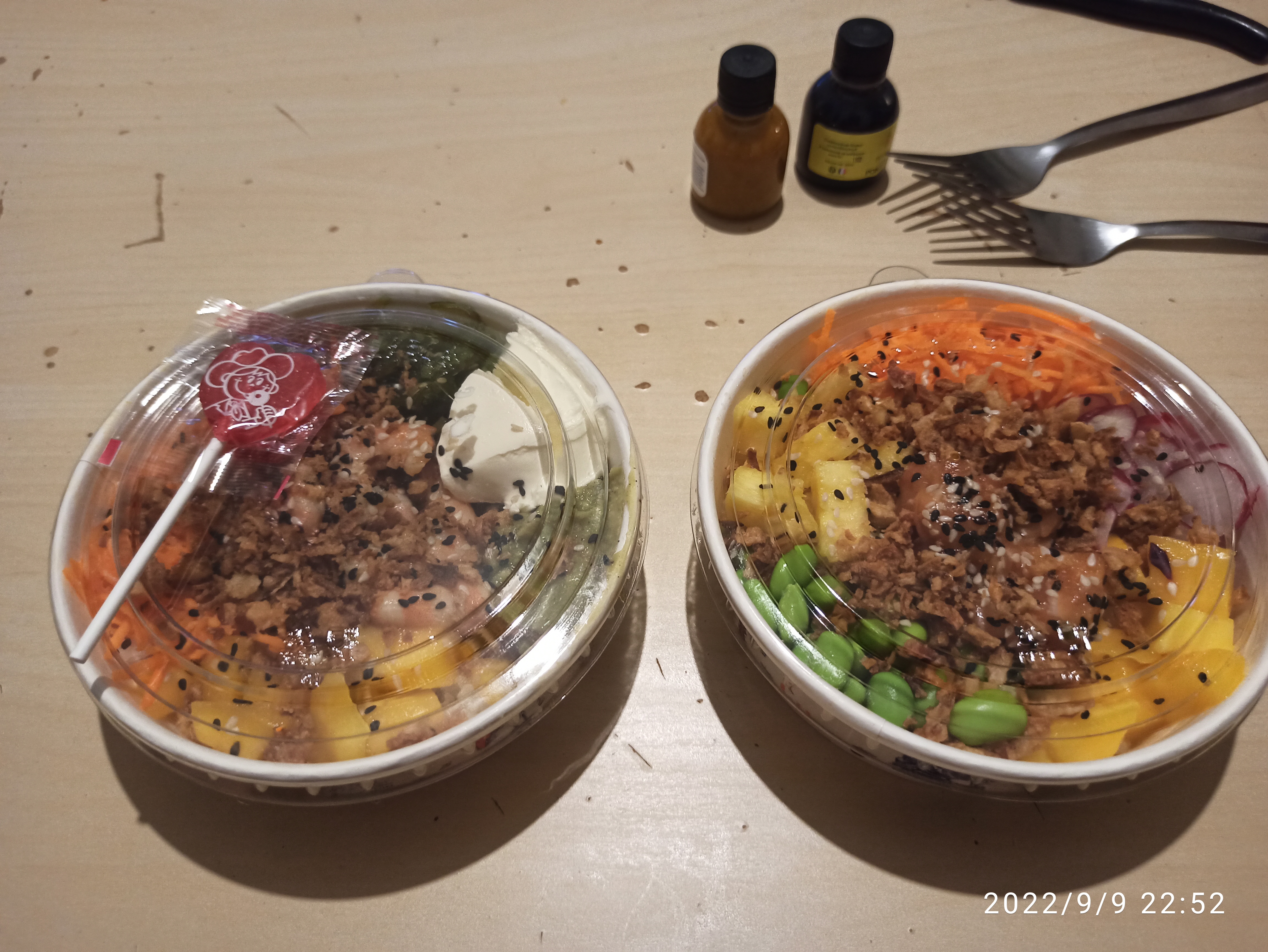 La nourriture est toujours aussi bonne en revanche niveau prix et organisation c’est bof bof.. 40€ pour deux moyen poké sauf que arrivé à la maison il y en a un des deux qui est fait en petit malgré la commande.. Comment faire dans ces cas là… Sachant que nous ne pouvions pas revenir sur place..