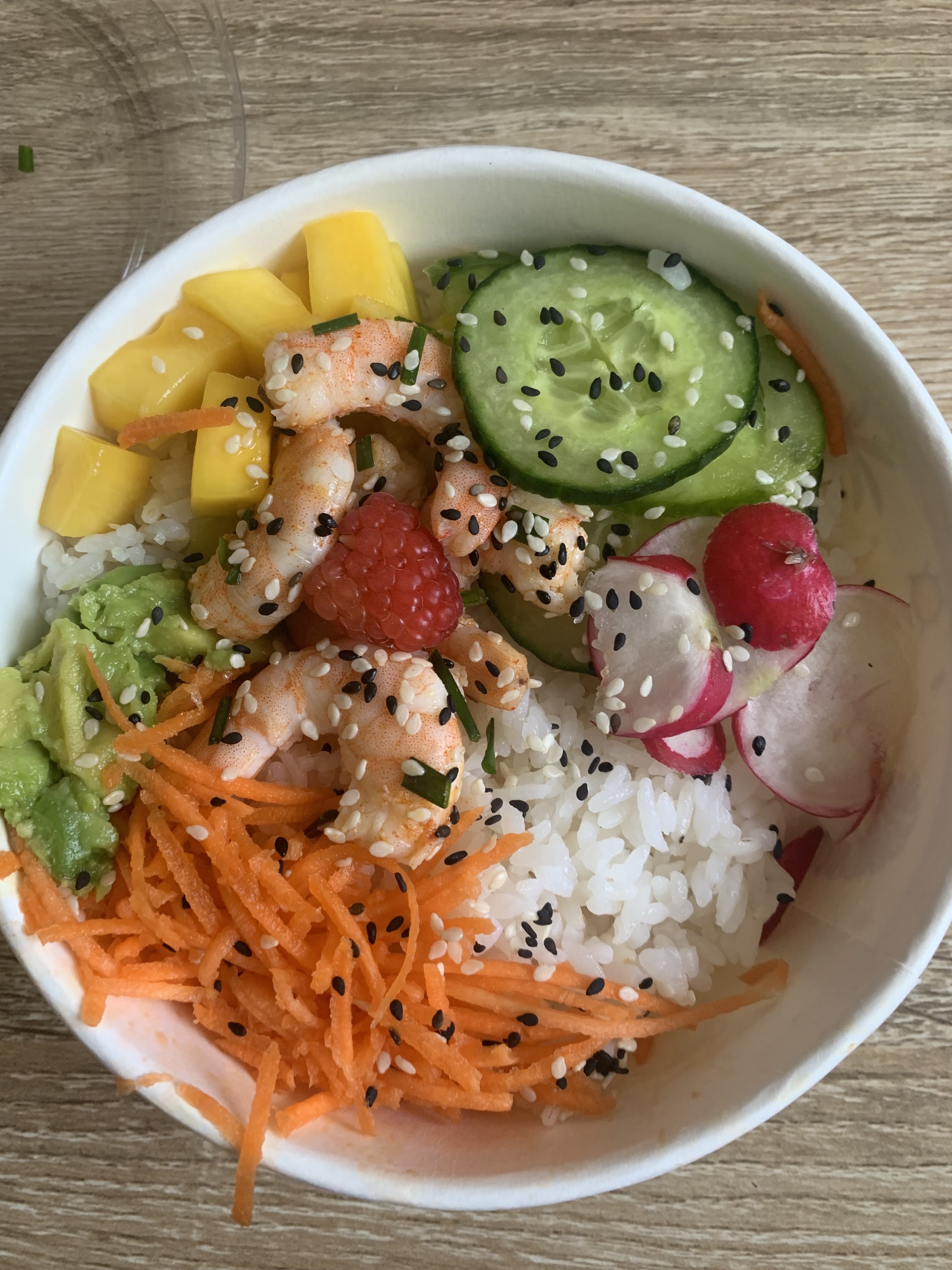 Commandé sur Deliveroo, nos 2 poke bowl nous ont déçu sur le riz qui semblait un peu sec et fade comme si réchauffé de la veille. L’ensemble est arrivé très tiède chez nous donc pas forcément rafraîchissant. La mangue, l’avocat et le saumon était bon. A re tester plus tard car nous restons sur notre faim.