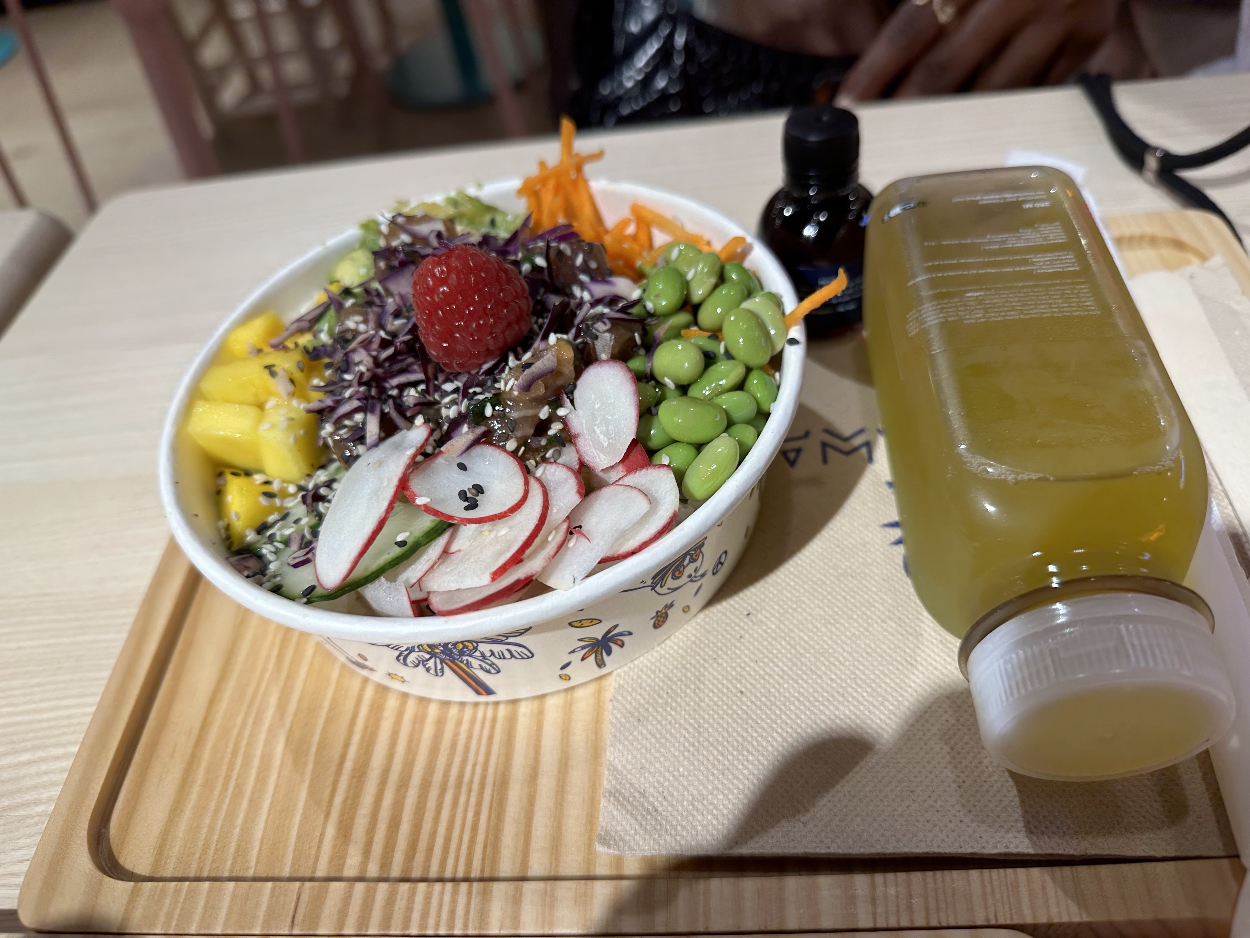 Excellent ! Des produits frais, poke raffinés et sains. Le cadre est parfait, j’aime beaucoup le concept vous avez un endroit pour faire de belle photo. Un espace un peu plus détendu pour discuter. Vous trouverez sur votre plateau une petite sucette avec un petit mot. Le service est impeccable, c’est la 4eme fois que j’y retourne et je peux vous dire que l’accueil est toujours à la hauteur de mes espérances. Petit clin d’œil à Nada qui est au top et un grand merci à toute l’équipe.