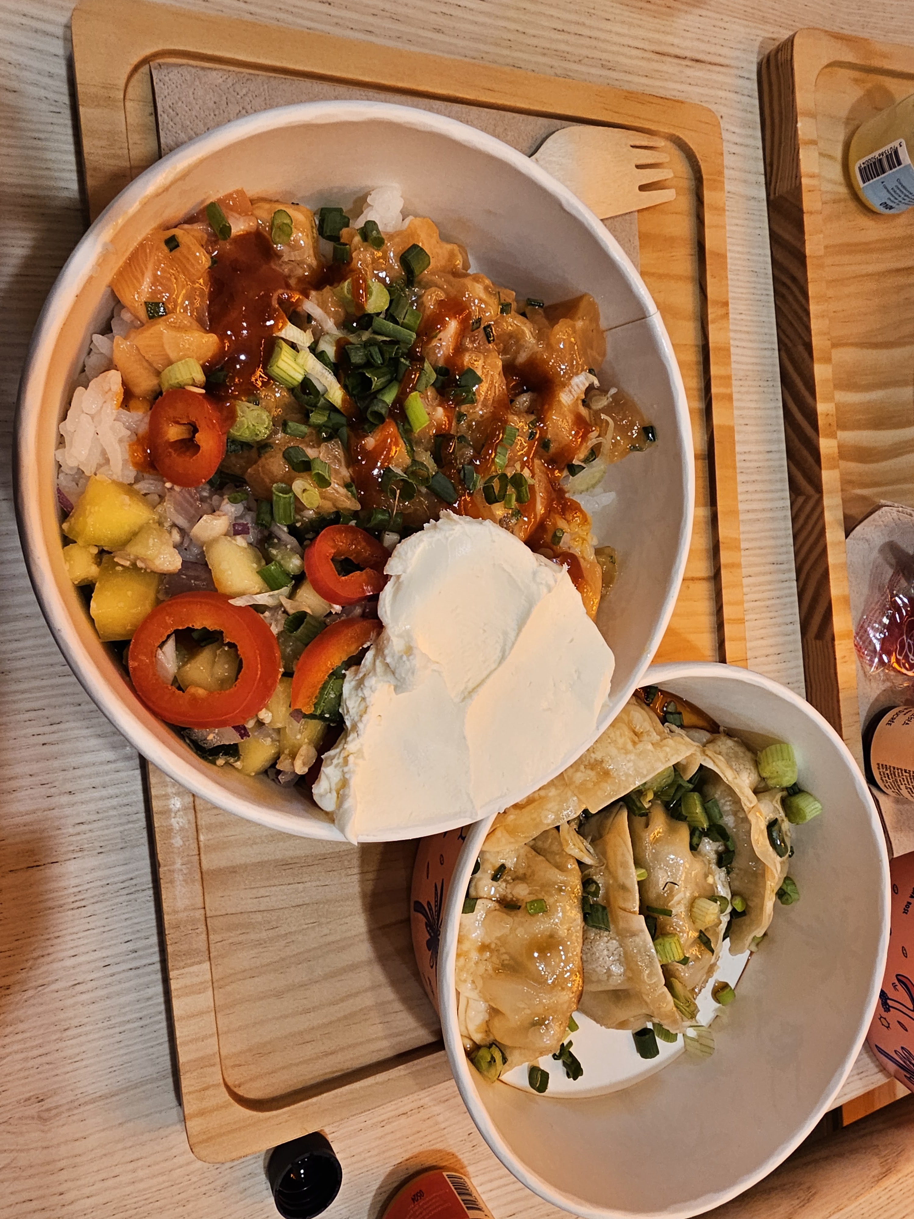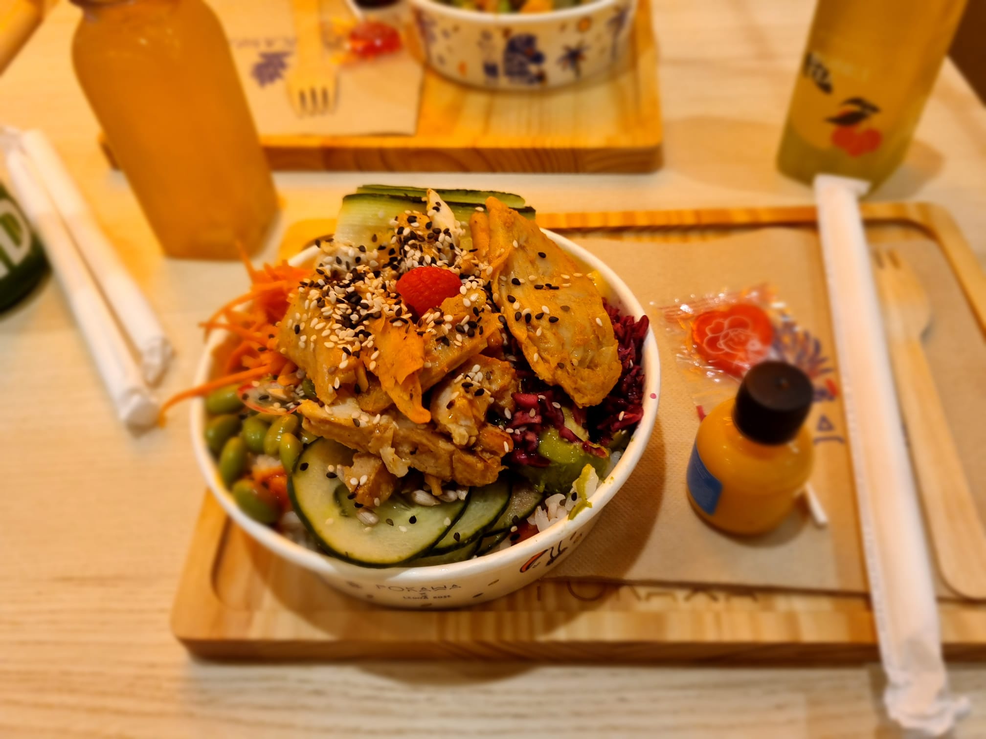 Très belle décoration, plat copieux contrairement au Pokawa de val d’Europe très radin sur les quantités. J’avais peur d’être déçue mais je suis ressortie satisfaite😻