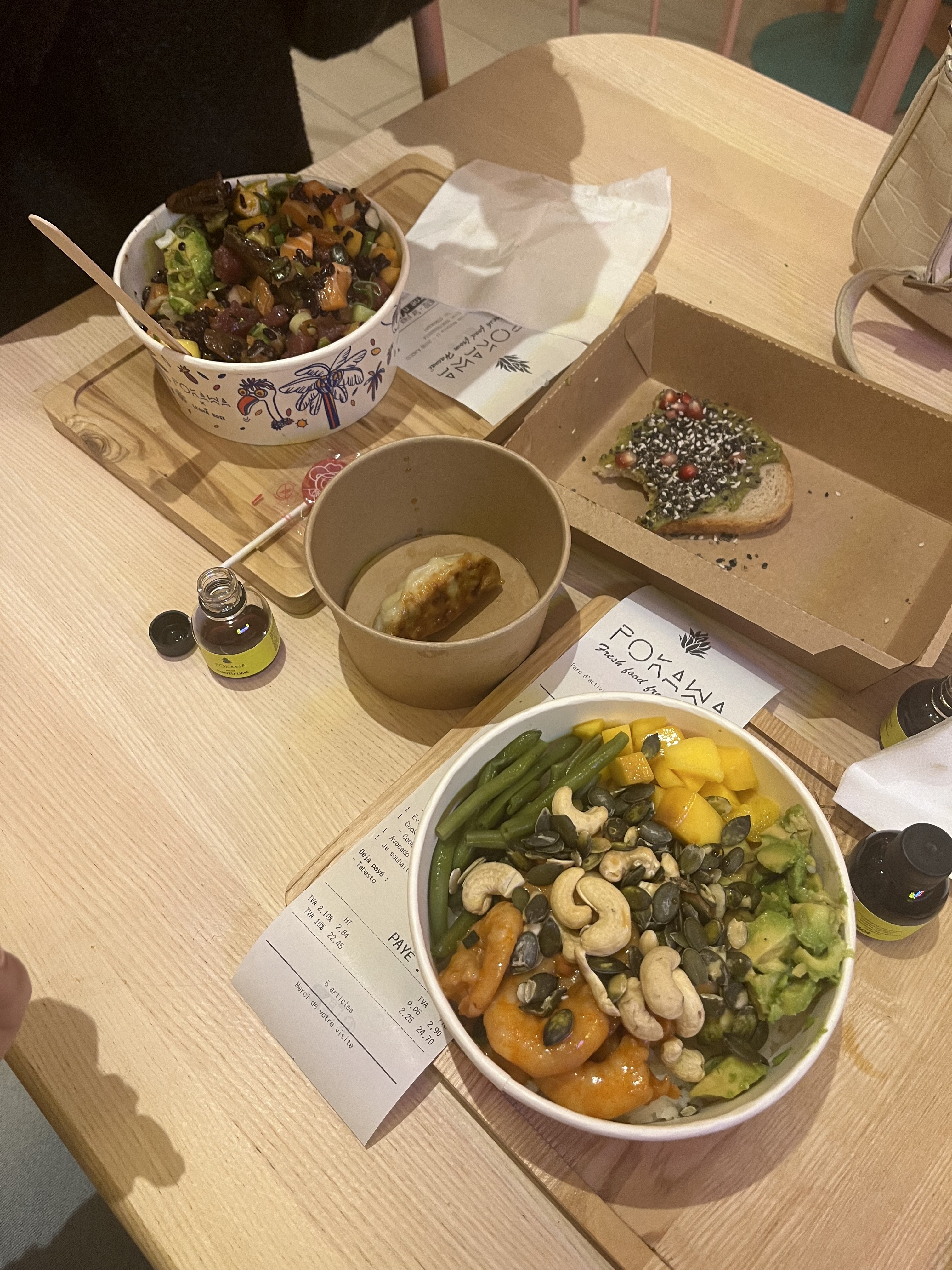 Ma première c'était une très belle découverte du coup je suis revenu le lendemain. J'ai adoré le cadre reposant et chaleureux ainsi que la variété des recettes, la quantité des plats et la qualité des ingrédients. C'est toujours un plaisir de découvrir les différents poké préparer avec soin. Je recommande les yeux fermés à chaque fois je reste 3 h devant la carte tellement que j'ai envie de tout goûter. L'équipe est toujours sympa, souriante et professionnel. Personnellement j'ai trouvé mon endroit favoris.